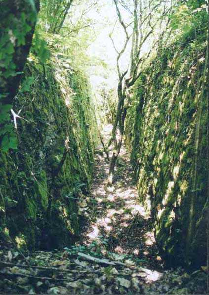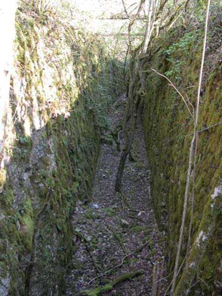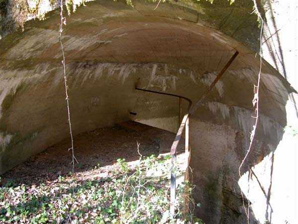 Fortress of Langres, west of the town, 1888. 450 m/alt. Small infantry fortification built on the heights at 1800 m east of the village of Vieux-Moulins, intermediate between those of Perrancey to the north and Noidant-le-Rocheux to the southwest. Kidney-shaped, like the typical infantry fortifications of the Place de Langres, it still includes two entrances under a concrete dome with stairs leading to a transverse gallery serving six barracks. The two entrances have retained their metal railings and their descents have been left in rough rock. At the foot of the stairs, the frames of a door in masonry of terracotta bricks (south gallery) and rubble (north gallery) have been built. The long transverse gallery has not been coated with a cement coating unlike the barracks. The usual cistern here is a little larger than the other structures. Built on an elevation, in bricks coated with a cement coating on its internal faces, it measures approximately 150 cm in height and must be able to contain 2.5 to 3 m³. It is located in a barracks and not as usual in the circulation corridor. On September 4, 1906, during the major national maneuvers, the structure was bombarded with shells having only a half war charge. The reports speak of a chopped structure, a largely ripped ground, overturned rocks, but the fictitious cannons were not dismantled! Look for the hiatus! In any case, today (01/2008), no scars from this bombardment are visible and the structure has clearly resisted well. Property of the National Forestry Office, abandoned but clean and not tagged.