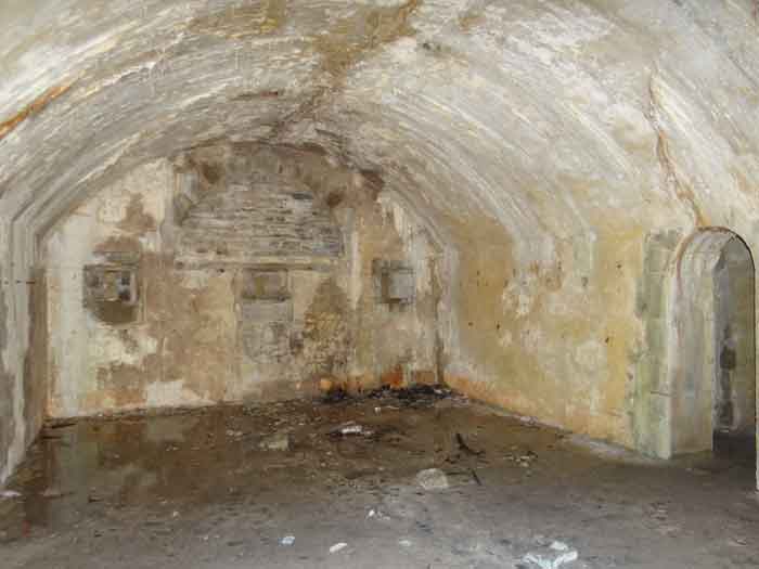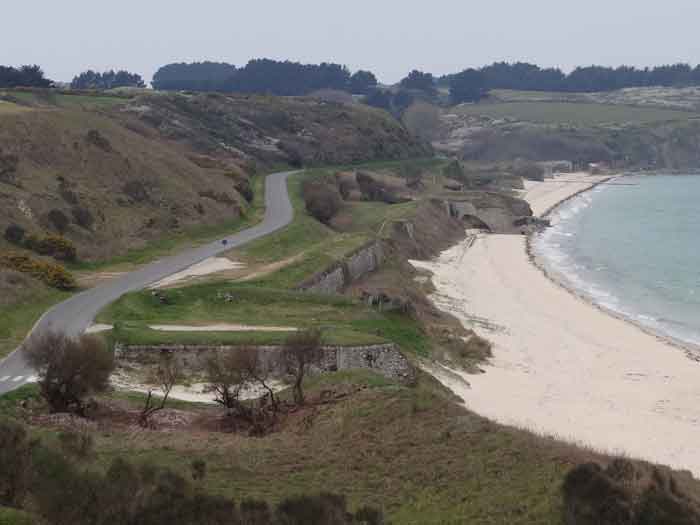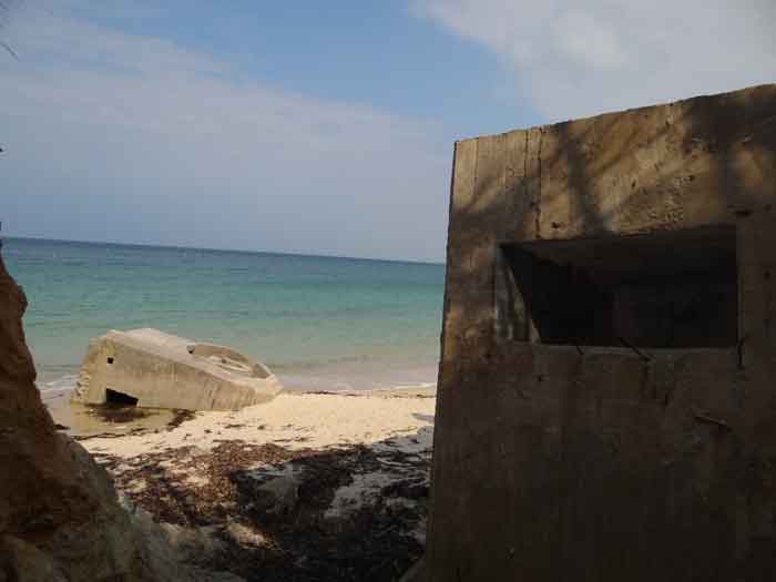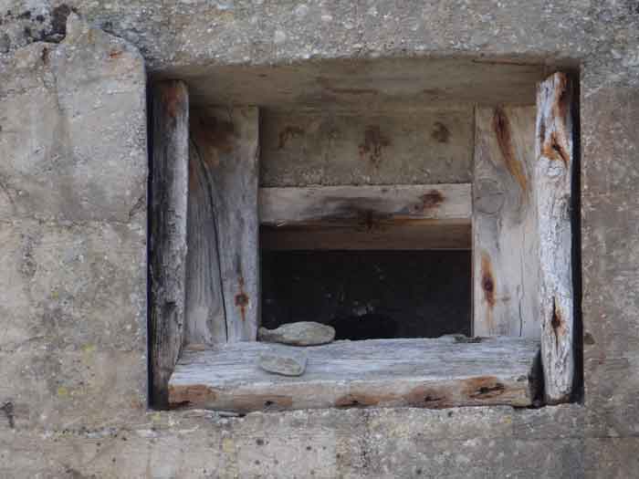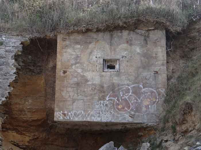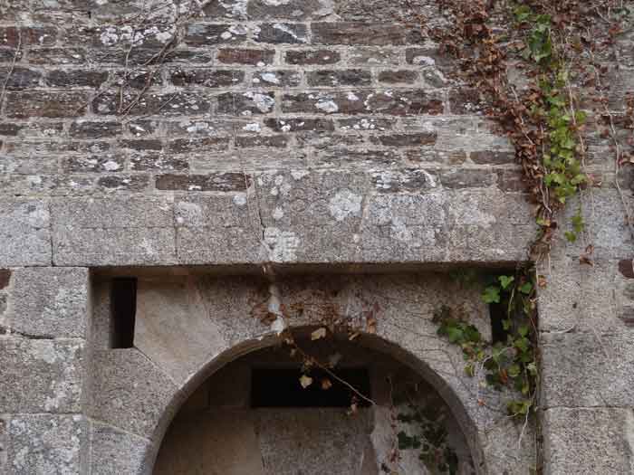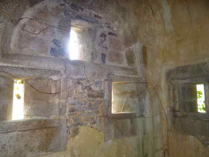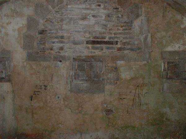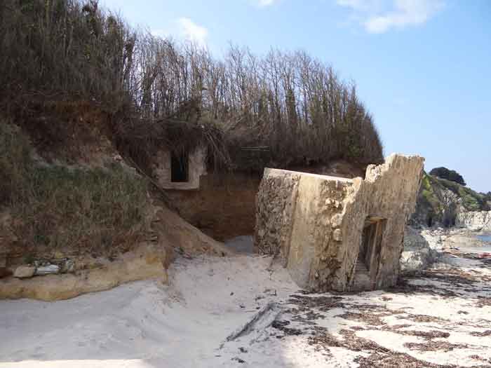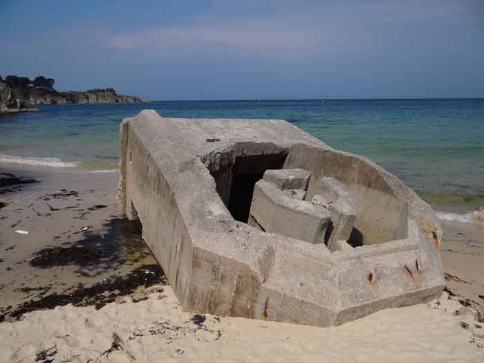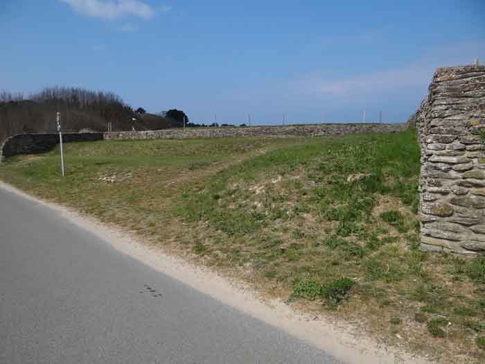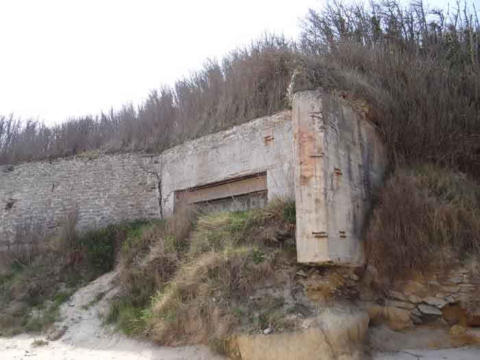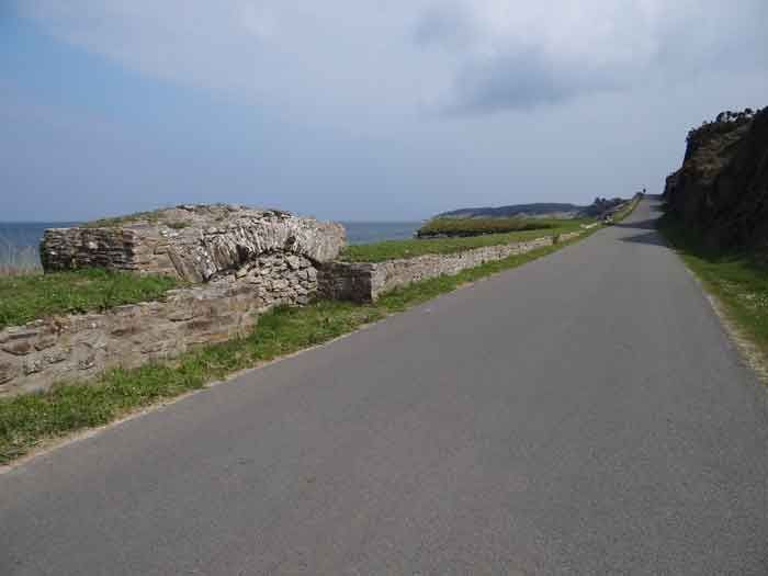 Fortress of Lorient, Belle-Île, southeast of the Palais. The Grands Sables beach, between the points of Gros Rocher and La Biche, approximately 1,500 m long, is undoubtedly the most suitable area on Belle-Île for a major landing. This had of course not escaped Vauban, who had advocated its defense. Note that he designated the area "Sables de Samzun," after the hamlet near the eastern end of the beach. Thus, to the two pre-existing redoubts, he had planned to add two batteries and to palisade the entire beach at the height of the tide line. It was estimated that the beach could accommodate 5,000 men abreast and the largest ships of the time could anchor 1,000 m from the shore. There is evidence of major works undertaken by a certain de La Sauvagère, engineer, in 1746. Are these the bastioned escarpments that have come down to us? It is likely. These works include a battery of La Ferrière, named after the commander of the island at that time. These works will be followed by others in 1755. In the notes of the DRAC (Regional Directorate of Cultural Affairs) we can read: 1780; battery of La Ferrière whose front has a battery to oppose the ships… and two flanks to flank the entire cove. This redoubt is not closed at the gorge; housing for the troops was built there. It forms a kind of horseshoe with a circular face 30 fathoms long, pierced by 6 embrasures for 12-pounder cannon. It is built in very good masonry with a turfed earth parapet 3 fathoms thick, raised 15 feet above the sand. The large guardhouse can hold 100 men; opposite is that of the officers, the gunners and the powder magazines, the attics of these buildings serving as stores for rammers, spoons, levers… In peacetime, all the gun carriages of this battery and the neighboring batteries can be placed there. It is linked by a curtain wall to the Kerdavid redoubt 12 feet high, faced with good masonry, crowned with a parapet 15 feet thick with a small step in the center. (…) During the war of 1778 to 1783, two batteries were built on the summit of the mountain which runs from the valley of Saint-Laurent to that of Kerdavid, the high battery of La Ferrière and the high battery of Kerdavid, on each of which two 24-pounder cannons were placed. They are very high and can only fire offshore. La Ferrière, located practically in the center of the length of the beach, was therefore responsible for flanking the bastioned escarpment. All these developments will make the Grands Sables a piece which the English will avoid rubbing shoulders with in 1791. Then comes the Commission of 1841 which classifies La Ferrière as of 1st importance. Initially, a model 1846 tower No. 2 is planned, but its excessive height makes it vulnerable, a guardhouse No. 2 will be preferred. Its operational existence was brief, as it was proposed for decommissioning between June 13 and July 11, 1874. The Germans used it as barracks during the Second World War. Today (04/2012), the guardhouse is open to all winds and topped. The inscription and date on the pediment of the entrance remain visible. The arrangement of the firing loopholes, on either side of its entrance, is unusual, with the upper bay, vaulted in a semicircular arch, blocked with a loophole in its center. This loophole, almost impossible to fire, already appears on a CPA from the beginning of the century. Several incongruities of this type can be seen in other bays of the building, such as these two superimposed loopholes in the central room at the back of the guardhouse, between the projectile magazine and the powder magazine. There is no trace of the drawbridge. Apart from these details, the building is fairly well preserved, unlike the majority of the beach escarpments, which, built of poor schist, are collapsing a little more each year. Nothing remains of the initial battery on the circular face, and having only learned of the upper batteries after leaving the island, we were unable to verify what remained of them. The Germans fortified both ends of the beach, without much originality. At most, we can mention two Tobruk mortar bunkers and a 50 mm Pak casemate which have retained beautiful inscriptions. The guardhouse, for its part, was included in the Supplementary Inventory of Historic Monuments on March 2, 2001.