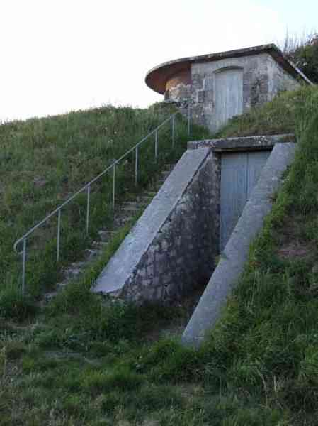 Fortress of Rochefort, Île d'Aix. We could only estimate the construction period of this battery arranged in the demi-bastion located between the ditches of the fort of the Rade and the eponymous village. The demi-bastion itself dates from 1850, and we would place the battery around 1878-1880. It was armed with four M cannons of 27 cm Model 1870 (on G mountings with circular chassis, just like in the battery of Sainte-Catherine ?). The battery was located in an already militarily protected perimeter, understand. Today (03/2008), only three of the traverse-shelters of the battery are still there, well cleared and freely accessible. The fourth, the leftmost one, seems to have suffered some damage.