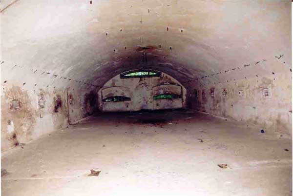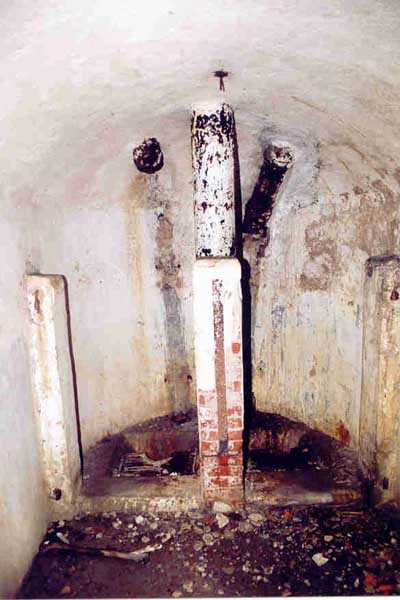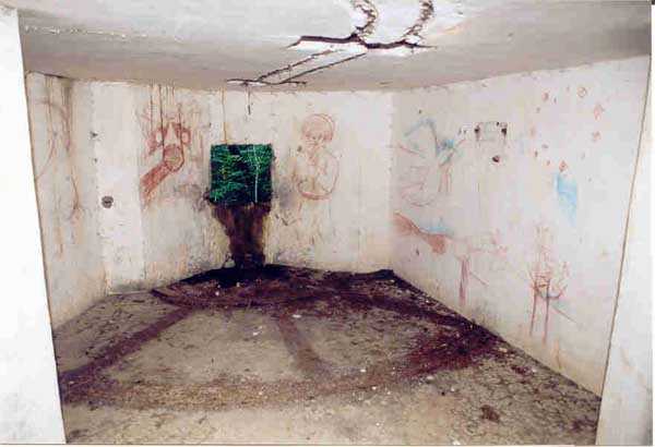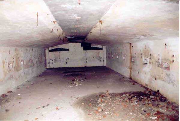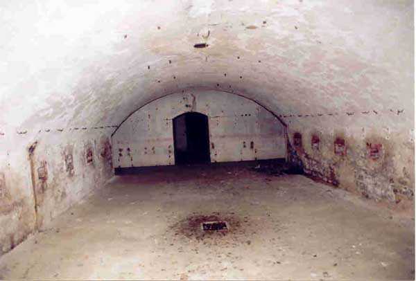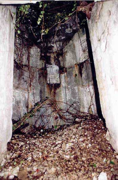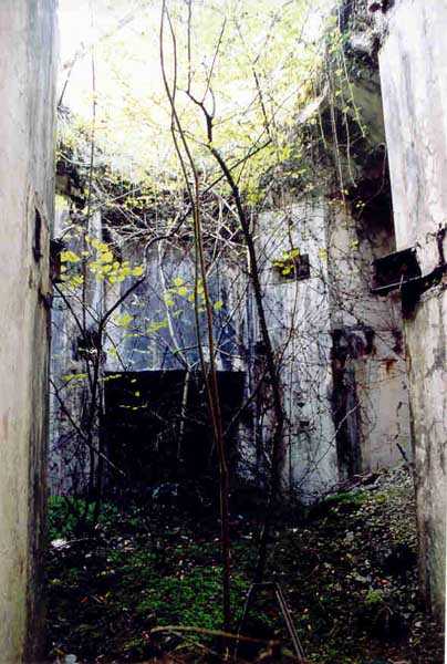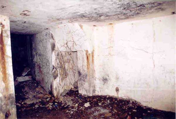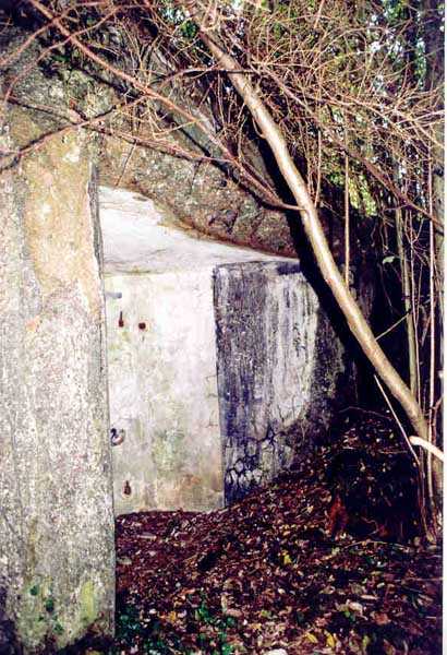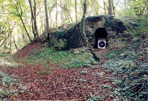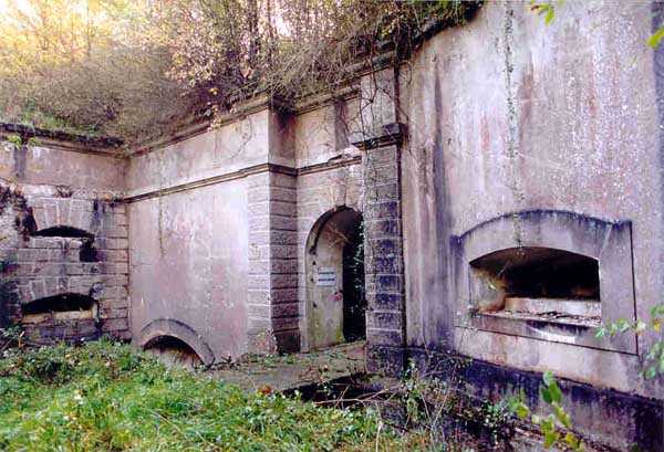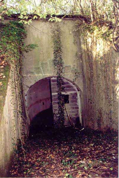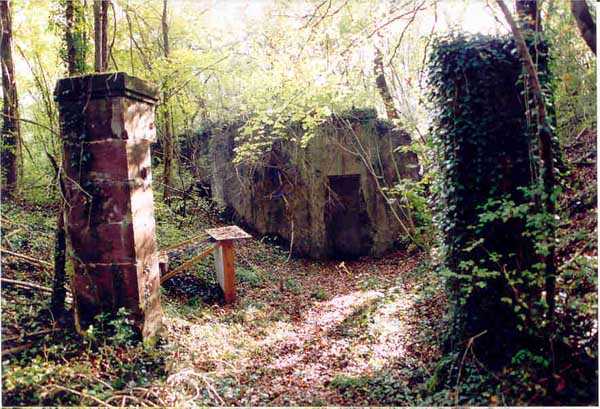 Belfort fortified camp, SSE of the city, 1889-1890. 409 m/alt. Intermediate structure, concreted. Modernized after 1906. 1 T 75, 2 T mi and 4 OC. Beautiful structure whose concretework resembles that of the structure of the Monceau. The defensive barracks, two large barracks adjoining flanking casemates, protrude into the gorge ditch. The perimeter of the structure has a triangular profile. The 75 Mle 05 turret is located in the capital and, a few dozen meters from it, on either side, are the two small blocks for machine gun turrets. Located in the middle of the 1st Artillery Regiment's (1 R.A.) training ground, even with proper authorization, this structure is difficult to locate amidst very thick vegetation. The interior, although completely ironed out, is still clean and has, so far (10/2005), escaped graffiti artists. 1 artillery battery has been demolished and a combat shelter on either side. About 200 meters northeast of the entrance, hidden behind an intermediate magazine made of rubble masonry housing two small storage rooms, is a Bourges casemate. The latter is atypical because, not only is it detached from the structure, but it also has no basement and is very long; the projectile magazine is located behind the northeast firing chamber and the men's shelter behind the second. While searching for the structure, we also discovered concrete parapets for the infantry to the west-south-west of the latter.