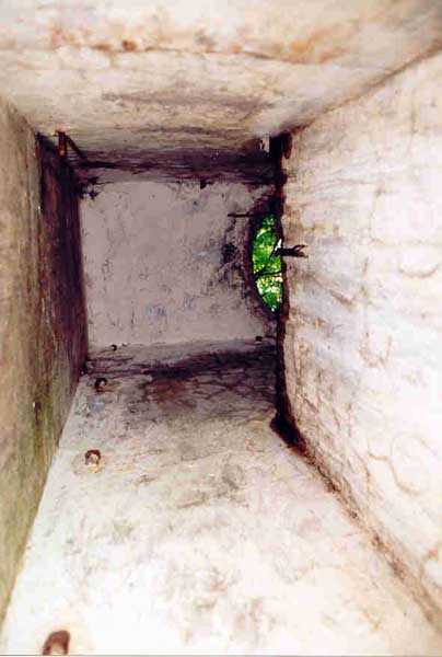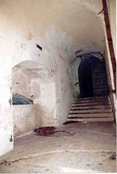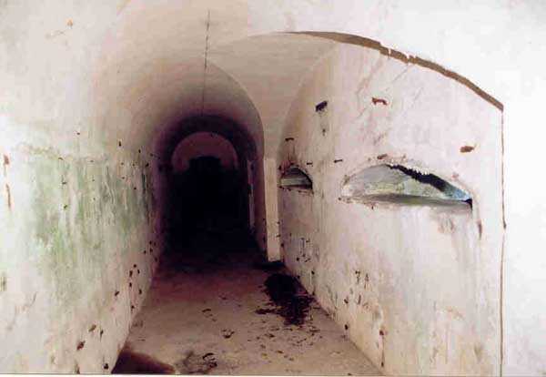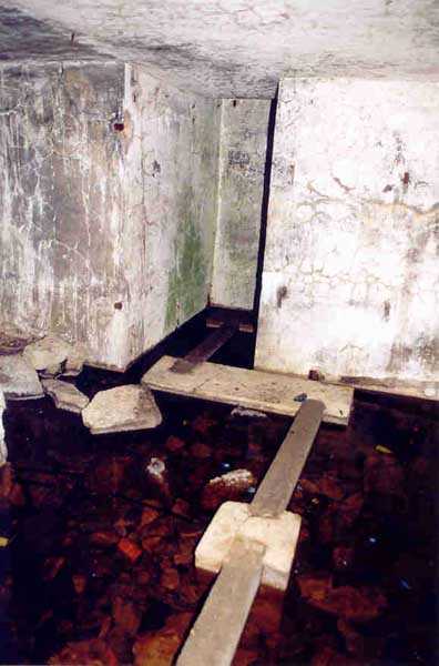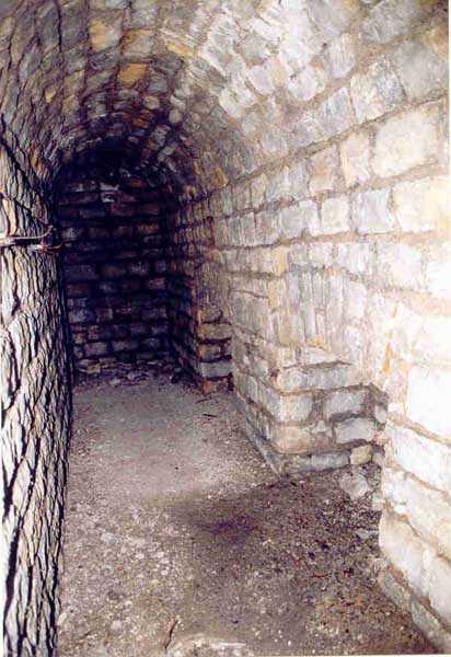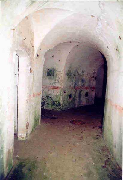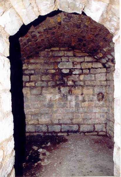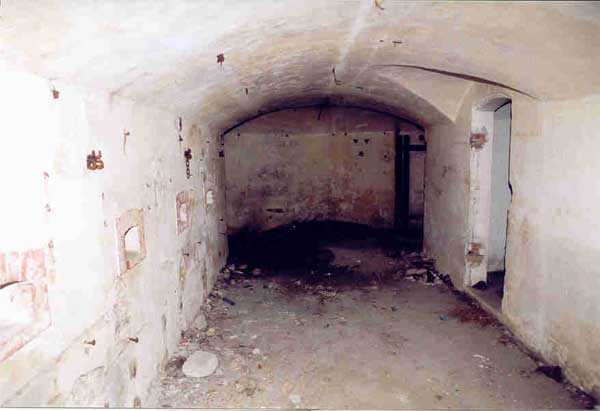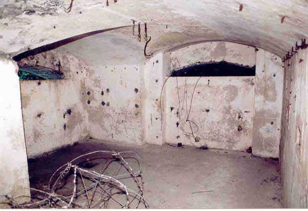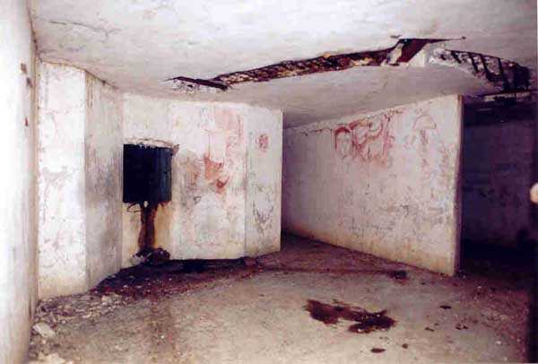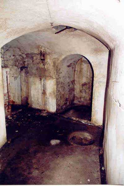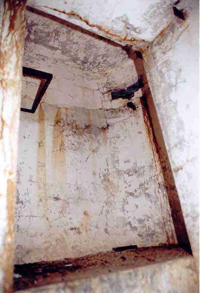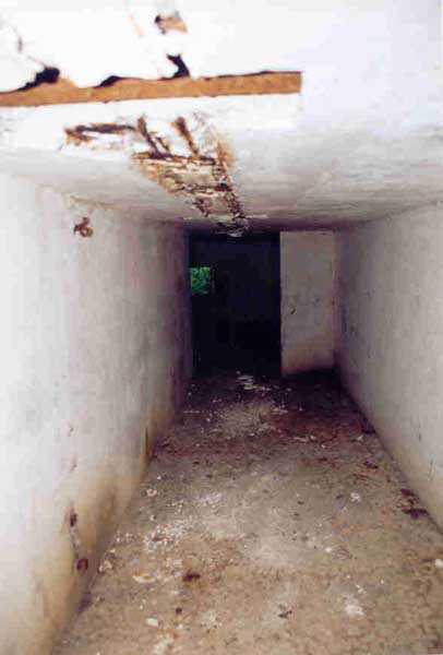 Belfort fortified camp, SSE of the city, 1889-1890. 409 m/alt. Intermediate structure, concreted. Modernized after 1906. 1 T 75, 2 T mi and 4 OC. Beautiful structure whose concretework resembles that of the structure of the Monceau. The defensive barracks, two large barracks adjoining flanking casemates, protrude into the gorge ditch. The perimeter of the structure has a triangular profile. The 75 Mle 05 turret is located in the capital and, a few dozen meters from it, on either side, are the two small blocks for machine gun turrets. Located in the middle of the 1st Artillery Regiment's (1 R.A.) training ground, even with proper authorization, this structure is difficult to locate amidst very thick vegetation. The interior, although completely ironed out, is still clean and has, so far (10/2005), escaped graffiti artists. 1 artillery battery has been demolished and a combat shelter on either side. About 200 meters northeast of the entrance, hidden behind an intermediate magazine made of rubble masonry housing two small storage rooms, is a Bourges casemate. The latter is atypical because, not only is it detached from the structure, but it also has no basement and is very long; the projectile magazine is located behind the northeast firing chamber and the men's shelter behind the second. While searching for the structure, we also discovered concrete parapets for the infantry to the west-south-west of the latter.