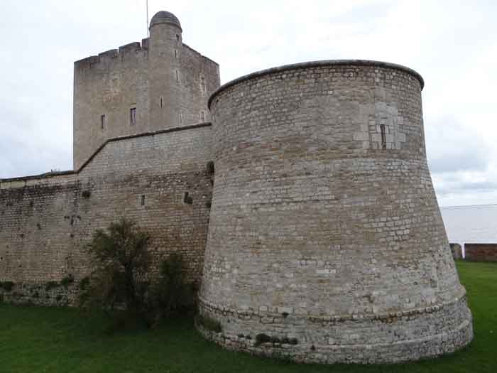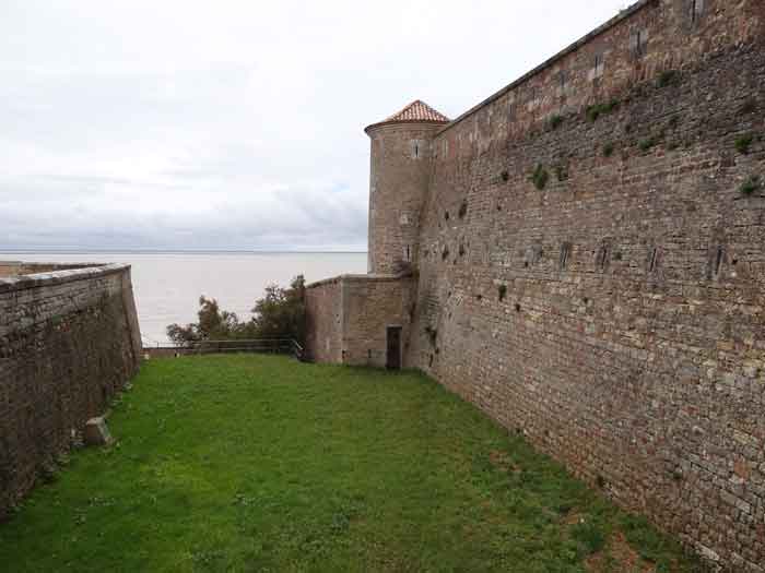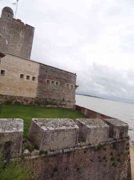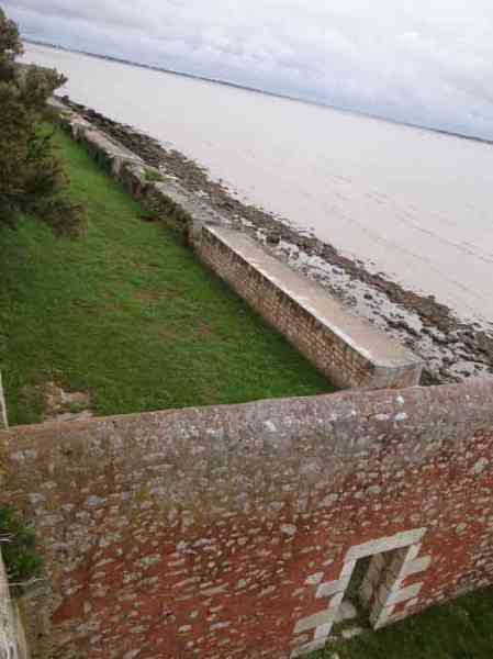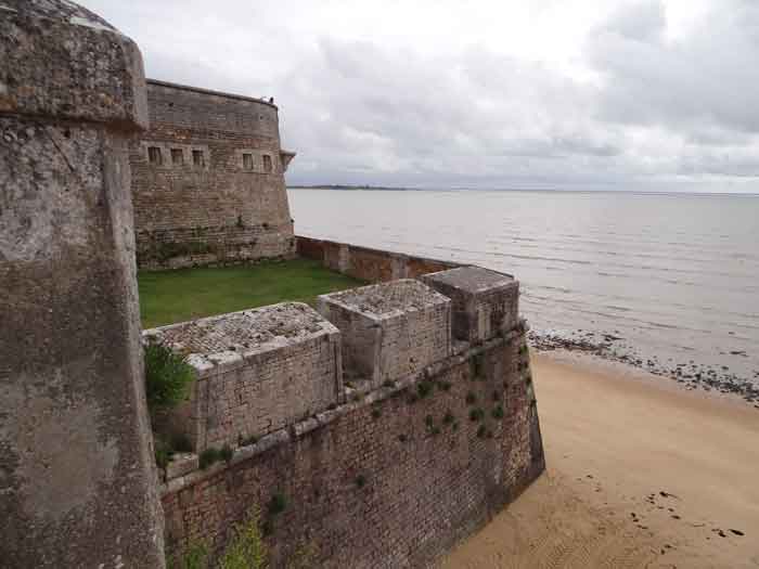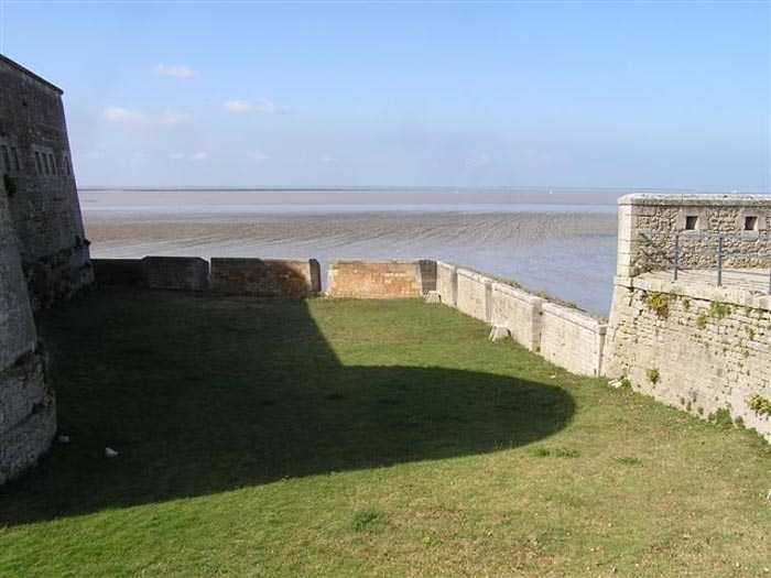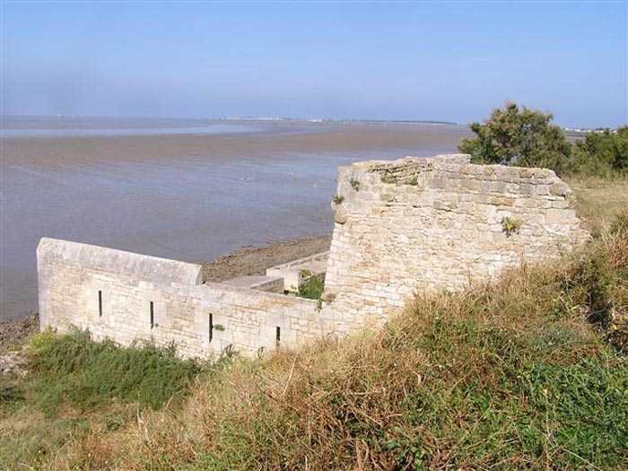 Fortress of Rochefort. The Fouras castle, whose origins date back to the 14th century but which was mainly shaped in the 17th century, is well situated on the right bank of the Charente estuary, roughly perpendicular to Madame Island. It was found mentioned only once, in a report to the Superior War Council of August 1888, which prescribed its declassification while retaining the emplacements as support points for mobile defense. Nevertheless, in 1906, there is mention of a "Fouras battery group" which were staggered along the right bank. The map accompanying the document indicates three batteries. One of medium caliber in the fort of the Pointe and two (at least one of the two, of small caliber) located in the immediate vicinity of the castle. We are not able to write more about the latter. The castle, sometimes designated as a fort, consists of a parallelepiped keep whose origin dates back to the 1480s, surrounded by an enclosure studded with corner towers erected under Vauban, and, on the sea side, there is a small low semi-circular battery (1693). Subsequently, from 1889 to 1940, it served as a semaphore. Today, the castle is open to the public (03/2008) and the entrance is flanked by two splendid plate mortars.