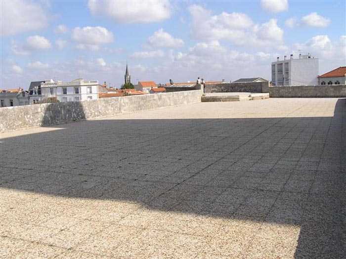 Place de Rochefort. Le château de Fouras, dont l’origine remonte au XIVème siècle mais qui a surtout été modelé au XVIIème, est bien situé en rive droite de l’embouchure de la Charente à peu près à la verticale de l’île Madame. Il a été trouvé mentionné une seule fois, dans un rapport au Conseil supérieur de la Guerre d’août 1888, qui prescrit de le déclasser tout en conservant les emplacements comme points d’appui pour la défense mobile. Néanmoins, en 1906, il est question d’un "groupe de batteries de Fouras" qui sont échelonnées le long de la rive droite. La carte accompagnant le document indique trois batteries. Une de moyen calibre dans le fort de la Pointe et deux (au moins pour l’une des deux, de petit calibre) localisées à proximité immédiate du château. Nous ne sommes pas en mesure d’en écrire plus au sujet de ces dernières. Le château, parfois désigné comme fort, consiste en un donjon parallélépipédique dont l’origine remonte aux années 1480, cerné par une enceinte bardée de tours d’angle érigée sous Vauban, et, côté mer, on trouve une petite une batterie basse en demi-cercle (1693). Par la suite, de 1889 à 1940, il servit de sémaphore. Aujourd’hui, le château est ouvert au public (03/2008) et l’entrée est encadrée par deux superbes mortiers à plaque.
