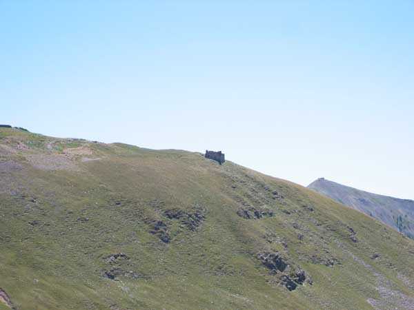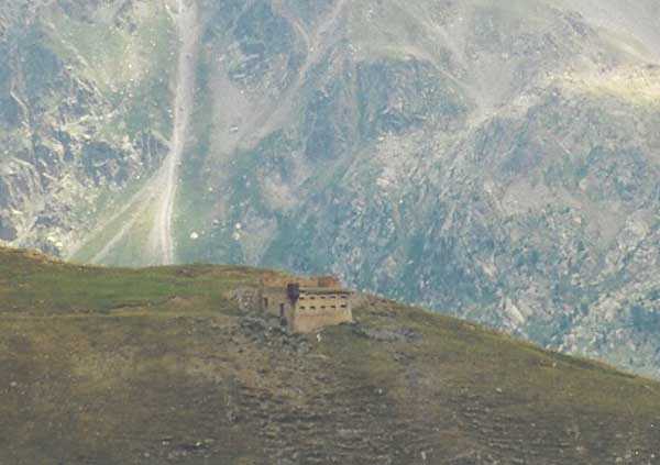 South-east of the fortress of Tournoux, 1898-1902. 2341 m/alt. Line of 3 crenellated posts of which only the third has survived the ravages of time and men. Very well known, the latter, rectangular, comprises several rooms including a chamber for about fifty men. Its north-west corner features a metallic watchtower whose bolted elements are designed to be transported on mule back. Philippe Truttmann writes very rightly that this is probably the last watchtower in the long history of fortification. The 2 other blockhouses were planned for 25 men each. Note that at 800 m north-west of these blockhouses, from 1909 to 1910 (or 1912 ?), the military village of Camp des Fourches, at 2260 m/alt, will be built. This ensemble is sometimes listed under the name "position of Mont des Fourches".