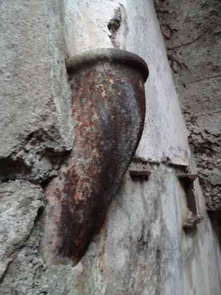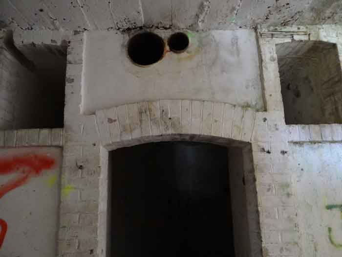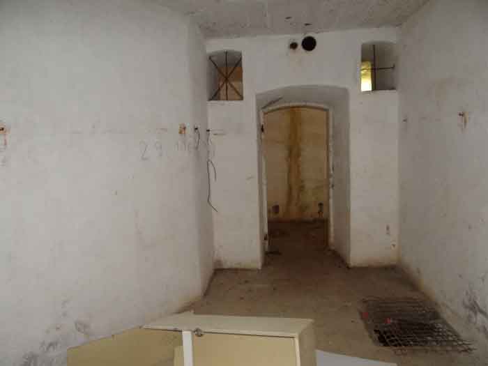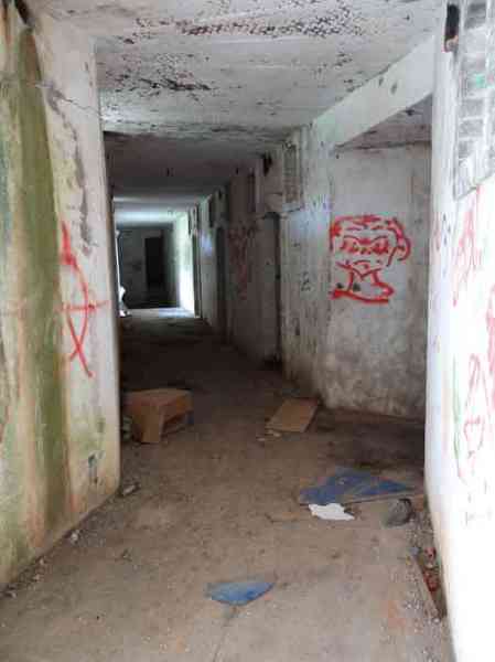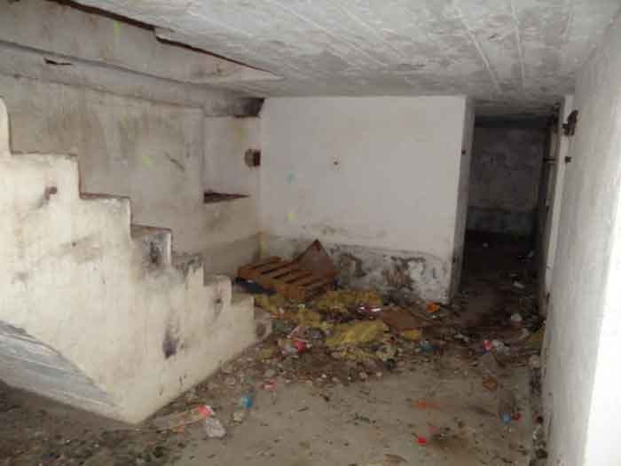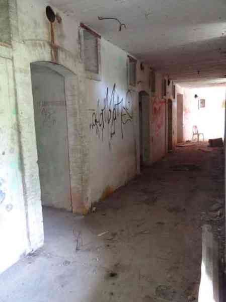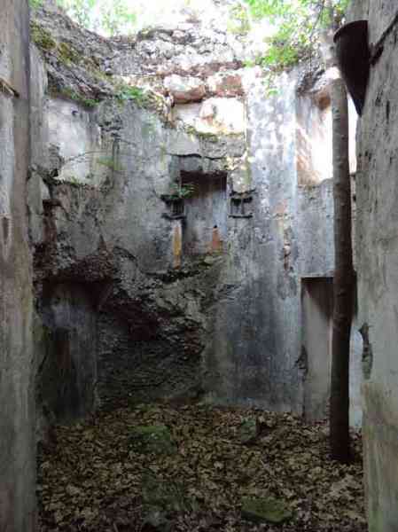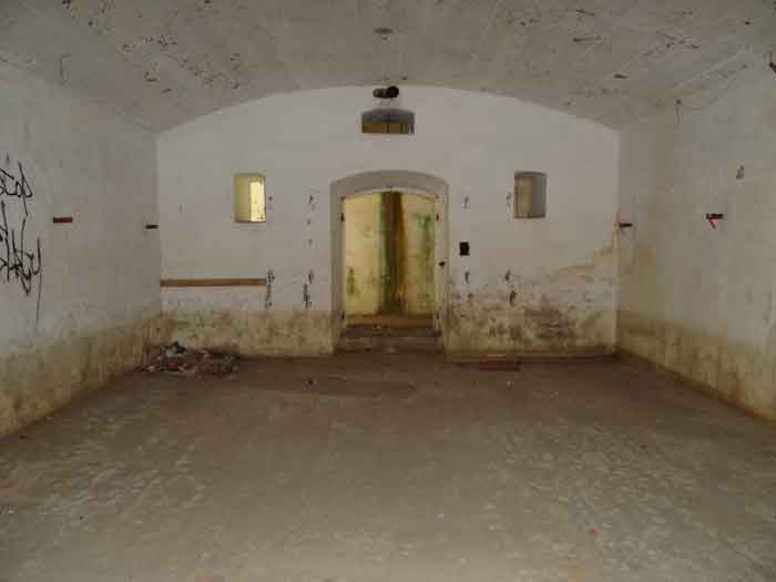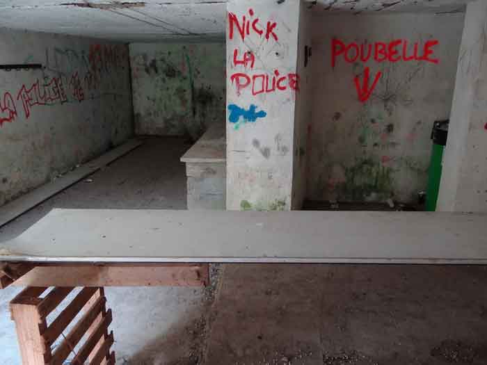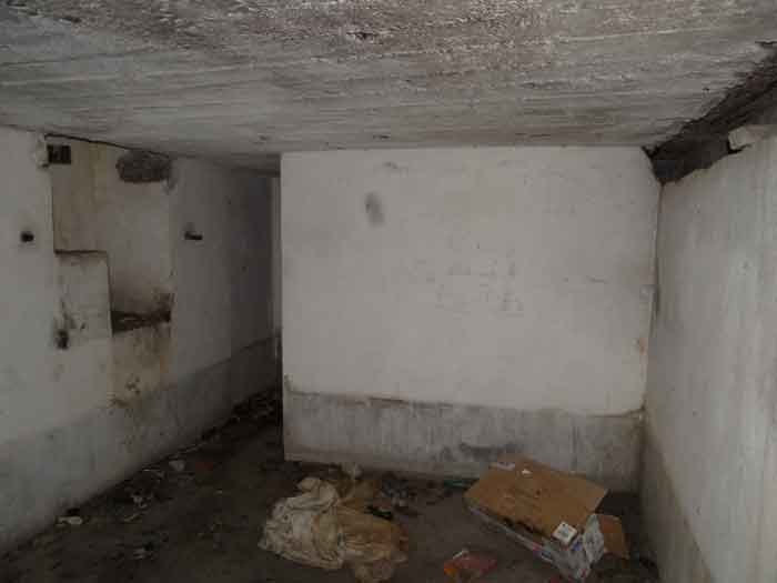 Toul fortified camp, NNE of the city, 1906. 229 m/alt. Small concrete structure located between the works of Bouvron and Ropage. According to the wall inscriptions, its garrison must have numbered 60 (70?) men, 12 non-commissioned officers and 4 officers. The structure, without a ditch, has an almost circular perimeter, with a sloping glacis and a barbed wire belt. In the center, a monolithic concrete structure includes, from left to right, a large barracks for 50 men, a barracks for 12 non-commissioned officers, two magazines, a gallery perpendicular to the gorge, a gallery leading to a machine gun turret (its armored observation post is reached by a transverse gallery passing behind the two magazines), a barracks for 4 officers, the command post and a telegraph post. All these premises are preceded by a circulation corridor to the left of which are the latrines. All the openings of this corridor to the outside, doors and windows have a system of closure by double beam barrier. To the left of this monolith, there is a rampart shelter surmounted by an infantry parapet with armored masks. To the right of the structure, there is a Bourges casemate whose wing wall is very long. The structure was completely stripped of its metalwork, but during our visit in August 2002, the premises were generally in good condition, and only the Bourges casemate was, despite itself, displaying some graffiti. Abandoned and exposed to all the winds.