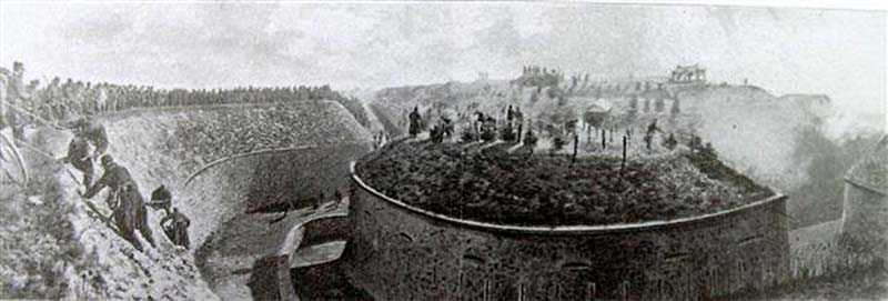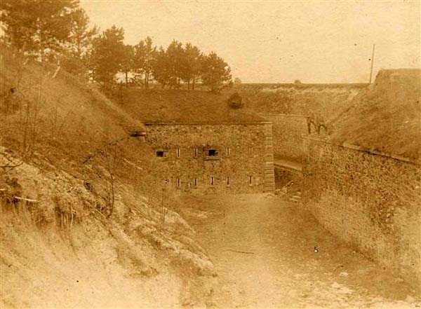 Fortress of Reims, northeast of the city, ± 1880. 112 m/alt. Called Fort Souham. 376 men and 20 guns. Small rectangular fort whose plan is close to that of the better-known Fort de La Pompelle. The most notable difference is that here an entrance porch opens onto a courtyard facing the barracks, whereas at La Pompelle, the barracks overlook the gorge. Here, the entrance building protruded into the gorge like a double caponier to defend the ditch, while at La Pompelle the gorge is equipped with a curtain wall with lateral defensive boxes. Once through the entrance building, one emerged into a wide courtyard facing the fifteen bays on a single level of the barracks. Between bays 8 and 9, a passage in the axis of the entrance porch communicated with the central traverse of the head front, a rooted traverse, of course. Each lateral front had two coated Mle 1879 shelter traverses and the head front showed two others in addition to nos. 3, 5 and 7, rooted. Behind front III-IV was the powder magazine, with a capacity of 75,000 kg. The fort also housed a bread oven with 150 rations and a 30 m deep drinking water well. The double caponier of salient II and the wing of salient III had a crenellated basement for musketry fire. On October 18, 1884, the local armament commission prescribed 6 x 155 mm cannons, 4 x 120 mm, 2 x 95 mm, 5 x Mle 1879 revolver cannons and 3 x 12 breech-loading cannons, however, these were temporarily replaced by 5 mm cannons. During the major Eastern maneuvers on September 19, 1901, Tsar Nicholas II visited it. The reports published on this occasion show a counterscarp surmounted by an embankment whose fruit was covered with slates and a dense network of barbed wire covered the tops of the double caponier. A photo of the entrance porch shows the absence of chains and buffer. The type of drawbridge could nevertheless have been of the type with a bascule below or with a longitudinal retraction. The fort was reportedly decommissioned in 1913. During the First World War, it suffered extensive damage from French artillery fire. After the conflict, it was completely dismantled by the population to recover its rubble to raise the city of Reims from its ashes. The land was purchased by the municipality of Fresnes in February 1934 for the sum of 7,442 francs. Today, a motocross course is destroying what little remains of it. During our visits (March 1998 and August 2007), we only detected rare (small) sections of masonry and the ditches have been filled in. Sometimes referred to as "fort de Fresnes-lés-Reims" or even spelled without the terminal "s".