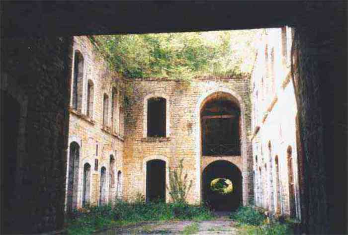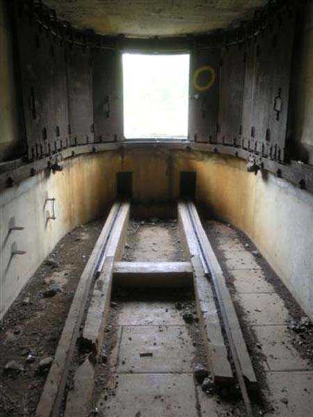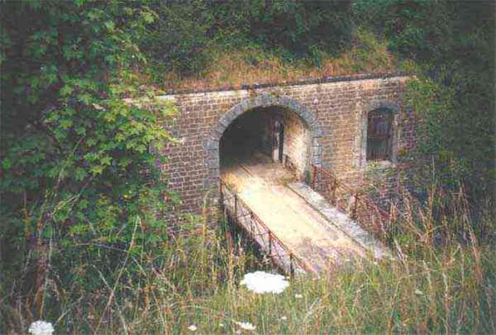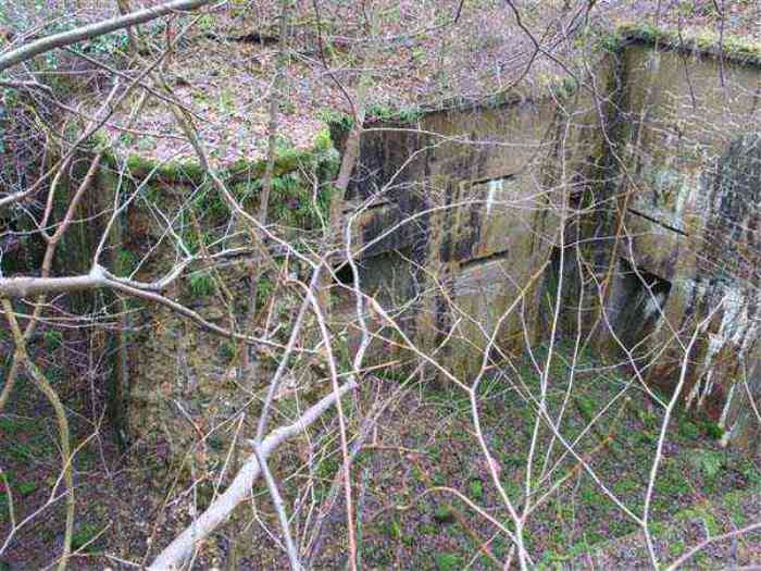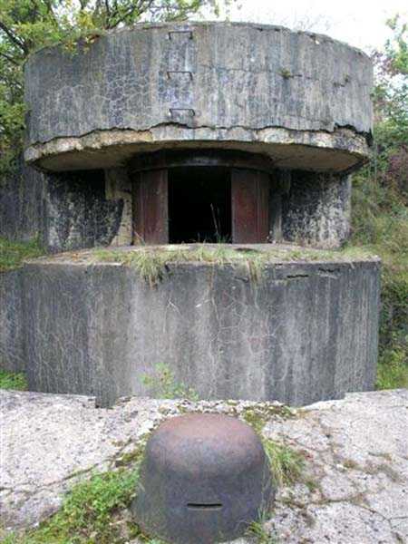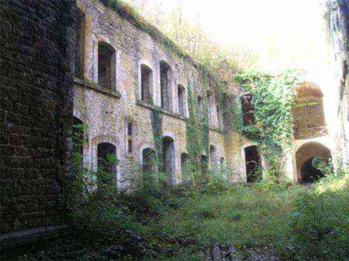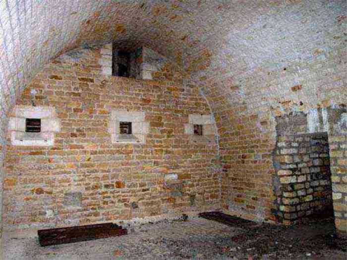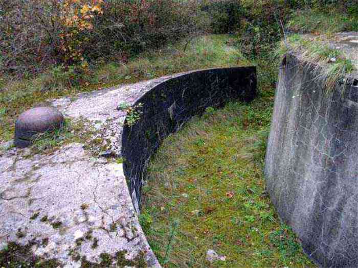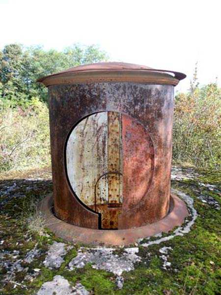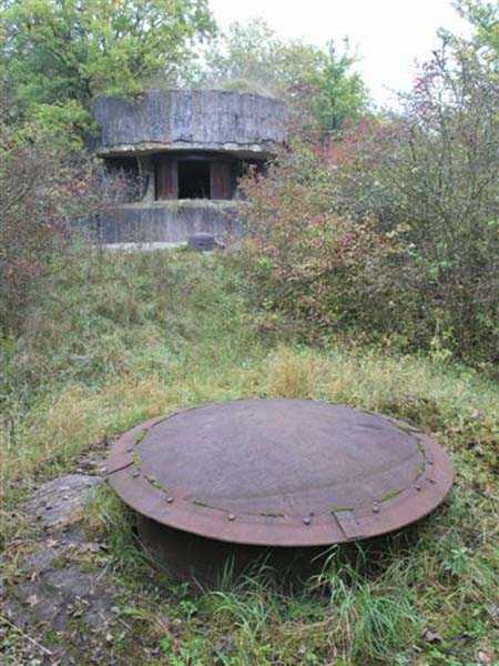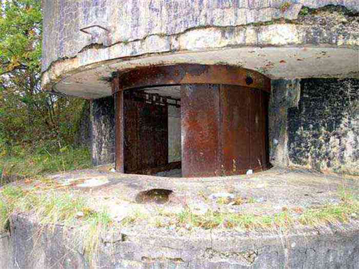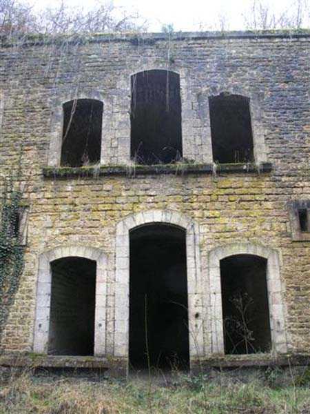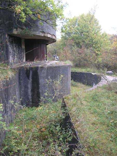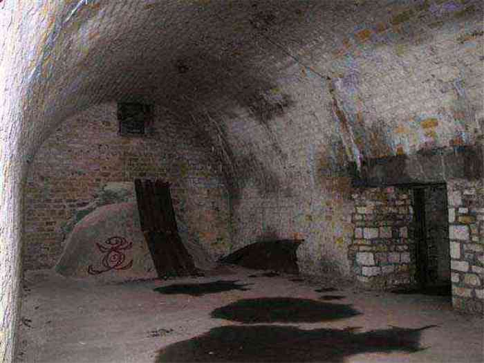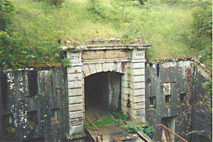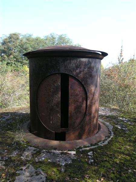 Northwest of Nancy, 1879-1883. 356 m/alt. Called Fort Drouot. 649 men (900 in wartime) and 27 guns including 15 rampart guns, 2 mortars, 2 under turret and 8 flanking guns. Here we have a stopping fort, almost square quadrilateral, whose defense of the ditches was entrusted to two wings (salients I and III) and a double caponier (salient IV). The entrance, in the center of the gorge front, faces northeast, i.e. facing the enemy. The wing of salient I also flanks front I-II and not the gorge. This incongruous arrangement allows us to put forward the hypothesis that the Frouard fort was perhaps originally designed as a place fort before being considered as a stopping fort. The entrance is protected from possible enfilade fire by a ravelin with a casemated guardhouse on the glacis. Otherwise, the layout is very classic for a stopping fort. The center of the fort is surrounded by a rampart street serving an alternation of shelter traverses and artillery platforms which, in total, have 360° actions. Each salient as well as each front center corresponded to a rooted traverse. Each of the salients had an infantry bonnet. The central massif was topped with a ridge where 95 mm cannons and infantry could be placed. Behind these parapets are the two courtyards of the barracks and the massif of the Mougin Mle 1876 turret for two 155 L de Bange cannons. Each courtyard of the barracks shows two lines of three casemates, barracks or magazines, on two levels, and whose vaulted cradles are not underlined on the facade by a masonry arch. The courtyards are separated by the covered passage in capital. The two powder magazines, with a unit capacity of 55,000 kg, run along the rear of the barracks opposite the Mougin turret. The salients of the gorge front have the beginnings of counter-mine networks. We were unable to verify the status of salients II and III. From 1890 the fort will be the subject of the greatest attention. If the replacement of the Mougin turret by a Galopin Mle 1890 turret (which will finally be installed at the Éperon battery) will be quickly abandoned, a magazine will be dug under rock under the central massif. Consequently, the old powder magazines will be used as stores for the administrative services. The cisterns will be concreted. The front line will be completely transformed with the creation of a war barracks occupying the entire length of the scarp. These barracks will be divided in two by a war entrance accessed from the counterscarp by a descending ramp. Concrete shelters will be built at each of the salients. The double caponier will be replaced by a double counterscarp box while the two fins will simply be reinforced. After this major work, it will be the turn of the armoring. From 1907 to 1914, the fort will undergo construction site after site. After much debate about the number of machine gun and 75 mm turrets, the following will be installed: a machine gun turret at salients II, III and IV (installation 1907-1908, reception shots on 06/02/1909 for the 3) and a 75 Mle 05 turret at salient I (reception shots on 10/01/1912). Four armored observation posts will be fixed, one behind the 75 turret, a second on the central massif behind salient II and two others will be placed side by side (unique arrangement!) and slightly offset in height to the right of the Mougin turret (market of the Navy steelworks in Homécourt on February 15, 1907). A fifth will be installed with the searchlight turret behind salient I (contract of 03/05/1910, received 10/01/1913). Salient III will also have its searchlight, but under a casemate. Each salient (except I) and each front center will have an infantry parapet with an armored sentry box. In addition to these seven sentry boxes, an eighth will be fixed in the parapet of the counterscarp ravelin. The Mougin turret, following the experiments of Pagny-la-Blanche-Côte in 1901, will be lowered. There will even be plans to install a 155 C turret in the fort, but this will not be followed up. While a fraction of the 6th Foot Artillery Regiment was garrisoned there in 1914, the stabilization of the front on the Grand Couronné preserved the fort from the ravages of a bombardment. It was not until September 10, 1944, that American planes aimed at the bridges over the Moselle between Pompey and Frouard dropped a few bombs on the fort and its surroundings. As a result, a good half of the East Battery (see the fortified complex of Parc Lattier) was demolished, two barracks of the old barracks were pierced through and through, and the intrados of two vaults in the war barracks were smashed. Although it remains a military site to this day, the Frouard fort is nonetheless lamentably abandoned. It took us two visits to visit it more or less properly. The following inventory is therefore based on visits in October 2007 and January 2008. The drawbridge preceding the peacetime entrance is completely rotten. As is often the case, this entrance opens a little back from the escarpment line, so that the pier supporting the fixed bridge is not in the firing line of the organ flanking the ditch. Apart from the guardhouses, the old premises on either side of the entrance tunnel have been concreted and converted into magazines for projectiles and water cans, most likely for the Mougin turret. The tunnel opens perpendicularly onto the rue du rempart and continues in the capital. On the left is a freight elevator head from the underground magazine and, opposite it, cisterns, also tested. Immediately beyond, at the height of the first circulation corridor behind the barracks, we find ourselves under the Mougin turret. A spiral staircase with cast iron steps leads to the floor of the rotation system and then to the turret itself. The surrounding premises, on the first floor of the barracks, were backfilled following the work to lower the turret, which, in fact, lost a floor of its initial substructure. According to the oral testimony of a certain Mr. Rollin, who was a ci