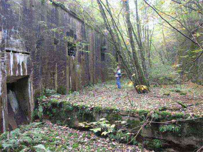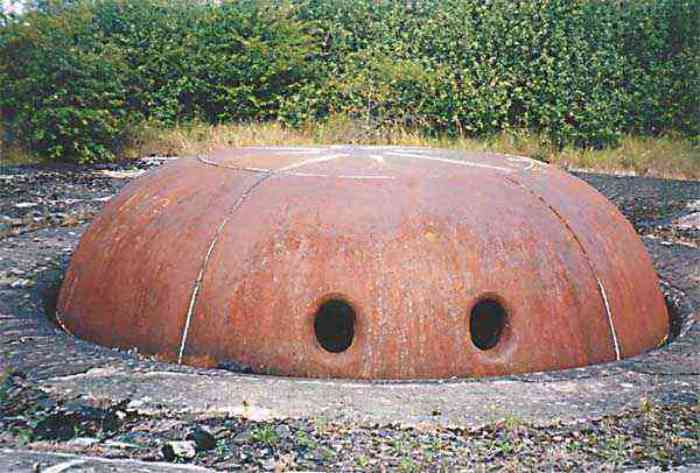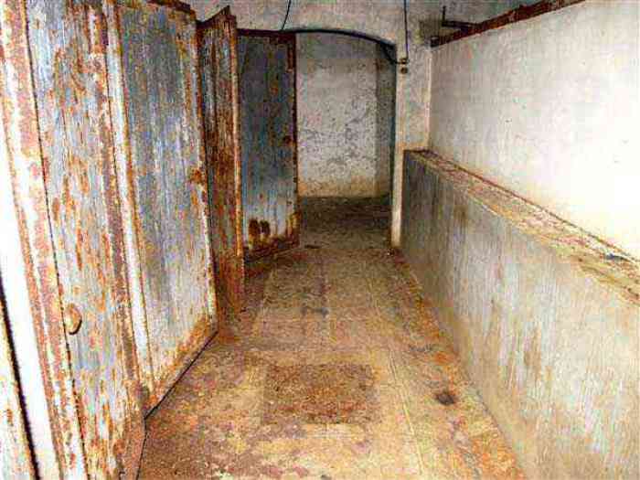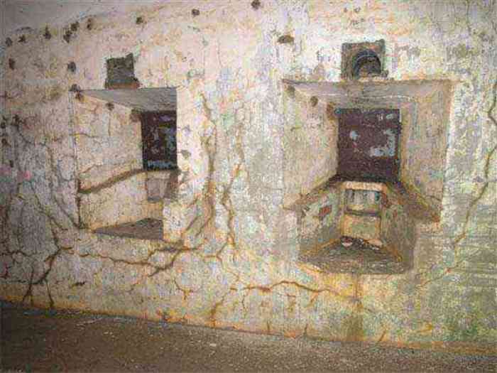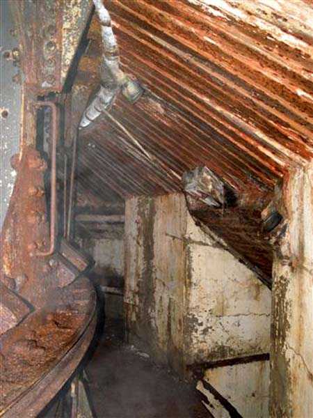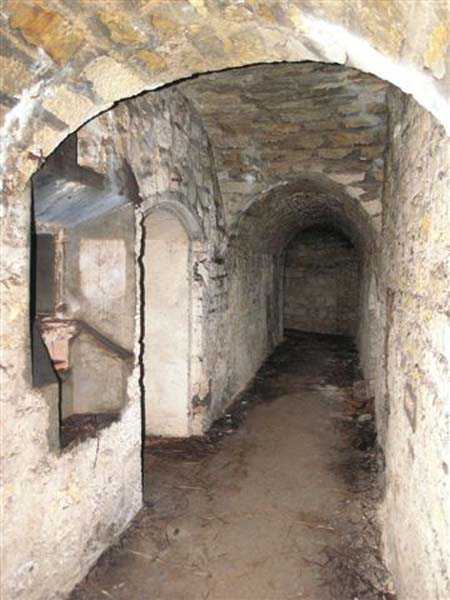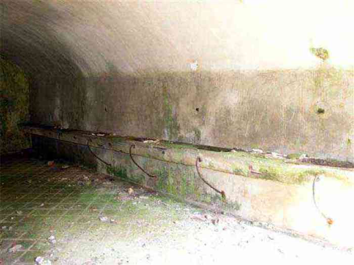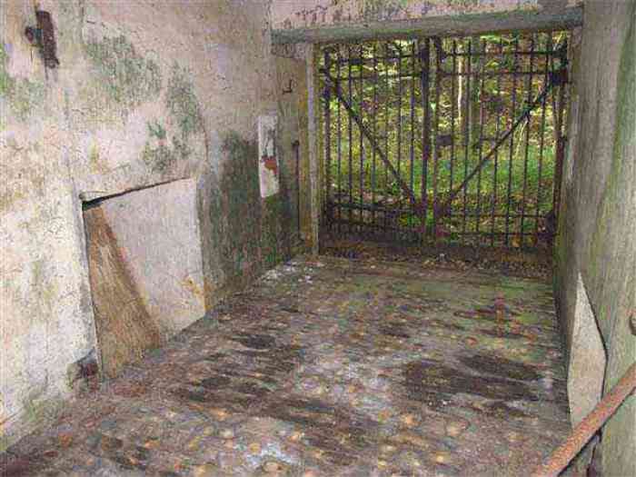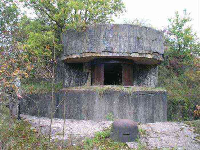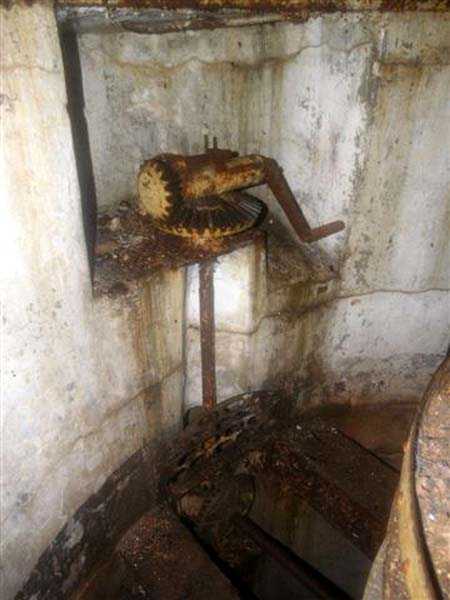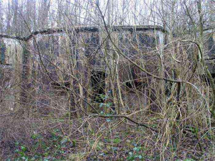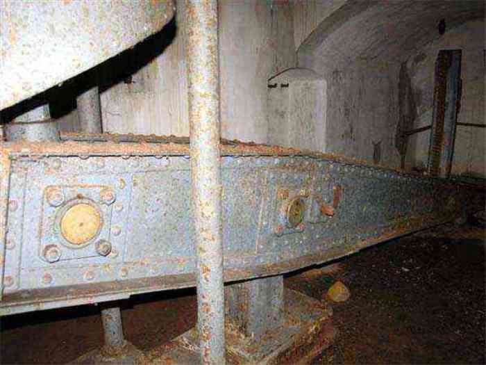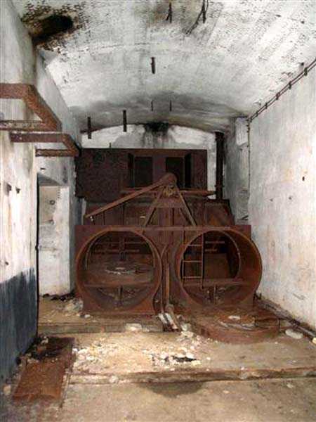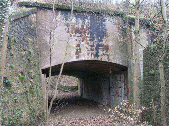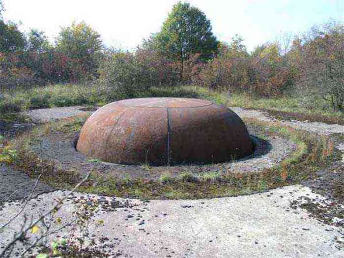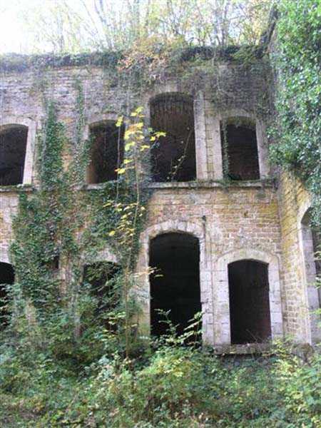 Northwest of Nancy, 1879-1883. 356 m/alt. Called Fort Drouot. 649 men (900 in wartime) and 27 guns including 15 rampart guns, 2 mortars, 2 under turret and 8 flanking guns. Here we have a stopping fort, almost square quadrilateral, whose defense of the ditches was entrusted to two wings (salients I and III) and a double caponier (salient IV). The entrance, in the center of the gorge front, faces northeast, i.e. facing the enemy. The wing of salient I also flanks front I-II and not the gorge. This incongruous arrangement allows us to put forward the hypothesis that the Frouard fort was perhaps originally designed as a place fort before being considered as a stopping fort. The entrance is protected from possible enfilade fire by a ravelin with a casemated guardhouse on the glacis. Otherwise, the layout is very classic for a stopping fort. The center of the fort is surrounded by a rampart street serving an alternation of shelter traverses and artillery platforms which, in total, have 360° actions. Each salient as well as each front center corresponded to a rooted traverse. Each of the salients had an infantry bonnet. The central massif was topped with a ridge where 95 mm cannons and infantry could be placed. Behind these parapets are the two courtyards of the barracks and the massif of the Mougin Mle 1876 turret for two 155 L de Bange cannons. Each courtyard of the barracks shows two lines of three casemates, barracks or magazines, on two levels, and whose vaulted cradles are not underlined on the facade by a masonry arch. The courtyards are separated by the covered passage in capital. The two powder magazines, with a unit capacity of 55,000 kg, run along the rear of the barracks opposite the Mougin turret. The salients of the gorge front have the beginnings of counter-mine networks. We were unable to verify the status of salients II and III. From 1890 the fort will be the subject of the greatest attention. If the replacement of the Mougin turret by a Galopin Mle 1890 turret (which will finally be installed at the Éperon battery) will be quickly abandoned, a magazine will be dug under rock under the central massif. Consequently, the old powder magazines will be used as stores for the administrative services. The cisterns will be concreted. The front line will be completely transformed with the creation of a war barracks occupying the entire length of the scarp. These barracks will be divided in two by a war entrance accessed from the counterscarp by a descending ramp. Concrete shelters will be built at each of the salients. The double caponier will be replaced by a double counterscarp box while the two fins will simply be reinforced. After this major work, it will be the turn of the armoring. From 1907 to 1914, the fort will undergo construction site after site. After much debate about the number of machine gun and 75 mm turrets, the following will be installed: a machine gun turret at salients II, III and IV (installation 1907-1908, reception shots on 06/02/1909 for the 3) and a 75 Mle 05 turret at salient I (reception shots on 10/01/1912). Four armored observation posts will be fixed, one behind the 75 turret, a second on the central massif behind salient II and two others will be placed side by side (unique arrangement!) and slightly offset in height to the right of the Mougin turret (market of the Navy steelworks in Homécourt on February 15, 1907). A fifth will be installed with the searchlight turret behind salient I (contract of 03/05/1910, received 10/01/1913). Salient III will also have its searchlight, but under a casemate. Each salient (except I) and each front center will have an infantry parapet with an armored sentry box. In addition to these seven sentry boxes, an eighth will be fixed in the parapet of the counterscarp ravelin. The Mougin turret, following the experiments of Pagny-la-Blanche-Côte in 1901, will be lowered. There will even be plans to install a 155 C turret in the fort, but this will not be followed up. While a fraction of the 6th Foot Artillery Regiment was garrisoned there in 1914, the stabilization of the front on the Grand Couronné preserved the fort from the ravages of a bombardment. It was not until September 10, 1944, that American planes aimed at the bridges over the Moselle between Pompey and Frouard dropped a few bombs on the fort and its surroundings. As a result, a good half of the East Battery (see the fortified complex of Parc Lattier) was demolished, two barracks of the old barracks were pierced through and through, and the intrados of two vaults in the war barracks were smashed. Although it remains a military site to this day, the Frouard fort is nonetheless lamentably abandoned. It took us two visits to visit it more or less properly. The following inventory is therefore based on visits in October 2007 and January 2008. The drawbridge preceding the peacetime entrance is completely rotten. As is often the case, this entrance opens a little back from the escarpment line, so that the pier supporting the fixed bridge is not in the firing line of the organ flanking the ditch. Apart from the guardhouses, the old premises on either side of the entrance tunnel have been concreted and converted into magazines for projectiles and water cans, most likely for the Mougin turret. The tunnel opens perpendicularly onto the rue du rempart and continues in the capital. On the left is a freight elevator head from the underground magazine and, opposite it, cisterns, also tested. Immediately beyond, at the height of the first circulation corridor behind the barracks, we find ourselves under the Mougin turret. A spiral staircase with cast iron steps leads to the floor of the rotation system and then to the turret itself. The surrounding premises, on the first floor of the barracks, were backfilled following the work to lower the turret, which, in fact, lost a floor of its initial substructure. According to the oral testimony of a certain Mr. Rollin, who was a ci
