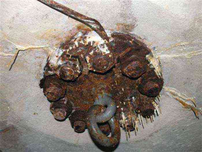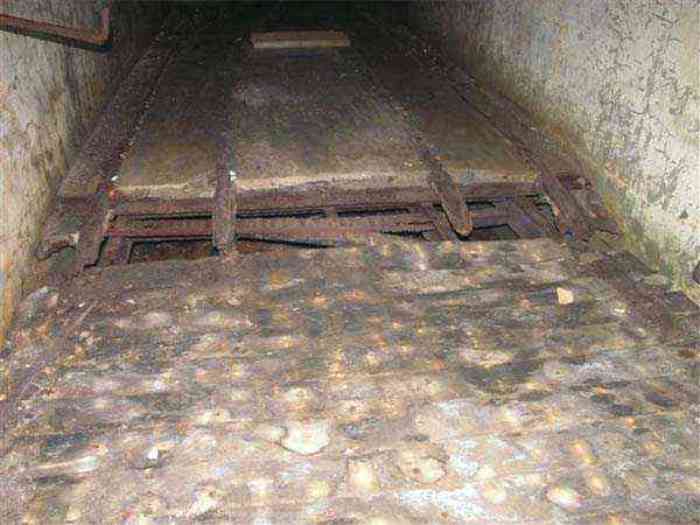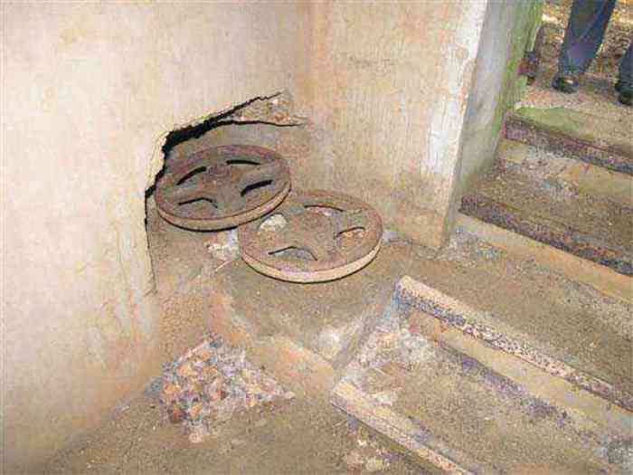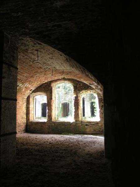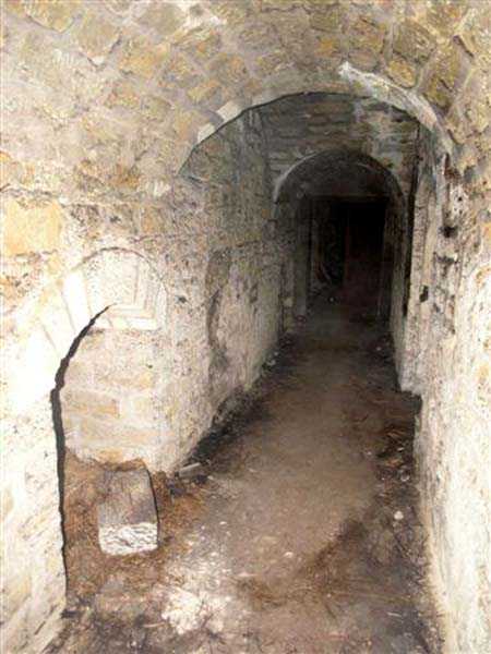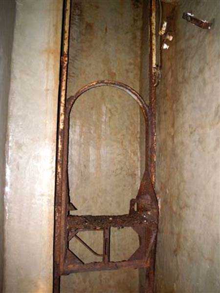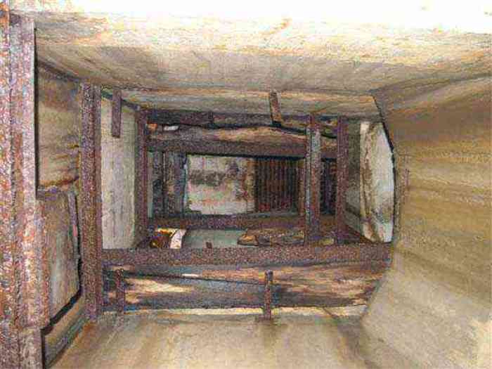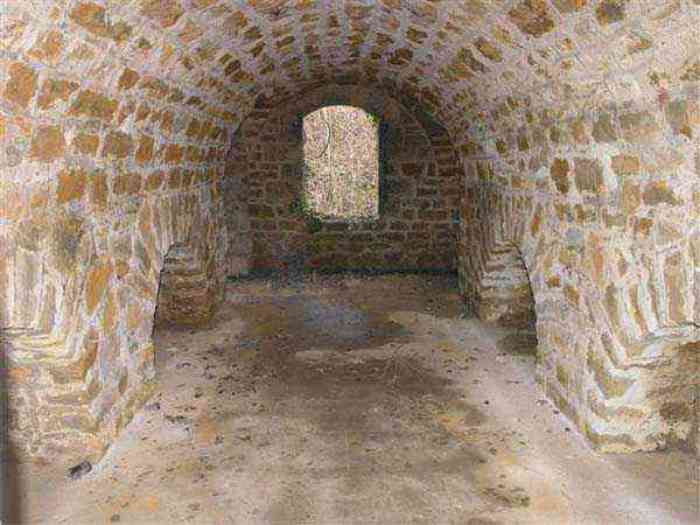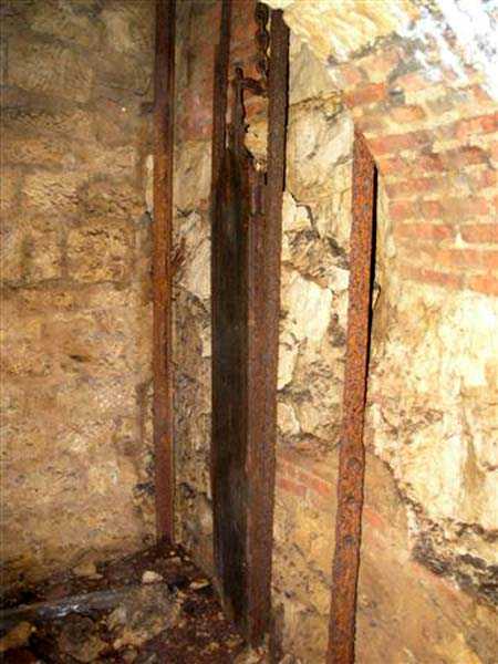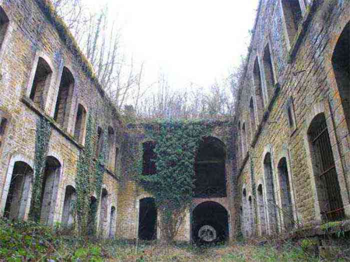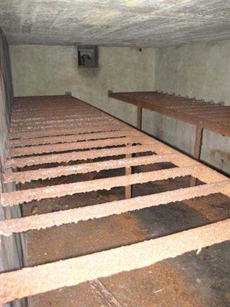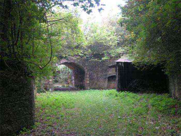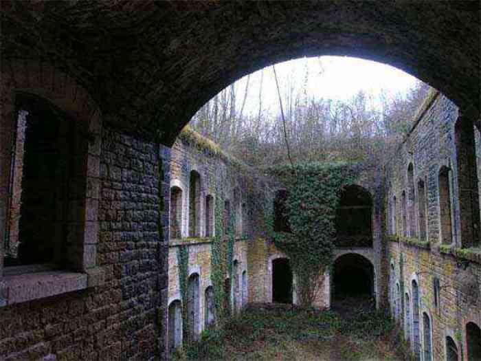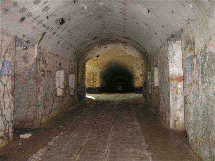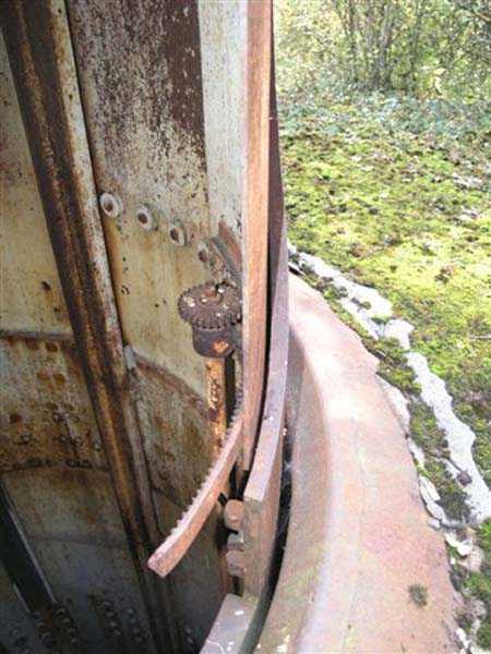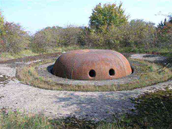 Northwest of Nancy, 1879-1883. 356 m/alt. Called Fort Drouot. 649 men (900 in wartime) and 27 guns including 15 rampart guns, 2 mortars, 2 under turret and 8 flanking guns. Here we have a stopping fort, almost square quadrilateral, whose defense of the ditches was entrusted to two wings (salients I and III) and a double caponier (salient IV). The entrance, in the center of the gorge front, faces northeast, i.e. facing the enemy. The wing of salient I also flanks front I-II and not the gorge. This incongruous arrangement allows us to put forward the hypothesis that the Frouard fort was perhaps originally designed as a place fort before being considered as a stopping fort. The entrance is protected from possible enfilade fire by a ravelin with a casemated guardhouse on the glacis. Otherwise, the layout is very classic for a stopping fort. The center of the fort is surrounded by a rampart street serving an alternation of shelter traverses and artillery platforms which, in total, have 360° actions. Each salient as well as each front center corresponded to a rooted traverse. Each of the salients had an infantry bonnet. The central massif was topped with a ridge where 95 mm cannons and infantry could be placed. Behind these parapets are the two courtyards of the barracks and the massif of the Mougin Mle 1876 turret for two 155 L de Bange cannons. Each courtyard of the barracks shows two lines of three casemates, barracks or magazines, on two levels, and whose vaulted cradles are not underlined on the facade by a masonry arch. The courtyards are separated by the covered passage in capital. The two powder magazines, with a unit capacity of 55,000 kg, run along the rear of the barracks opposite the Mougin turret. The salients of the gorge front have the beginnings of counter-mine networks. We were unable to verify the status of salients II and III. From 1890 the fort will be the subject of the greatest attention. If the replacement of the Mougin turret by a Galopin Mle 1890 turret (which will finally be installed at the Éperon battery) will be quickly abandoned, a magazine will be dug under rock under the central massif. Consequently, the old powder magazines will be used as stores for the administrative services. The cisterns will be concreted. The front line will be completely transformed with the creation of a war barracks occupying the entire length of the scarp. These barracks will be divided in two by a war entrance accessed from the counterscarp by a descending ramp. Concrete shelters will be built at each of the salients. The double caponier will be replaced by a double counterscarp box while the two fins will simply be reinforced. After this major work, it will be the turn of the armoring. From 1907 to 1914, the fort will undergo construction site after site. After much debate about the number of machine gun and 75 mm turrets, the following will be installed: a machine gun turret at salients II, III and IV (installation 1907-1908, reception shots on 06/02/1909 for the 3) and a 75 Mle 05 turret at salient I (reception shots on 10/01/1912). Four armored observation posts will be fixed, one behind the 75 turret, a second on the central massif behind salient II and two others will be placed side by side (unique arrangement!) and slightly offset in height to the right of the Mougin turret (market of the Navy steelworks in Homécourt on February 15, 1907). A fifth will be installed with the searchlight turret behind salient I (contract of 03/05/1910, received 10/01/1913). Salient III will also have its searchlight, but under a casemate. Each salient (except I) and each front center will have an infantry parapet with an armored sentry box. In addition to these seven sentry boxes, an eighth will be fixed in the parapet of the counterscarp ravelin. The Mougin turret, following the experiments of Pagny-la-Blanche-Côte in 1901, will be lowered. There will even be plans to install a 155 C turret in the fort, but this will not be followed up. While a fraction of the 6th Foot Artillery Regiment was garrisoned there in 1914, the stabilization of the front on the Grand Couronné preserved the fort from the ravages of a bombardment. It was not until September 10, 1944, that American planes aimed at the bridges over the Moselle between Pompey and Frouard dropped a few bombs on the fort and its surroundings. As a result, a good half of the East Battery (see the fortified complex of Parc Lattier) was demolished, two barracks of the old barracks were pierced through and through, and the intrados of two vaults in the war barracks were smashed. Although it remains a military site to this day, the Frouard fort is nonetheless lamentably abandoned. It took us two visits to visit it more or less properly. The following inventory is therefore based on visits in October 2007 and January 2008. The drawbridge preceding the peacetime entrance is completely rotten. As is often the case, this entrance opens a little back from the escarpment line, so that the pier supporting the fixed bridge is not in the firing line of the organ flanking the ditch. Apart from the guardhouses, the old premises on either side of the entrance tunnel have been concreted and converted into magazines for projectiles and water cans, most likely for the Mougin turret. The tunnel opens perpendicularly onto the rue du rempart and continues in the capital. On the left is a freight elevator head from the underground magazine and, opposite it, cisterns, also tested. Immediately beyond, at the height of the first circulation corridor behind the barracks, we find ourselves under the Mougin turret. A spiral staircase with cast iron steps leads to the floor of the rotation system and then to the turret itself. The surrounding premises, on the first floor of the barracks, were backfilled following the work to lower the turret, which, in fact, lost a floor of its initial substructure. According to the oral testimony of a certain Mr. Rollin, who was a ci