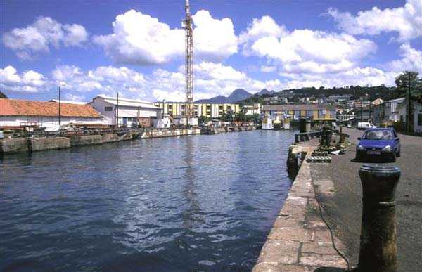 Martinique. The decree of 4 October 1898, which classifies Fort-de-France among the fleet support points, does not mark the beginning of its defence establishment. This actually began as early as 1638, with the construction of a small fort on the Cul de Sac peninsula, on the site where Fort Saint-Louis would later rise. This small fort has only a short existence, and the construction of the definitive work, named Fort Royal, begins in 1669 under the authority of Governor Jean de Baas. The fort will give its name to the town, created by the same governor. The construction of the fort is continued by his successors, in particular the Count of Blénac. These men are assisted by engineers inspired by the work of Vauban. It is therefore not surprising, when approaching Fort-de-France by sea, in the splendid setting of its bay, to feel that impression of majesty and power that the work of the great engineer gives to enthusiasts. Added to this is the almost palpable sensation, especially when one has called at the islands of the former British Antilles, of coming home. If the English did not succeed in capturing the place during the War of the League of Augsburg, they would succeed during the Seven Years' War. In January 1762, after a successful landing, they occupy the heights dominating the town and bombard Fort Royal, which capitulates on 4 February. They leave the island reluctantly only on 6 July 1763. This episode shows the necessity of fortifying the heights, and the construction, on Morne Garnier, of a fort that will be called Fort Bourbon, is decided. It will span from 1764 to 1774. During the American War of Independence, Fort-de-France serves as a base for troops engaged alongside the Americans. From 1789, and until 1816, Fort-de-France will suffer the consequences of political regime changes and the wars of the Empire. Disturbances, sieges and occupations will therefore mark this period. On 4 February 1793, the town of Fort Royal becomes République Ville, and the forts Royal and Bourbon become forts of the Republic and the Convention. It is not until 25 March 1801 that the town takes the name of Fort-de-France, and the forts of the Republic and the Convention take the names, which they still bear, of Fort Saint-Louis and Fort Desaix. The English, before their final departure in April 1816, destroy part of Fort Desaix. It will be rebuilt and improved. From 1845, plans are drawn up for a fort intended to complement the action of Fort Desaix. Located on Morne Tartenson, it will take its name. Begun in 1857, it will not be completed until 1873. As the range of the guns increases, these 2 works are modified to receive coastal batteries, and the mission of land defence then becomes secondary. Four old small works, armed with 16 cm Mle 58-60 guns, complete the defence, at Pointe du Bout, at Îlet à Ramiers, at Pointe des Sables, and at Pointe des Nègres. The mortar battery at Pointe d'Alet, built in 1900, completes the system. The naval port, built in the Baie du Carénage, sheltered by Fort Saint-Louis, includes an arsenal equipped with a 200-metre dry dock. In 1912, the defence situation is as follows.