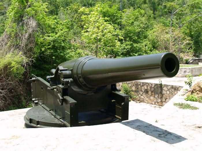 Ancienne Batterie C, Cap Saint-Jacques, à 250 m à l'ouest de la batterie du Lazaret. Cette batterie, construite à l’altitude moyenne de 97 mètres, fait partie du groupe de Ganh Ray, dont elle est l’ouvrage situé le plus au nord. Le premier projet, établi en 1892, prévoit un armement composé de six mortiers G de 270 Mle 1889 sur affût PC. Le projet est remanié un an après, et les mortiers sont remplacés par six canons M de 24 cm Mle 1870 sur affût M Mle 1889 PC. Les pièces sont disposées en deux groupes de trois, dont les axes de tir divergent pour couvrir les approches de la rivière de Saigon. Elles sont placées dans des alvéoles maçonnées, séparées par des traverses dotées d’une petite niche pour 12 coups complets. Les munitions sont stockées dans un magasin-caverne situé à proximité, qui ravitaille également la batterie du Lazaret. En 1914, ces matériels obsolètes, déjà dépassés au moment de leur mise en service, sont toujours en position, bien qu’un projet de 1905, non retenu, prévoyait de leur substituer quatre canons de 240 Mle 1902. Ils ne sont pas renvoyés en métropole pendant la Première Guerre mondiale. Le site n’est pas réutilisé en 1939. De nos jours, après une longue période d’abandon, la batterie a été complètement dégagée de la végétation. Les canons sont toujours en place. Bien que de nombreux accessoires soient manquants, ils restent très représentatifs. Ils sont en excellent état et repeints régulièrement. Il semble que la batterie soit actuellement en cours d’aménagement pour être ouverte à la visite. C’est un des plus beaux sites que nous ayons pu voir lors de nos reconnaissances outremer. Il est bien dommage que rien de semblable n’existe en métropole. Les pièces sont baptisées 24 cm Mle 1870 R 1872 N°1 et 3, R 1873 N° 27, R 1876 N° 4, Nevers 1873 N°4 et Nevers 1874 N°33. Un autre tube est exposé dans un musée, à Hanoï. Il est baptisé R 1873 N°15. Il est probable qu’il s’agisse d’un tube de rechange de la batterie. JJM 03/07/2008