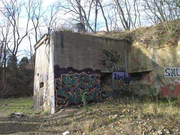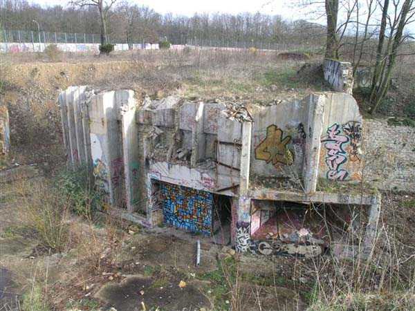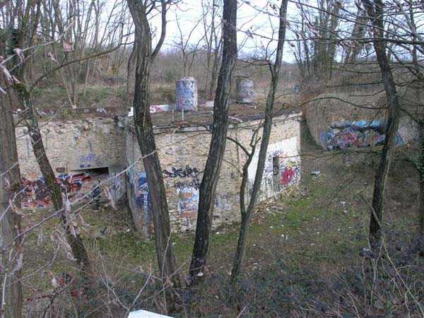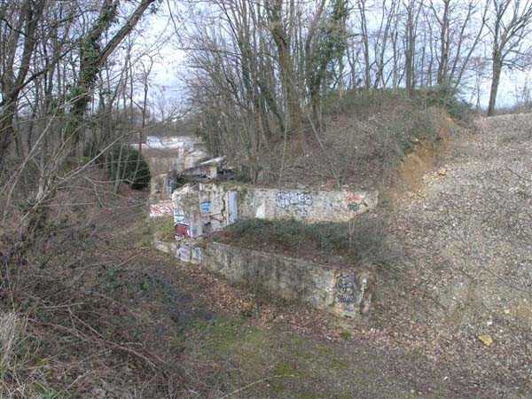 Fortress Paris, south-southwest of the city, 1875-1879. 162 m/alt. SE complement of the Verrières redoubt, located between the Terrier and Igny batteries. 224 men and 16 guns. With a plan very close to that of the Châtaigneraie battery, its front is however asymmetrical and its double caponier at salient IV is moved further back towards the gorge. We also find here a wing at salient I and another double caponier at salient II. The barracks are nestled, at the bottom of the ditch, against the gorge at salient I and the center of the battery overlooks an arc of six hollow, coated traverses (two of which shelter the access shafts to the double caponiers), framing seven (eight if one was located above the barracks) artillery platforms. Its escarpment was semi-detached. The site has been badly damaged by years of occupation by Aérospatiale. Only the ditch at the front of the head has not been filled in. The caponiers are badly damaged and distorted. After Aérospatiale left, the site was demolished and a pharmaceutical group was to build its headquarters there, but the project fell through. Only the two traverses of front II-III and the two descent shafts to the double caponiers remain. The entrance, the gorge and the barracks are no longer visible. Site abandoned (03/2007).