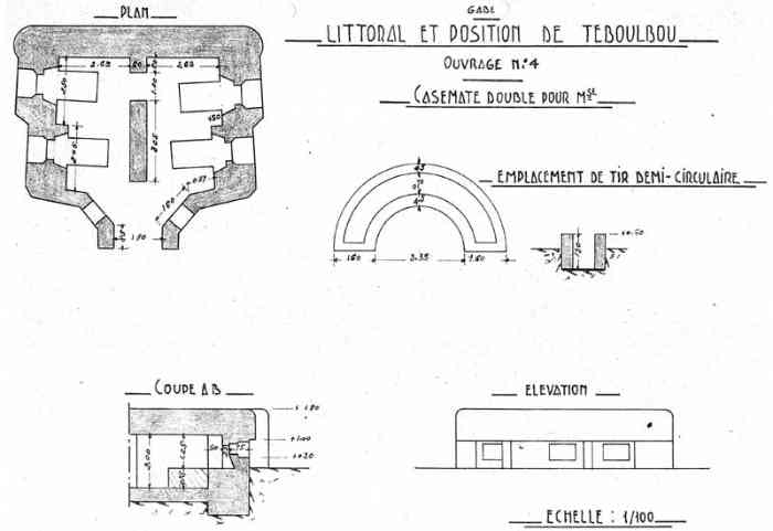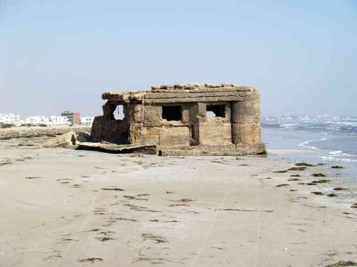 Gabès-South Work No. 4 This is a casemate, identical to the two previous ones, located 3,100 metres south-east of casemate No. 3. It is still in place but, the coastline having receded, it is now largely in the water. It is in very poor condition.