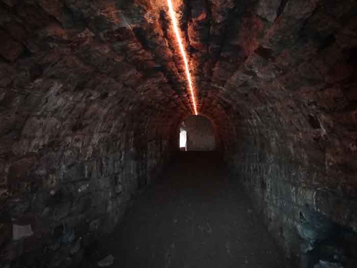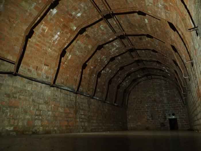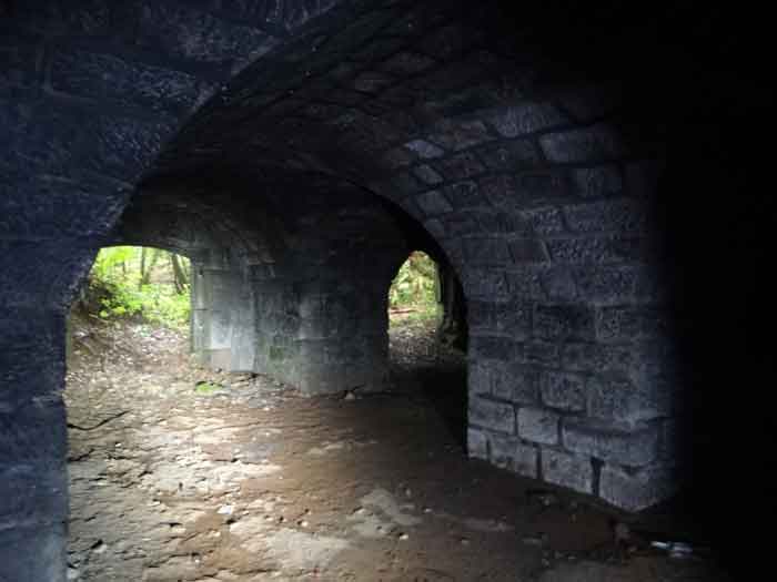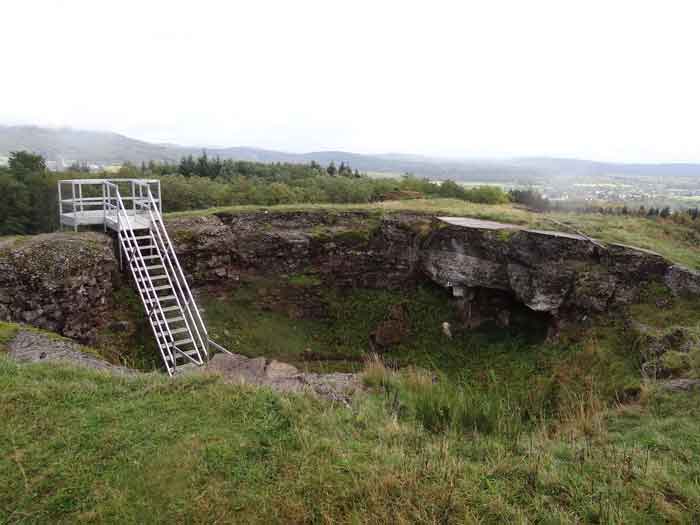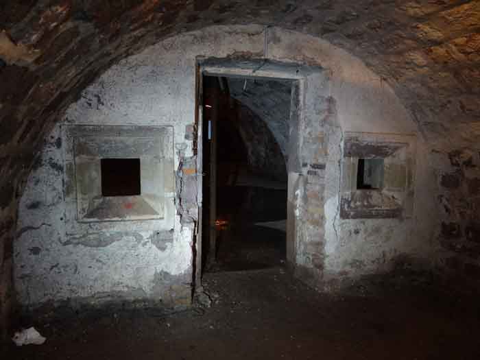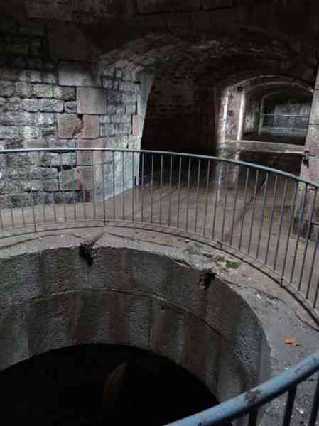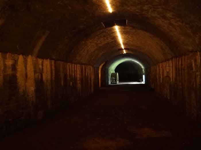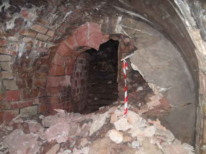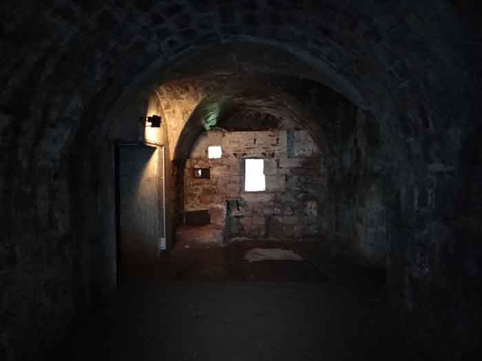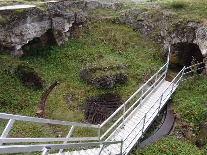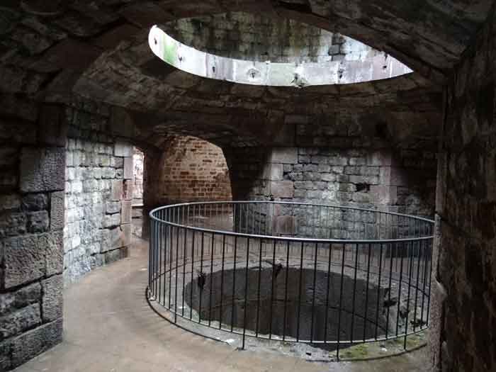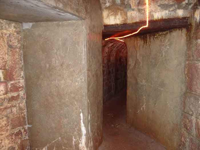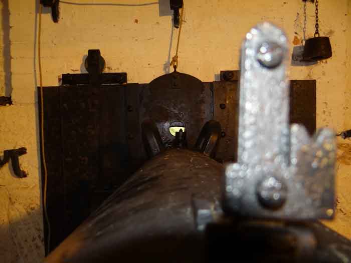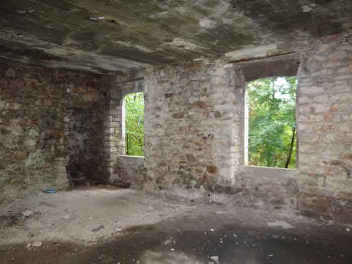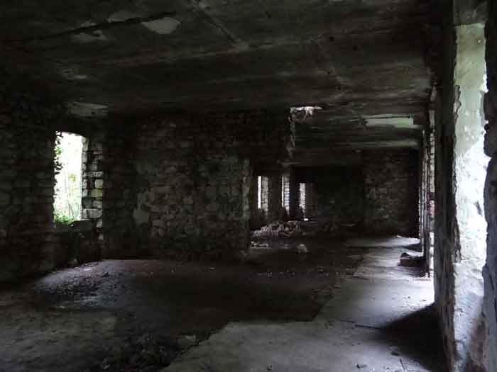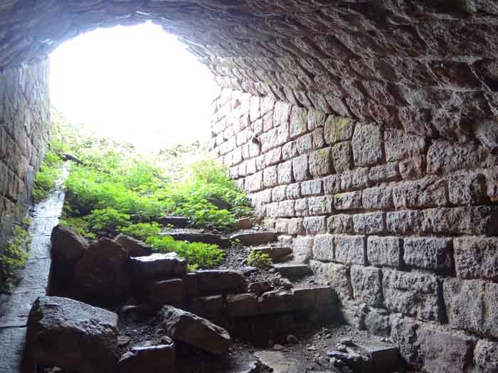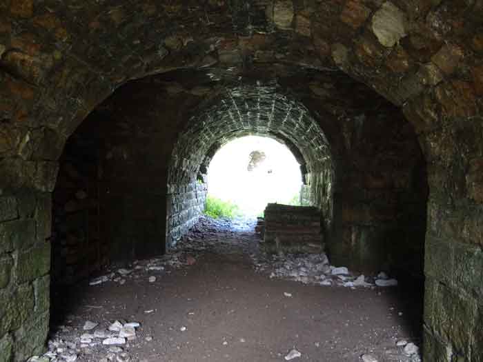 Upper Moselle Curtain, 1875-1879. 580 m/alt. 645 men and 35 guns. Called Fort Dorsner. Dominated 2000 m to the northwest by Mount Ordon-Verrier (963 m/alt), 1800 m to the north by the Tête des Planches (636 m/alt), 2800 m to the northeast by Mount Jean (786 m/alt) and 6000 m to the east by the Fayé (915 m/alt), there could be no question of building a conventional fort. Guardian of the road descending from the Ballon d'Alsace towards Belfort, it occupied a position of prime importance which, added to its potential vulnerability, justified the unusual expense, since only the forts of Manonviller and Barbonnet can boast the installation of two Mougin Mle 1876 turrets. Trapezoid with a curtain wall at the throat, this fort appears concentrated, which the available space and the threat of nearby heights made obligatory. The ten bays of the barracks are aligned at the back of the curtain wall one level lower than the entrance porch. These ten bays were separated into two series of five by the drawbridge maneuvering room. The curtain wall vaults are both equipped with a large visor, a protective device characteristic of exposed organs. Once through the entrance porch, a transverse gallery leads on either side to a small courtyard whose rooms backing onto the lateral fronts show a concrete covering dating from the reinforcements of 1914-1916. Behind the rooms in the left courtyard stretches the powder magazine. This is reported to have a capacity of 102,000 kg, which seems optimistic to us. Its storage room, with three lamp battlements on the same line, has its partitions entirely covered with a cement film. The tunnel in the capital opens onto a small octagonal courtyard surrounded, except on the gorge side, by two floors of rooms and casemates. We have here the most original and, even if it is a necessarily subjective judgment, the prettiest of the courtyards of all the forts of the Séré de Rivières system. Very carefully crafted, its masonry of pink Vosges sandstone rubble and the harmony of the arches of the bays opening onto it contribute to its majesty. Tactically speaking, however, one could compare it, depending on whether one is on the plain or on a height, with a golf course hole or a basketball hoop, which it was convenient for the attacker to hit with his projectiles. Laterally, there are still two large barracks for the troops while towards the front, on either side of the capital, we find the substructures of the turrets. These premises are superb and include some of the most beautiful achievements in rubble masonry that we have ever seen. Everything here is curves, vaults, wells, arcades, in sandstone of excellent texture. Texture perhaps, but, for the record, during the test firing of the two turrets, these masonry will be the source of some fears. A gallery envelops these substructures while serving no less than six casemates for indirect fire whose embrasures break the monotony of the parados of the rampart street. The latter served three shelter traverses, two of which were rooted, on each of the lateral fronts of the fort. The front of head had only two while salients II and III were furnished with an infantry caponette. The aileron of salient II and the double caponier of salient III have, like the chests of the curtain wall, large visors, which makes Giromagny a unique case with all its ditch defense organs arranged in this way. Modernized in 1888, 1913 and then from 1914 to 1916, it did not receive any additional armor, not even an armored observation deck for the turrets. These will, however, be framed by two concrete observation decks, accessible by wells with ladders drilled in 1913 in the vaults of the casemates on level + 1 of their substructures. The caponiers will be reinforced by a thickness of interior concrete, somewhat reducing the available space. Two small magazines under rock will be dug in 1888 under salients I and IV. They will be reached by an extension on either side of the circulation corridor at the rear of the barracks occupying the curtain wall. Their access corridor will be extended in 1914-15 by a staircase descending and reaching two large cave shelters. The one on the left will be built a kind of concrete sarcophagus isolated from the walls of the shelter and in which a mischievous hand left some charcoal sketches. Each of these shelters will be provided with a low gallery leading under the glacis to the gorge of the fort, gallery serving as a possible emergency exit as well as a drainage of condensation water. The turrets will unfortunately be scrapped during the Second World War and the occupier will see fit to dynamite the entrance porch of the fort when he leaves. The fort had two annex batteries. The first, close to salient IV and connected to the fort by a covered way, was armed around 1885 with 3 120 mm L de Bange guns which allowed it to enfilade the Riervescemont valley. It consisted of three artillery platforms separated by solid traverses. Located on the right of a hairpin bend in the access road to the fort, it had a small square guardhouse, with internal dimensions of 7.50 m, the vault of which was supported by a central pillar with a section of 1.50 m. The second, further north, is called "Battery of the Tête des Planches". Managed by an association since 1988, this superb fort, which we highly recommend visiting, is open to the public. In addition to its remarkable architecture in every way, the visitor will perfectly understand the service of a caponier thanks to a superb replica of a 12-breech cannon and a reconstructed acetylene factory.