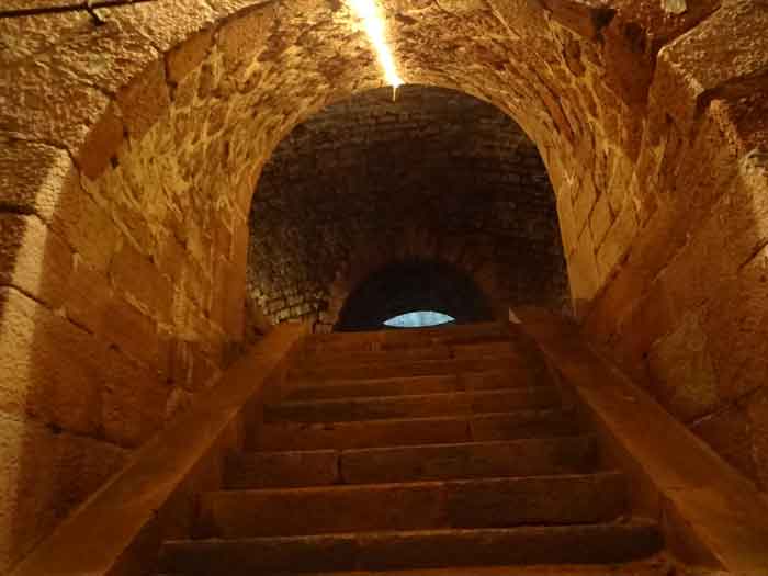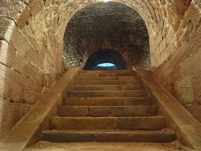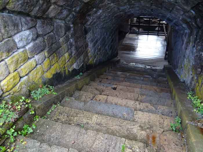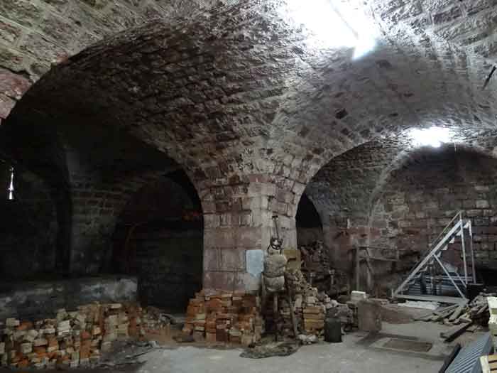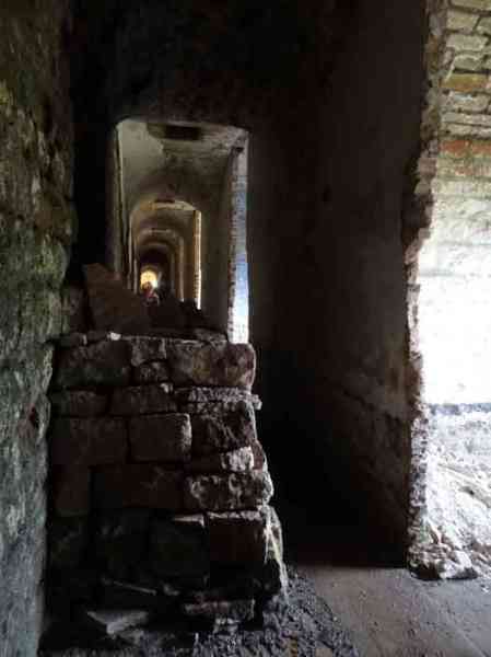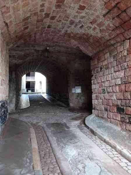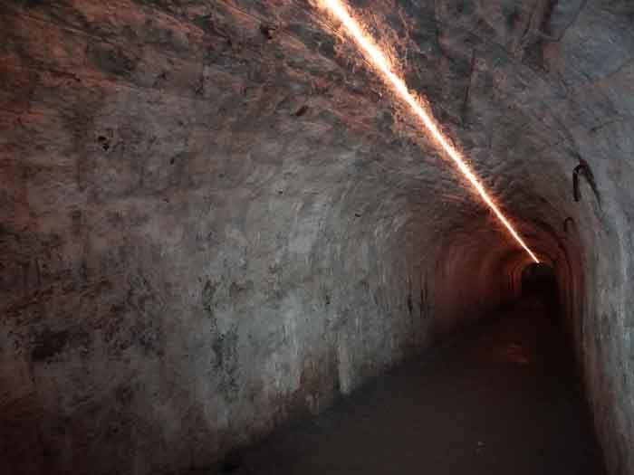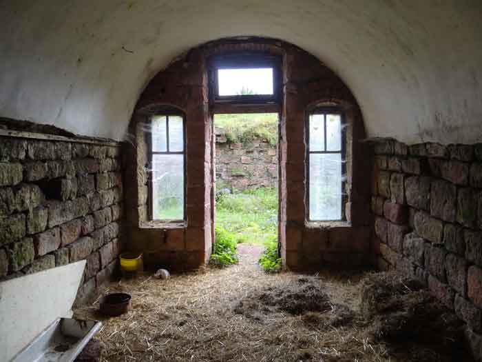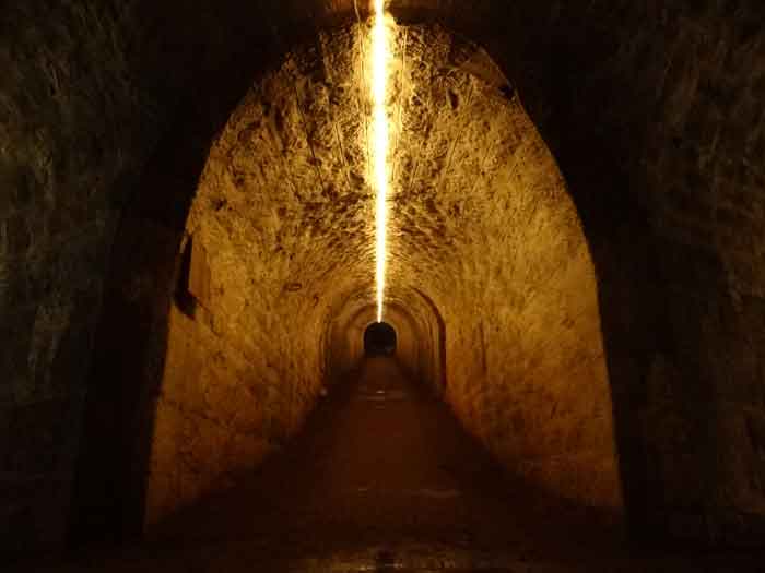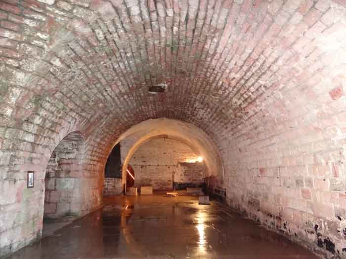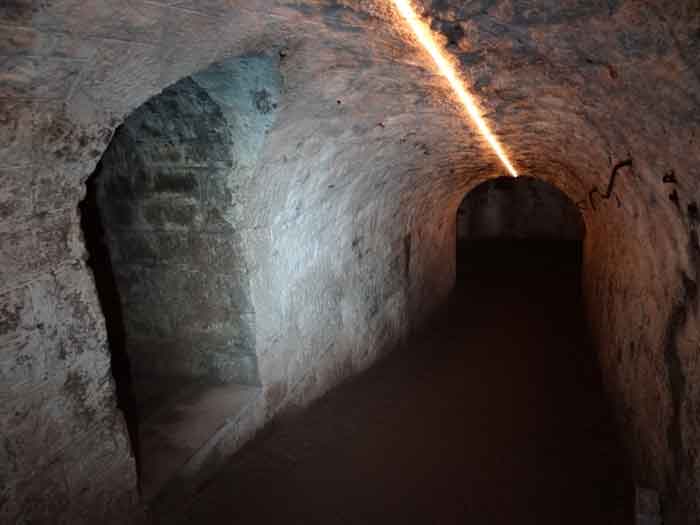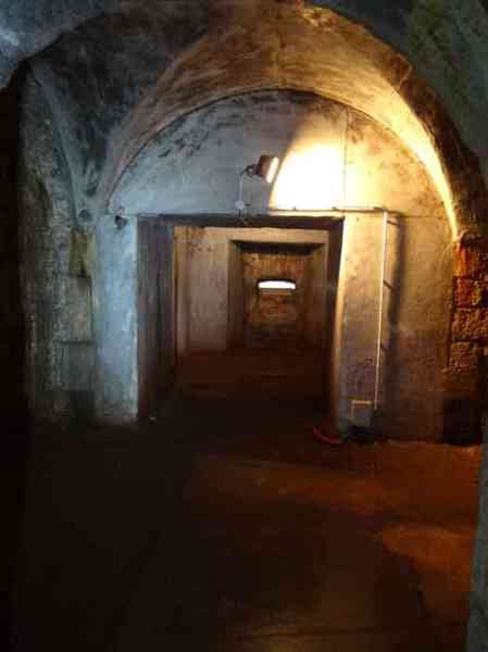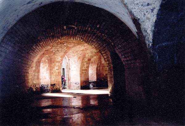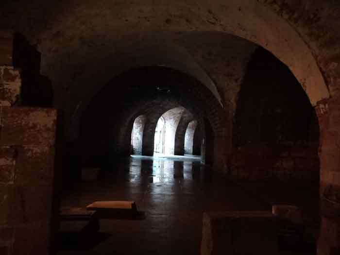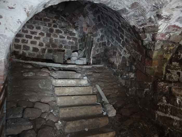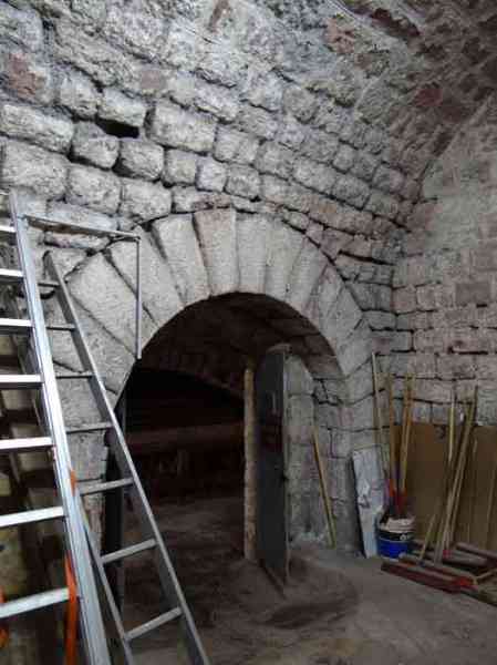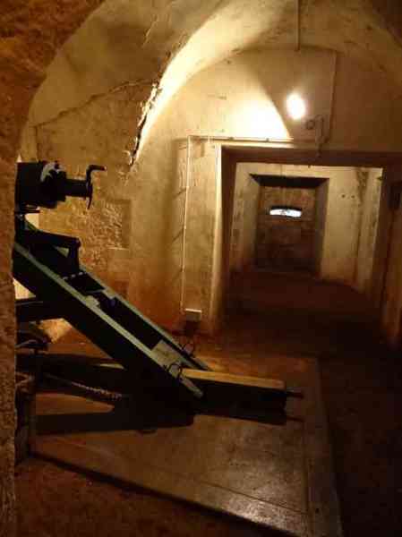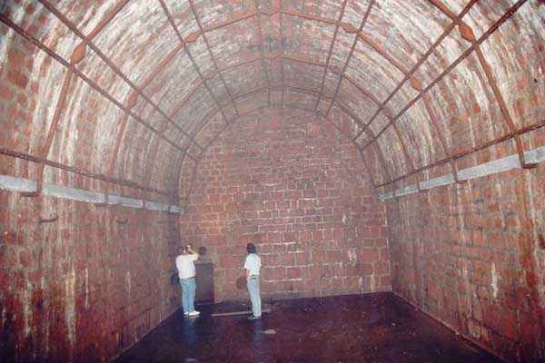 Upper Moselle Curtain, 1875-1879. 580 m/alt. 645 men and 35 guns. Called Fort Dorsner. Dominated 2000 m to the northwest by Mount Ordon-Verrier (963 m/alt), 1800 m to the north by the Tête des Planches (636 m/alt), 2800 m to the northeast by Mount Jean (786 m/alt) and 6000 m to the east by the Fayé (915 m/alt), there could be no question of building a conventional fort. Guardian of the road descending from the Ballon d'Alsace towards Belfort, it occupied a position of prime importance which, added to its potential vulnerability, justified the unusual expense, since only the forts of Manonviller and Barbonnet can boast the installation of two Mougin Mle 1876 turrets. Trapezoid with a curtain wall at the throat, this fort appears concentrated, which the available space and the threat of nearby heights made obligatory. The ten bays of the barracks are aligned at the back of the curtain wall one level lower than the entrance porch. These ten bays were separated into two series of five by the drawbridge maneuvering room. The curtain wall vaults are both equipped with a large visor, a protective device characteristic of exposed organs. Once through the entrance porch, a transverse gallery leads on either side to a small courtyard whose rooms backing onto the lateral fronts show a concrete covering dating from the reinforcements of 1914-1916. Behind the rooms in the left courtyard stretches the powder magazine. This is reported to have a capacity of 102,000 kg, which seems optimistic to us. Its storage room, with three lamp battlements on the same line, has its partitions entirely covered with a cement film. The tunnel in the capital opens onto a small octagonal courtyard surrounded, except on the gorge side, by two floors of rooms and casemates. We have here the most original and, even if it is a necessarily subjective judgment, the prettiest of the courtyards of all the forts of the Séré de Rivières system. Very carefully crafted, its masonry of pink Vosges sandstone rubble and the harmony of the arches of the bays opening onto it contribute to its majesty. Tactically speaking, however, one could compare it, depending on whether one is on the plain or on a height, with a golf course hole or a basketball hoop, which it was convenient for the attacker to hit with his projectiles. Laterally, there are still two large barracks for the troops while towards the front, on either side of the capital, we find the substructures of the turrets. These premises are superb and include some of the most beautiful achievements in rubble masonry that we have ever seen. Everything here is curves, vaults, wells, arcades, in sandstone of excellent texture. Texture perhaps, but, for the record, during the test firing of the two turrets, these masonry will be the source of some fears. A gallery envelops these substructures while serving no less than six casemates for indirect fire whose embrasures break the monotony of the parados of the rampart street. The latter served three shelter traverses, two of which were rooted, on each of the lateral fronts of the fort. The front of head had only two while salients II and III were furnished with an infantry caponette. The aileron of salient II and the double caponier of salient III have, like the chests of the curtain wall, large visors, which makes Giromagny a unique case with all its ditch defense organs arranged in this way. Modernized in 1888, 1913 and then from 1914 to 1916, it did not receive any additional armor, not even an armored observation deck for the turrets. These will, however, be framed by two concrete observation decks, accessible by wells with ladders drilled in 1913 in the vaults of the casemates on level + 1 of their substructures. The caponiers will be reinforced by a thickness of interior concrete, somewhat reducing the available space. Two small magazines under rock will be dug in 1888 under salients I and IV. They will be reached by an extension on either side of the circulation corridor at the rear of the barracks occupying the curtain wall. Their access corridor will be extended in 1914-15 by a staircase descending and reaching two large cave shelters. The one on the left will be built a kind of concrete sarcophagus isolated from the walls of the shelter and in which a mischievous hand left some charcoal sketches. Each of these shelters will be provided with a low gallery leading under the glacis to the gorge of the fort, gallery serving as a possible emergency exit as well as a drainage of condensation water. The turrets will unfortunately be scrapped during the Second World War and the occupier will see fit to dynamite the entrance porch of the fort when he leaves. The fort had two annex batteries. The first, close to salient IV and connected to the fort by a covered way, was armed around 1885 with 3 120 mm L de Bange guns which allowed it to enfilade the Riervescemont valley. It consisted of three artillery platforms separated by solid traverses. Located on the right of a hairpin bend in the access road to the fort, it had a small square guardhouse, with internal dimensions of 7.50 m, the vault of which was supported by a central pillar with a section of 1.50 m. The second, further north, is called "Battery of the Tête des Planches". Managed by an association since 1988, this superb fort, which we highly recommend visiting, is open to the public. In addition to its remarkable architecture in every way, the visitor will perfectly understand the service of a caponier thanks to a superb replica of a 12-breech cannon and a reconstructed acetylene factory.
