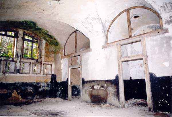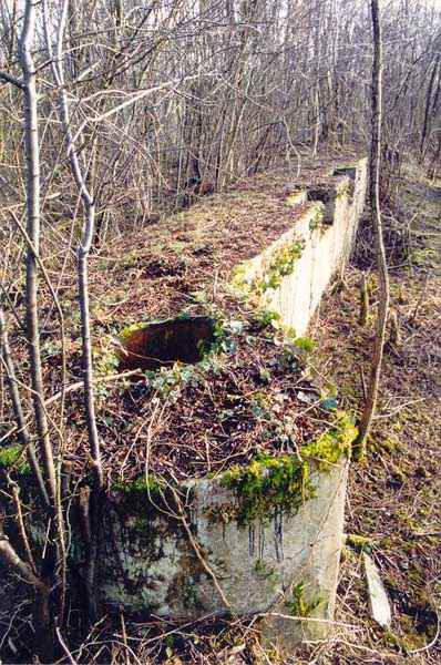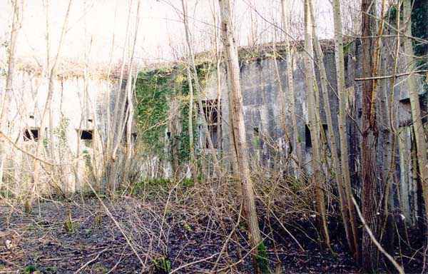 Toul fortified camp, east of the city, 1884-1887. 232 m/alt. 297 men. Called Fort Dahlmann. Considered as early as 1877, it took several years to decide to occupy this position which removed the danger to the east of the place, where a gap was available to the enemy, the advanced defenses of the Villey-Saint-Etienne forest not yet having been built. The Gondreville redoubt was an irregular trapezoid whose dry backs were defended by two double caponiers (gorge and salient III) as well as by a wing (salient II). Its salient IV today touches the D 400 coming from Nancy. The barracks occupied the escarpment of the gorge front with its fourteen bays. Above the seventh was the entrance to the fort. This, marked by two pilasters, had a longitudinally retractable rolling bridge maneuverable with a winch. The beam pillar supporting the fixed bridge and on which the mobile part of the rolling bridge rested still exists, as does the metal frame of the mobile bridge and its rolling rollers. From the rear of the fourth bay of the barracks, a long inclined plane allowed access to the basement of a shelter traverse installed in the capital and from which, two transverse galleries led to salient II where the powder magazine with a capacity of 50,000 kg was located and to salient III where, before the access shaft to the caponier of this salient, there was another series of artillery rooms and magazines. None of the plans we have been given to see materialize a real street of the rampart and the modernizations carried out between 1906 and 1909 do not allow us to see much more clearly on this subject. These have hardly affected the barracks except for the sixth and seventh bays which were concreted to accommodate the entrance of war and its defensive premises. Since this entrance of war, a new inclined plane (the old one was left but blocked at the end of the gallery) leads to a new concrete monolith comprising two large barracks and some ancillary rooms, monolith on the right of which we have access to a Bourges casemate. This casemate has the particularity of having undulations in and above the passage of munitions from the basement to the ground floor, undulations which prevented the shells from rolling on themselves. A frame drawn on the wall must have highlighted some portrait today mysterious. At the rear of this casemate, in the shaft leading to the double counterscarp box at salient III, there is a second drinking water well, the first having been spotted at the rear of the third bay of the barracks. To the left of the concrete monolith, there is a machine gun turret that we come across before continuing towards salient II, its single counterscarp box and its 75 Mle 05 turret. Two armored observation posts were part of the set of armor installed, the first installed at the rear of the 75 turret block and the second halfway between the machine gun turret and the Bourges casemate. A picket shelter topped with an infantry parapet is attached to the left of the 75 turret, facing front I-II. The gorge caponier was cleared of its covering earth, but also of its vaults replaced by a solid layer of concrete. A door was pierced into it with a retractable bridge. Visited in April 2001, this fort had just been cleared of a good part of its vegetation, we still do not know why and by whom… to our great delight. Although abandoned, this fort appeared to us to be in a very satisfactory state and the worst injury observed on its walls was a spectacular development of mycelium of the cellar coniophore. This fungus has found good conditions for development in the left part of the barracks but is far from having reached an incurable development. If the gorge ditch is cleared, the barracks will reveal its splendor. Indeed, it judiciously mixes large bay windows and defensive battlements with the highlighted reliefs of the partition walls and the arches of the barrel vaults. Many door frames are in place and the walls are (were?) immaculate. It is also worth noting the excellent condition of the armor, the interior of which is largely still covered in its original paint. Many gears are greased and clean. We should also note a small peculiarity: a staircase of four steps allows one to descend to the rear of the counterweight housing of the 75 turret. Finally, we should note the presence in the counterscarp at salient II of the beginning of a countermine gallery, a beginning preceded by a corridor with defensive battlements. An observation sentry box has been cut down, a second remains. This interesting fort is abandoned.