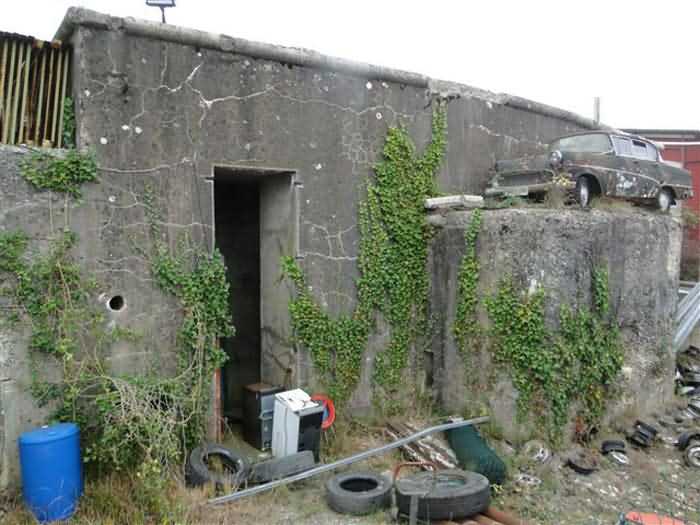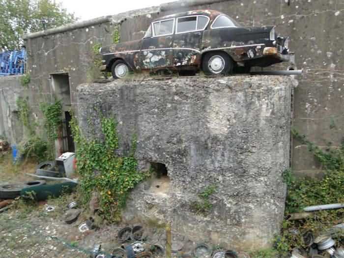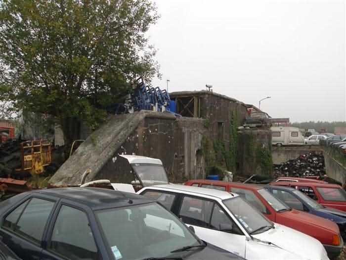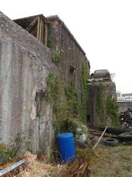 Belfort fortified camp, southeast of the city, 1890-1891 (some sources indicate development by military labor in 1911). 375 m/alt. Small infantry fortification, sometimes referred to as an entrenchment, leveled, between the Vézelois fort and the Chèvremont fort. The center of the fortification consists of a 1913-type combat shelter cast in 1914 for a half-company. Formerly, a leveled artillery battery stood to its rear. Today (10/2005 and 10/2010), a car scrapyard occupies the premises and the wreck of an old Simca Versailles covers the caponier of the combat shelter. Nothing remains of the infantry parapets and the entrance to the structure. Nevertheless, the combat shelter, one of the few of its generation, deserves our attention. Although cluttered with various materials due to the activities of the car scrapyard, we can notice that the barracks do not include the usual hearth of other shelters in Belfort. The caponier occupying the center of the facade is disconcertingly simple with a crenel dedicated to flanking each half-facade. A third crenel has been pierced into the face of the caponier, but we would not dare to pronounce on the fact that this is indeed a military work. The small right wing wall has been eliminated, however, the left wing wall, housing the two latrines, now well protected by a masking wall and accessible from the facade corridor without having to go out into the open air to get there, are still clearly visible. We will also note the pier separating the two rooms is pierced by two communications. The clutter of the place did not allow us to discover the location of the cistern. We are here on private property and permission to visit must be requested from the company's reception office. Sometimes referred to as "ouvrage des Grands Bois de Vézelois" or "ouvrage de la Charme".