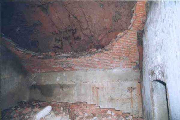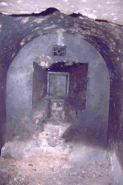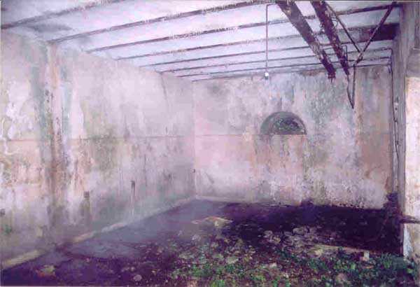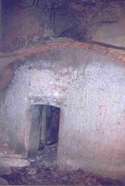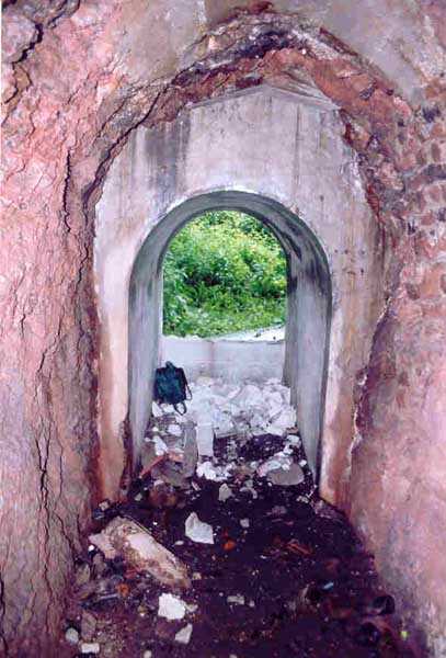 Fortress of Cherbourg, Saint-Vaast-la-Hougue, 1890. Located about 150 m south of the battery of the same name, this rock magazine comprises only a single entrance. A straight gallery onto which a room of 2.2 m x 2 m and two niches for artifices are grafted leads, after about fifteen metres, to an airlock itself allowing access to the main storage room whose dimensions are 5.6 m x 5 m. Outside, an enclosure protects the entrance, an enclosure in which are found the remains of two buildings in light masonry. This magazine is lost in the middle of very dense vegetation (06/2005) and is not in very good condition. Navy land, access forbidden.