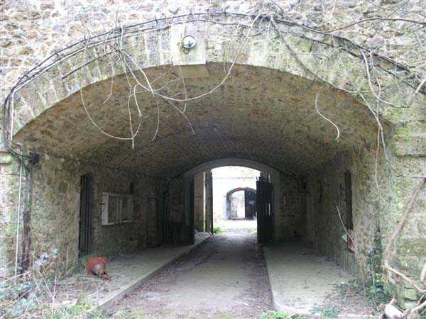 Fortress Paris, SW of the city, 1874-1880. 160 m/alt. Large trapezoidal cavalier fort for 820 men and 56 guns. It crossed fire with the Villeras fort, which has a fairly similar appearance. The counterscarp gate and the escarp gate still have their original elements except for the laterally retractable rolling bridge, all traces of which have disappeared, and the access to its withdrawal room has been filled in. In the counterscarp, we can still see two beautiful stables with their troughs. The gorge is defended by two curtain walls, quite unusual in that they appear to have been designed for three guns, but at the last minute, the exterior gun cellar was abandoned and transformed into an open-air casemate communicating with the semi-detached escarp. A covered passage with a segmental arch vault leads to the officers' pavilion. The latter includes four indirect fire casemates, one on each side and two in the center. It has only one level of barracks, while the troop barracks align 9 bays (+ 2 halves) on three levels. Behind each of the small fronts, a large powder magazine displays immaculate and beautiful vaults. The storage room for these magazines includes a door in each of its short sides. Preceded by a fairly imposing airlock, they still have their original door frames. Some traverses of the lower battery are coated. The caponiers have three embrasures per side. Several freight elevators open into shelters under the traverse and several traverses of the cavalier can, if necessary, become direct fire casemates. Note that the masonry of these casemates is particularly refined. A plan of the tops on which the traverse-shelters are numbered, indicates no less than 39 of them, thirteen of which are for the cavalier alone. A 1911 project, never realized, provided for a 75 mm turret and another for two machine guns, a concrete shelter and counterscarp boxes. The fort suffered damage following the fighting of August 1944. Today (03/2007), the entire front I-II, including the wing of salient II, has disappeared, filled in or destroyed. The double caponier of salient III is completely deformed, but its companionway shaft has a pretty light well with two sides still tiled. The interior underwent numerous post-World War II modifications following the occupation by the Thomson company. The structure is completely abandoned.
