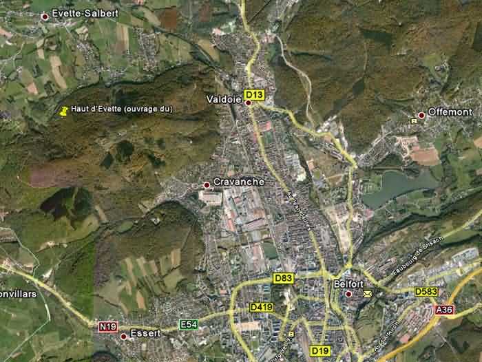 Opevněný tábor Belfort, severozápadně od města, 1890-1891. 480 m/n. m. Terasovitá pěchotní stavba táhnoucí se v oblouku dlouhém přibližně 150 metrů. Skládá se z poměrně širokého a hlubokého příkopu, na kterém se nacházejí tři zděné parapety dlouhé asi deset metrů s muničním výklenkem uprostřed. Malá pozorovatelna, jejíž střecha byla vyrobena z navlhčených cementových pytlů, svou přítomností narušuje monotónnost místa. Stavba se nachází 350 m jihozápadně od stavby severně od Salbertu, na úpatí hory Salbert. Volný přístup a velmi zdegradovaný stav (10/2010).