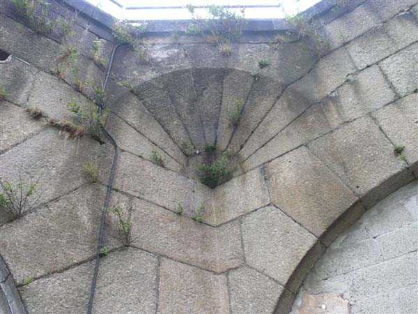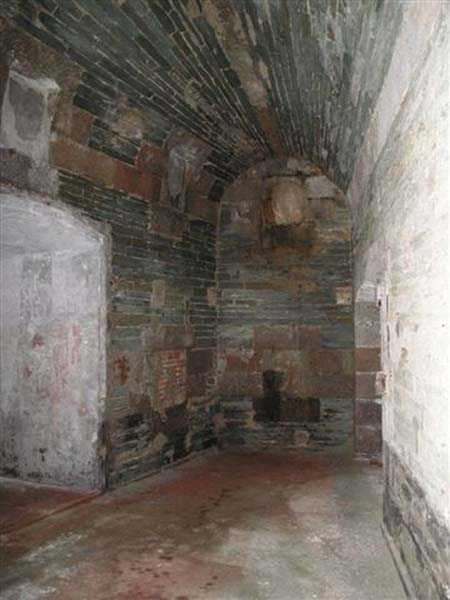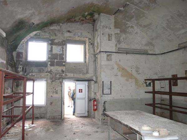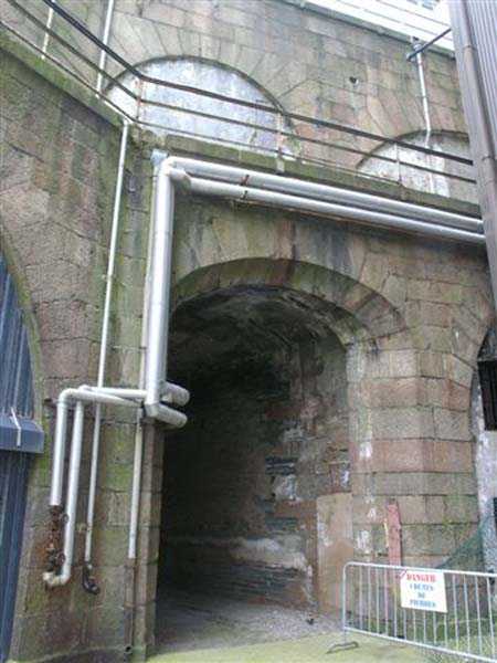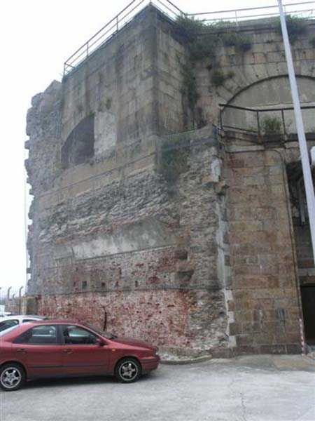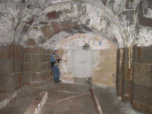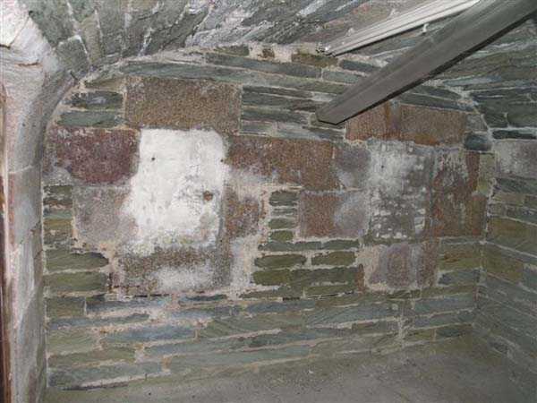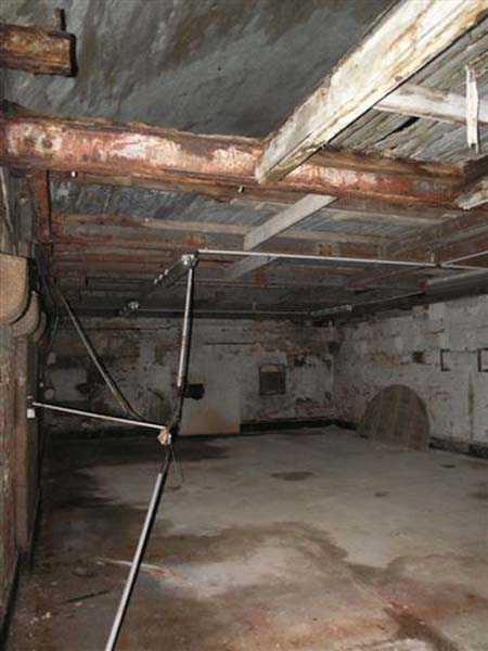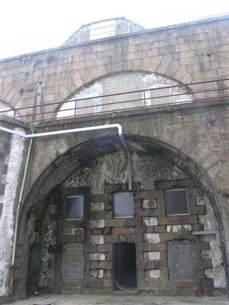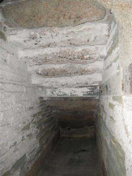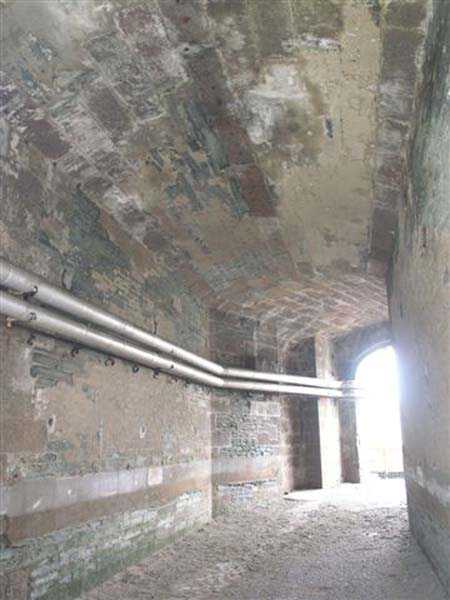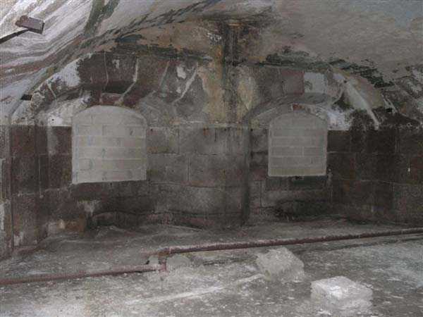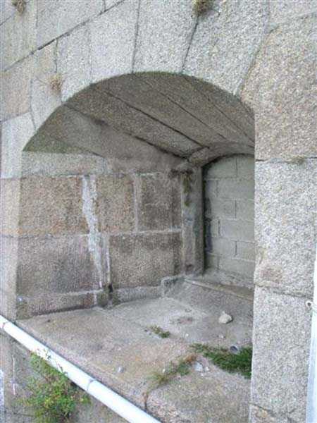 Fortress of Cherbourg, north of the town, on the left of the small roadstead, 1779-1785. Irregular heptagon, situated to the right of bastion I of the arsenal enclosure. Rooted at the base of the dyke of the same name, which encloses the west of the small roadstead of Cherbourg, this two-storey work will undergo practically no modernisation and its armament will be revised downwards until it disappears totally. A firing plan of 1881 assigns it no field of fire. Originally, it was surrounded by a ditch and had two entrances. If we count the salients from the south entrance, we will note that a gallery of 31 firing casemates preceded the ditch on fronts II-III, III-IV, IV-V and partially V-VI. These casemates will lose their importance when the West dyke is erected, as well as Chavagnac fort. The fort comprises casemates for housing about 400 men. There were stored, besides the torpedoes of the submarines and torpedo boats, the ammunition of the mobile defence. In 1891, the observation post of the torpedo line as well as two searchlights were set up there, namely: a 150 cm light at the north angle of the envelope battery and a 90 cm light on the banquette of the access road to the fort. It was at one time considered to concrete this fort, as will be done for the works of the large dyke. Previously, in 1878, it was considered to build in its courtyard a powder magazine model 1874 with a capacity of 19600 kg, but that remained without follow-up. Around 1900, it was on its superstructures that the salute battery was installed which, every day at 05:30, fired the reveille and at 20:00 the retreat. This salute battery was later moved to cavalier XIII-XIV of the arsenal, as attested by numerous postcards. Of this superb granite fort, only fronts III-IV and IV-V as well as stumps of II-III and V-VI remain today (06/2007). Despite these mutilations, the wall still rises proudly and displays the perfection of its masonry combining granite (arkose?) and green schists. In front of front III-IV, eleven of the fourteen casemates of the envelope parallel to this front still exist. On the other hand, of the ditch separating them, nothing remains. The porch allowing access from the fort to the envelope via salient V shows meagre remains of a drawbridge system with two small pulleys placed on the same plane and distant about thirty centimetres from each other. The casemates on the ground floor have the particularity of each possessing five windows in two rows. While the casemates of the envelope are designated by a letter, those on the first floor are numbered with Roman numerals on their pediment. The fourth is singularly designated IIII. All still possess their arch on which the rear wheels of the P.A. mountings rolled. Apart from a small generator plinth difficult to date, nothing distinguishes the observation post of the torpedo line from the other casemates. However, it should be noted in this room a mural fresco partly using the navy blue typical of French coastal works of the Interwar period, a fresco representing an orchestra and dancers. The top of the fort received small hollow traverses in 1867 but also and especially a battery of 2 x 75 mm Sa model 1908 Schneider in 1927. This battery, initially planned for six pieces, then reduced to three and finally to two, was only handed over to the coastal battalion in 1931. Its pieces were scuttled on 19 June 1940, but miraculously one of the two guns is still in place. Its mounting and its emplacement are partially buried and the upper part of its armoured mask ended up with a scrap dealer, but this very rare piece (a second example of the 160 - number subject to reservation - built survives in Gâvres) deserves a better fate. Its fire control post is also located on the tops of the fort, in the extension of an old traverse to the right of the two emplacements. Fort du Homet is located in the perimeter of the Cherbourg arsenal depending on the DGA and is forbidden access. For information, let us note that the Homet dyke, built between 1909 and 1917, was also provided with a crenellated wall.