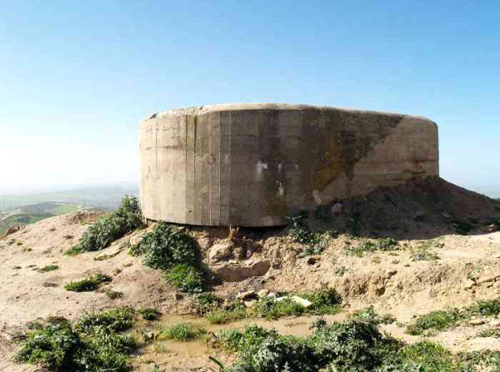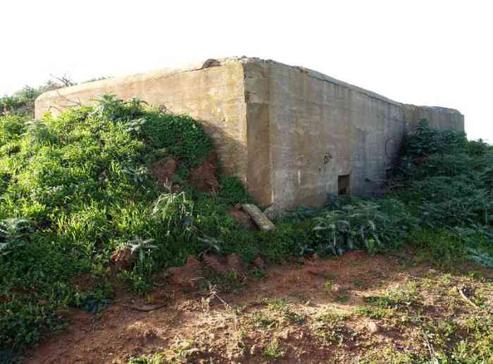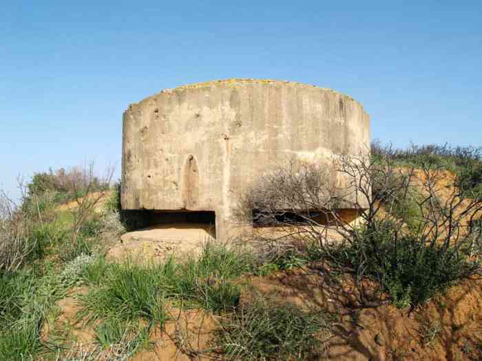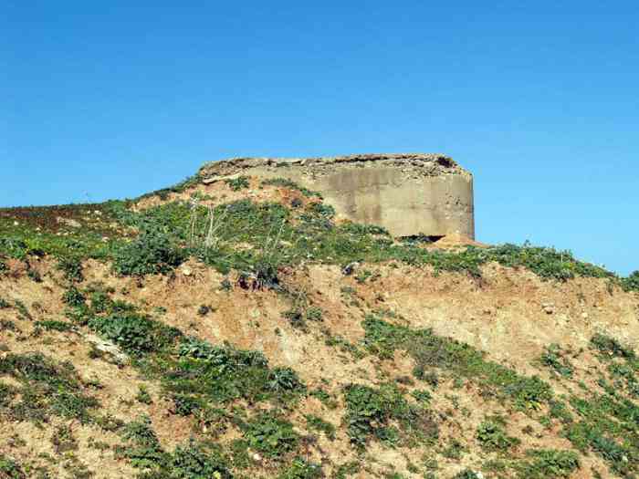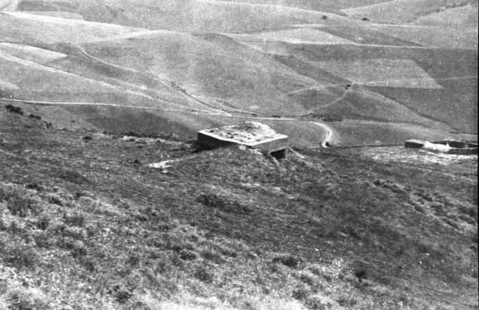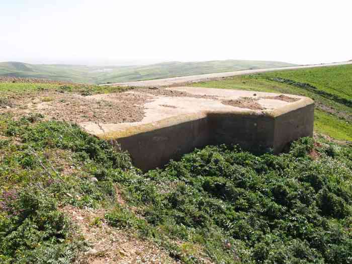 The Germans put up fairly serious resistance on this position during the fighting in 1943, and destroyed or damaged several of its elements before their surrender. A walk on this very windy ridge, on which a wind farm has moreover been installed, is most interesting. Almost all the installations are visible, many on private land, and some casemates are in very good condition, with the embrasure frames for machine guns in place. The gun platforms have disappeared.