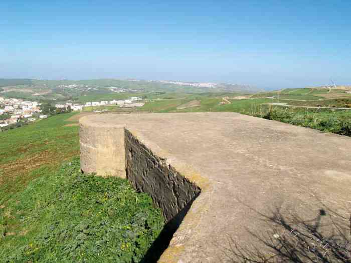Die Deutschen leisteten auf dieser Stellung während der Kämpfe von 1943 recht ernsthaften Widerstand und zerstörten oder beschädigten mehrere ihrer Elemente vor ihrer Kapitulation. Ein Spaziergang auf diesem sehr windigen Bergrücken, auf dem übrigens ein Windpark errichtet wurde, ist höchst interessant. Fast alle Anlagen sind sichtbar, viele davon auf Privatgelände, und einige Kasematten sind in sehr gutem Zustand, mit den Schartenrahmen für Maschinengewehre an Ort und Stelle. Die Geschützplattformen sind verschwunden.