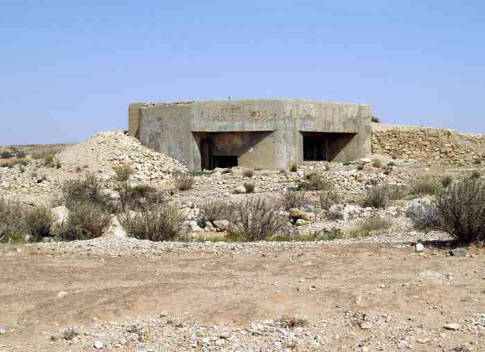 Mareth. Ce PA comprend : un PC de compagnie, deux casemates de flanquement simples pour GM, dont une accolée au PC, et deux casemates de flanquement pour canon de 75 M antichar, flanquant à droite et à gauche. Des consignes de tir et des inscriptions patriotiques, en français et en italien, cohabitent sur les murs. Tous ces éléments sont toujours visibles. Dieser SP umfasst: einen Kompaniegefechtsstand, zwei einfache Flankierungskasematten für MG-Gruppe, davon eine an den Gefechtsstand angebaut, und zwei Flankierungskasematten für 75-mm-Panzerabwehrkanone M, rechts und links flankierend. Feuerkommandos und patriotische Inschriften, auf Französisch und Italienisch, koexistieren an den Wänden. Alle diese Elemente sind noch sichtbar. Deze SP omvat: een compagniescommandopost, twee enkelvoudige flankeringskazematten voor GM, waarvan één aangebouwd tegen de commandopost, en twee flankeringskazematten voor 75 mm-antitankkanon M, rechts en links flankerend. Vuurcommando's en patriottische inscripties, in het Frans en Italiaans, leven naast elkaar op de muren. Al deze elementen zijn nog zichtbaar. This SP comprises: a company command post, two single flanking casemates for MG group, one of which attached to the command post, and two flanking casemates for 75 mm anti-tank gun M, flanking right and left. Fire instructions and patriotic inscriptions, in French and Italian, coexist on the walls. All these elements are still visible. Tento OB zahrnuje: rotní velitelské stanoviště, dvě jednoduché flankovací kasematy pro skupinu kulometů, z nichž jedna je přistavěna k velitelskému stanovišti, a dvě flankovací kasematy pro 75mm protitankový kanón M, flankující vpravo a vlevo. Palebné instrukce a vlastenecké nápisy, ve francouzštině a italštině, koexistují na stěnách. Všechny tyto prvky jsou stále viditelné. © JJM 05/03/2026