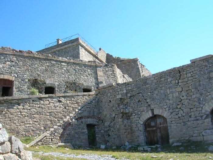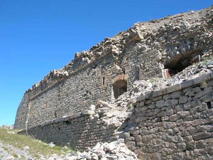 Fortress of Briançon, north-east of the town, 1876-1877. 2377 m alt. 210 men and 16 pieces. Fort rich in metallic remains. A cableway with mule traction. Experienced major ground stabilization problems during firing tests. It still bears the stigmas today, including in its powder magazine with offset cradle. Optical relay. Fort tiered on several levels offering very beautiful perspectives. The barracks is topped with a cavalier. Breathtaking landscapes. Open to all winds.