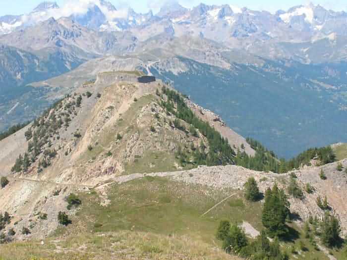 Pevnost Briançon, severovýchod města, 1876-1877. 2377 m alt. 210 mužů a 16 děl. Pevnost bohatá na kovové pozůstatky. Lanová dráha s mulím pohonem. Zažila velké problémy se stabilizací terénu během zkoušek střelby. Dodnes nese stigmata, včetně ve svém prachovém skladu s posunutou kolébkou. Optická stanice. Pevnost rozvrstvená na několika úrovních nabízející velmi krásné perspektivy. Kasárna jsou zakončena kavalírem. Dechberoucí krajiny. Otevřeno všem větrům.