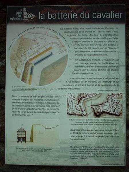 Fortress of Brest. Ironic and popular designation for a battery built in 1765 in the axis of the mouth of the Penfeld, but never armed, hence its name. Its foundations are currently occupied by a botanical garden called "Garden of the Explorers". Listed for information.