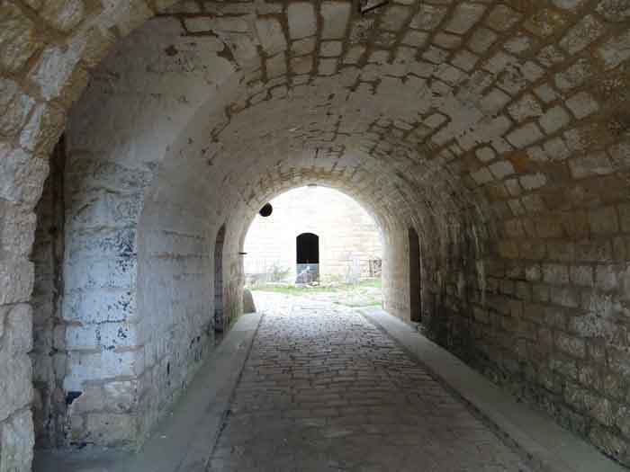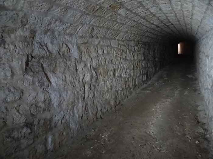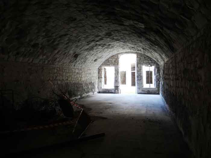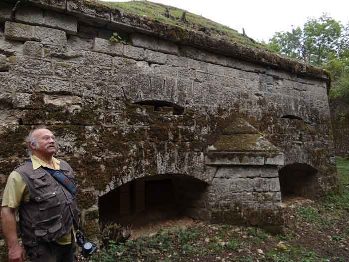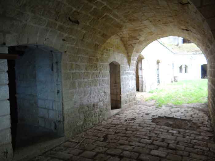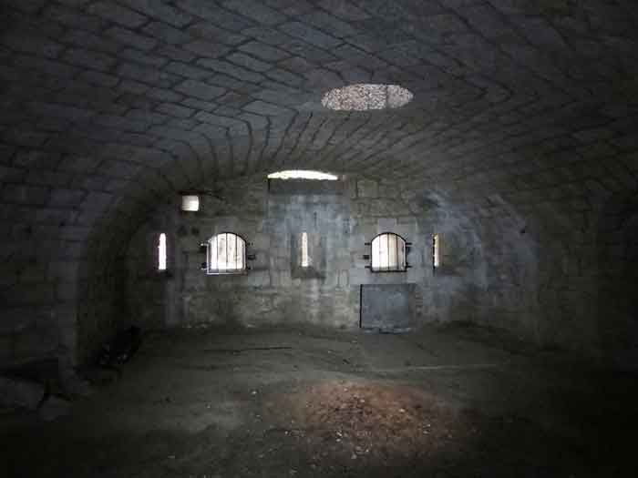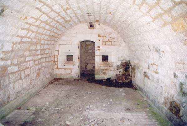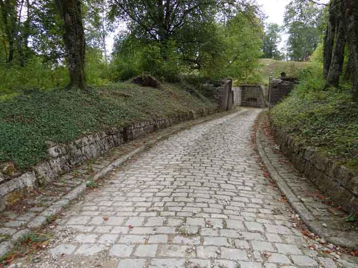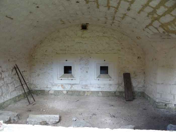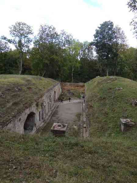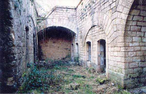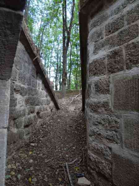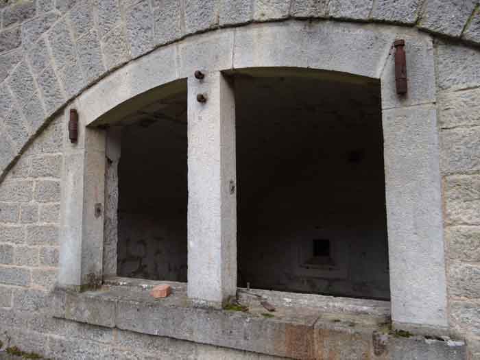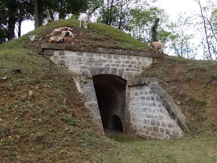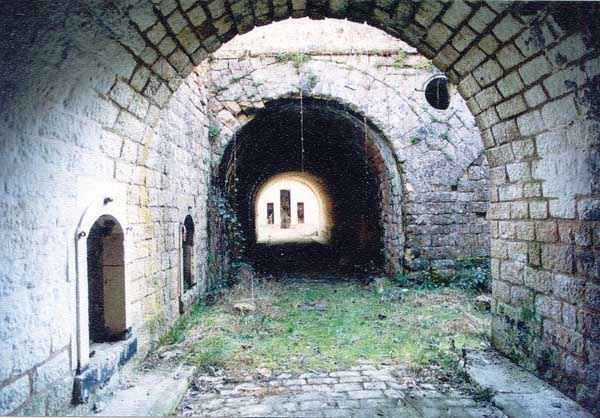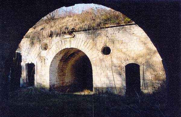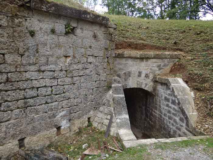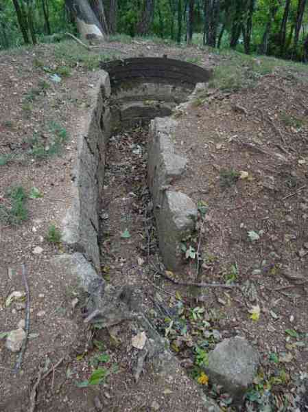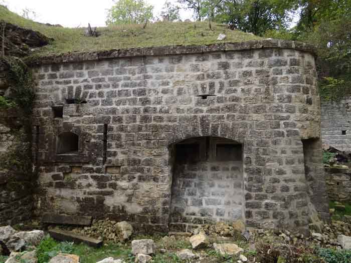 Defensive curtain of the Meuse heights, 1883-1885. 360 m/alt. Called fort Raoult. The southernmost structure of the curtain. Works 17 and 1 magazine under the scarp (walled). 535 men and 26 guns planned during construction. Before 1910, this armament had been reduced to 4 x 120 L, 3 x 90 mm, 3 x 12-breech cannons and 5 revolver cannons. After 1910, there were 2 x 120 L, 4 x 90 mm and the same armament for flanking. An infantry structure, surrounded by a shallow ditch, is attached to the fort. Most of the counterscarp railings are in place. Extremely rare flail bridge at the postern of the wing of salient III. The drawbridge bears, in relief, the inscription "PAINDAVOINE CONSTRUCTEUR". The fort contains beautiful masonry, especially the intrados of the vaults of the orillons of the caponiers and, more unexpectedly, the ceiling of the guardhouse of the counterscarp. To the extreme left of the artillery cavalier, we find a curious little observatory, very narrow, with a metal visor. Property of the municipality.