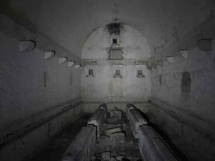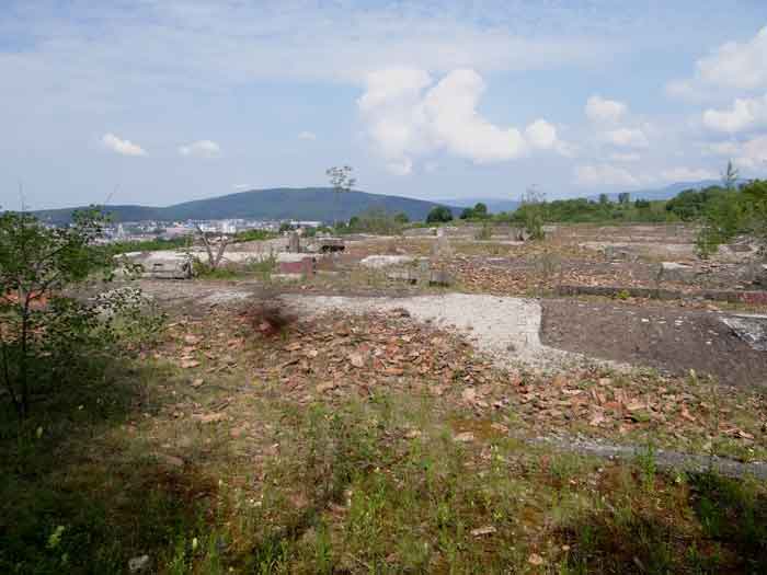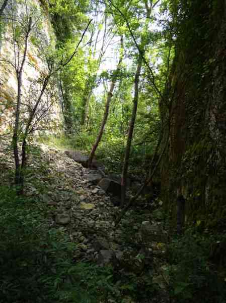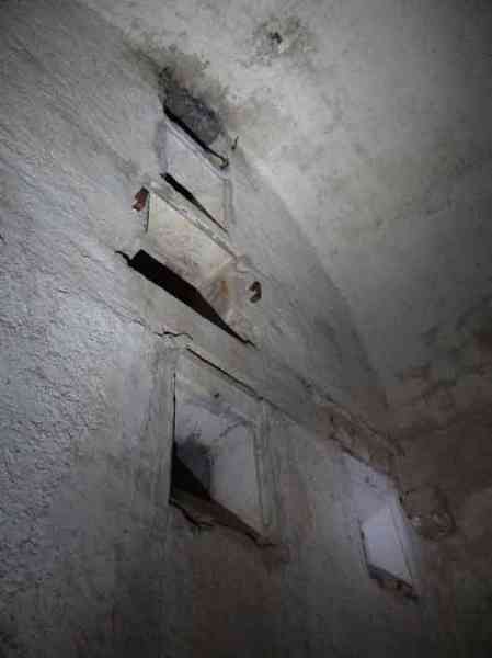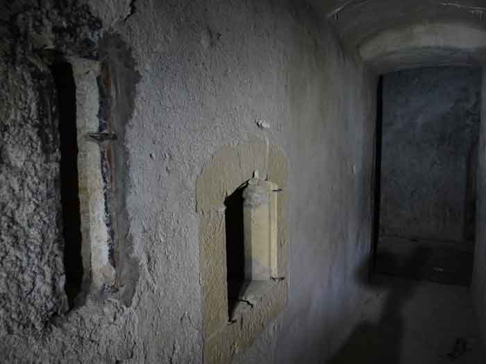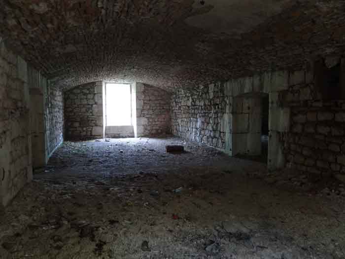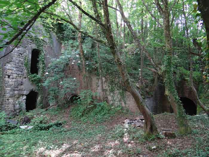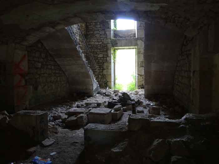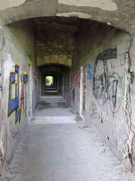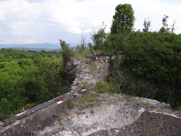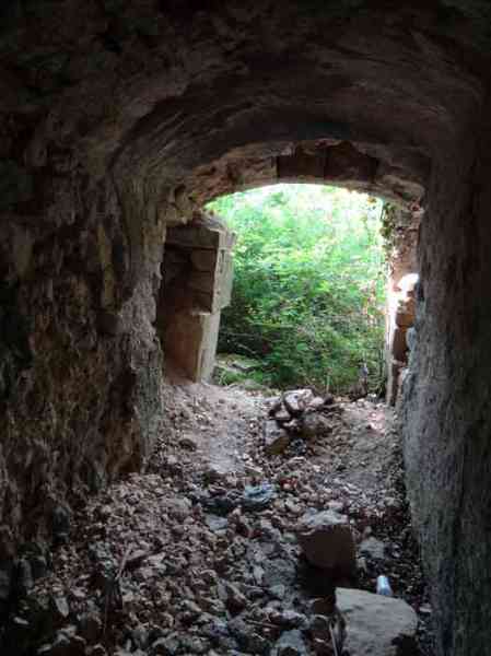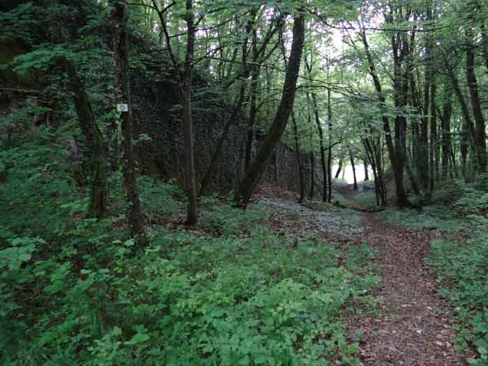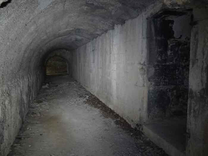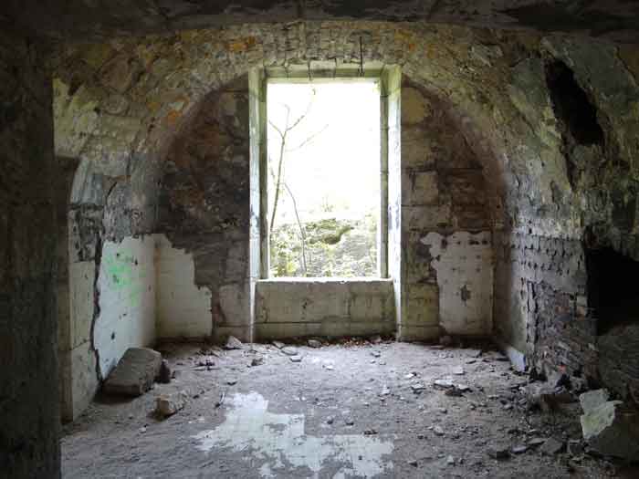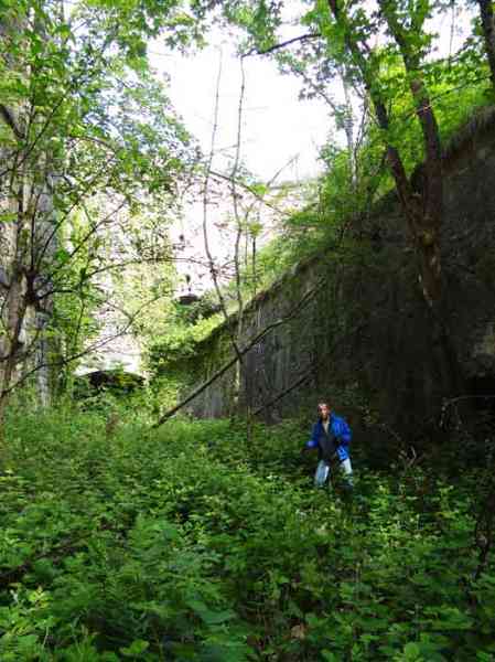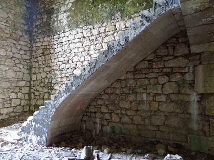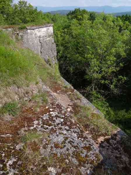 Belfort fortified camp, northeast of the city. 440 m/alt. Built between 1825 and 1842 with the Fort de la Miotte to which it is connected by the Vallon front. It was, in fact, an outgrowth of the city wall made necessary by the configuration of the terrain. This fort, part of the bastion system and with extremely tortuous contours since it followed the natural whims of the ridge supporting it, no longer had much value against rifled artillery. We did not have time to visit it, but we were assured that its powder magazine had, like that of the Fort de la Miotte, undergone transformations with the addition of one or more lamp battlements and lateral ducts. To its rear, no fewer than 2 (3?) central magazines will be built. See central stores in Belfort.