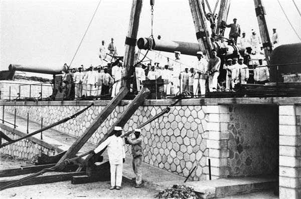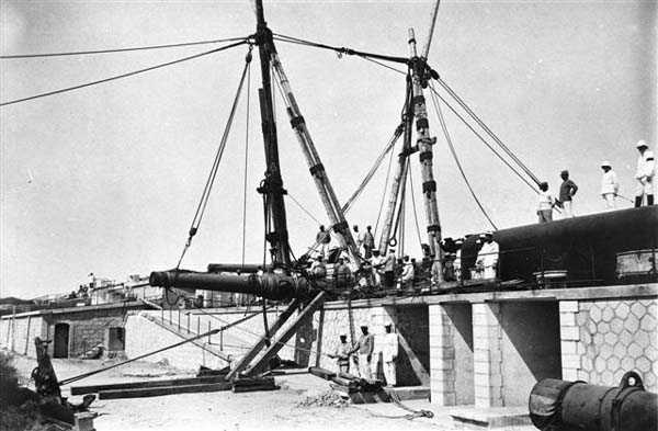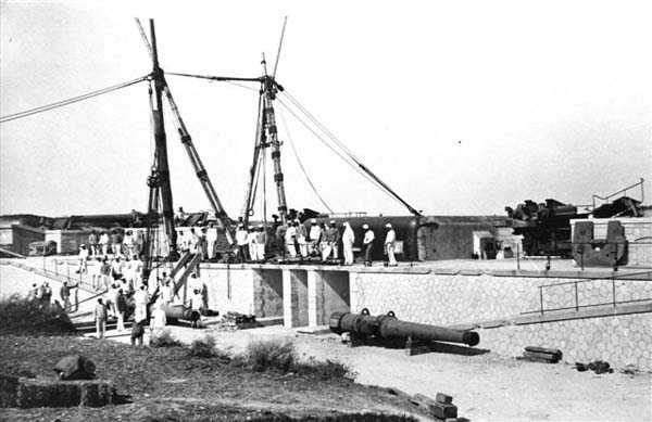 Bizerte. Established on Djebel Demna, at 186 meters altitude and 4 kilometers north of Bizerte, this battery is part of the 1898 program. It is a hybrid work, which includes, within an enclosure closed partly by a wall, partly by a defensive grill, a bombardment battery of 4 G guns 240 Mle 1884 on carriage G Mle 1890 PC, and an auxiliary battery of 4 G guns 95 Mle 1888 on carriage G Mle 1892. The front and the southern flank are protected by a ditch, flanked by a counterscarp coffre. The latter is not revetted. At the northwest corner, a redoubt, surrounded by a ditch flanked by 2 counterscarp coffres, houses the command post of the north group of the sea front artillery. The work has extensive quarters and a cavern magazine. It was modernized starting in 1904. It thus received a concrete combat shelter between pieces 2 and 3 of the 240s, carriages Mle 1904 for its 95 mm guns, and carriages Mle 1890-03 for its 240 mm guns. From early 1915, the 7th African Artillery Group, which armed the coast works, had to send a large part of its gunners to metropolitan France. They were replaced, in insufficient numbers, by territorials and auxiliaries. Their lack of training, added to the need for heavy artillery equipment for the front, would lead to the partial, then total disarmament of certain batteries. A ministerial dispatch of March 10, 1916, ordered the disarmament of the Saint-Jean, Aïn Roumi, Aïn Bittar and Chreck ben Chabane batteries. The 240 mm barrels of Saint-Jean were dismantled and shipped to metropolitan France on August 25 and 26, 1916. The battery was not rearmed between the two wars. In 1939, it combined the role of command post for the sea front artillery and command post for the north group. In the late 1950s, within the framework of the Cold War, a transmission center, protected under 40 meters of rock, was built beneath the work. Nowadays, the site, profoundly modified as satellite photos show, is inaccessible. In French documents, the work is called indifferently battery du Saint-Jean, de Saint-Jean or Saint-Jean. JJM 14/10/07