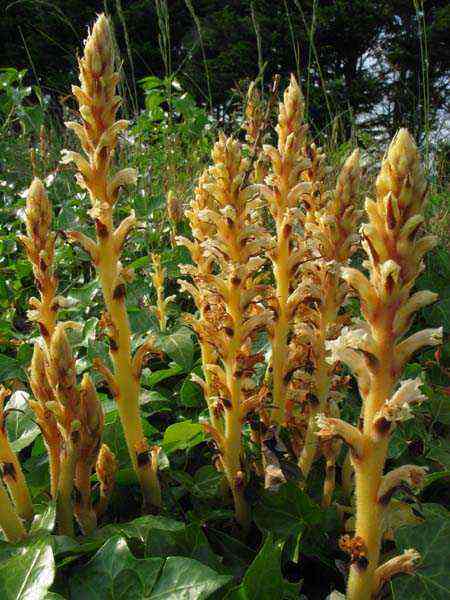 The yellow to yellow-green flowering group includes species with varied but convergent ecologies: adaptations to coastal, steppe or ruderal habitats and often specialised pollination strategies. From Verbascum nigrum and dune-spurges to Ferula, Pulicaria and the unusual Cytinus, these plants fulfil complementary roles—soil stabilization, nectar resources for specialist insects, or hemiparasitic habit in Orobanche and Cytinus. On the shore, Glaucium (horned poppy) exemplifies halophilous adaptation; in dry grassland and wasteland, broom, aconite and Inula populate thermophilous assemblages. Reliable assessment requires taxonomic references and field surveys to place each occurrence in its precise microhabitat.