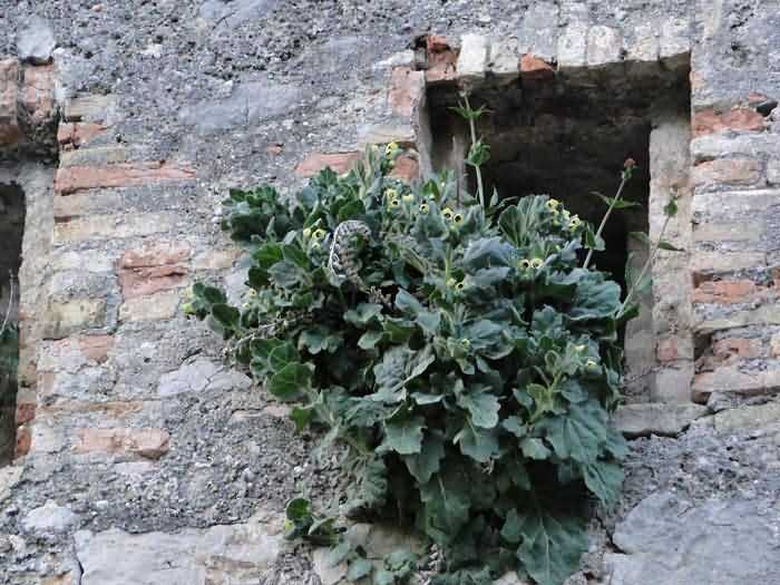 The yellow flowers of our military works and French coasts show remarkable diversity: Verbascum nigrum, Rhinanthus alectorolophus, Anagyris foetida, Hyoscyamus albus, Artemisia arborescens, Smyrnium olusatrum, Cytinus hypocistis, Genista linifolia, Genista umbellata, Eruca sativa, Nicotiana glauca, Draba aizoides, Ononis natrix, Ferula communis, Fumana ericoides, Medicago marina, Urospermum dalechampii, Gallium arenarium, Daphne laureola, Aconitum lycoctonum, Campanula thyrsoides, Tuberaria guttata, Oxalis pes-caprae, Inula salicina, Helichrysum foetidum, Lathyrus aphaca, Orobanche hederae, Pulicaria dysenterica, Ludwigia grandiflora, Carpobrotus edulis, Glaucium flavum, Hyoscyamus niger. Observed on forts and batteries of Toulon, Port-Cros, Cézembre and other sites, these species illustrate the richness of open and coastal habitats, some adapted to sandy soils, rocks or nutrient-rich substrates supplied by the sea or seabirds, demonstrating the coexistence of biodiversity with military structures.