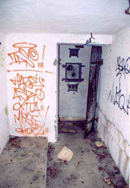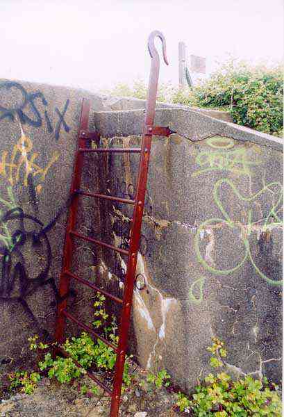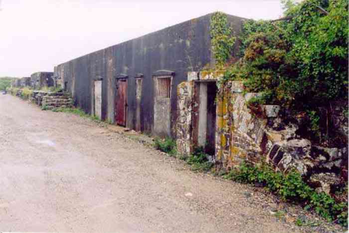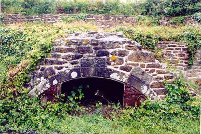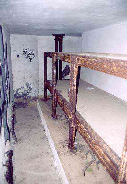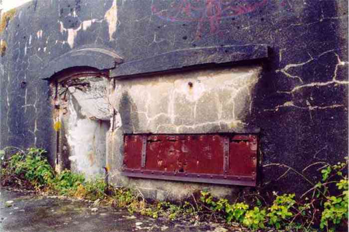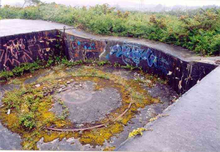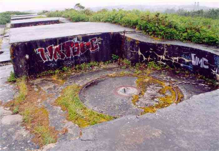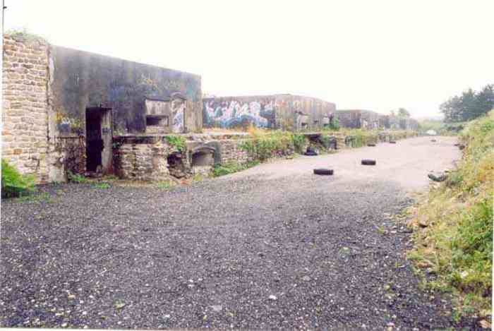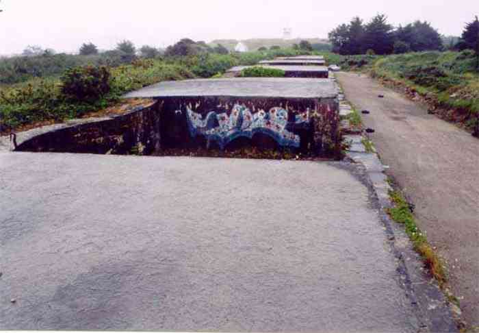Fortress of Lorient. Quiberon peninsula, 200 m north of Fort Saint-Julien. These are two concrete batteries, contiguous, aligned facing Quiberon Bay and built between 1895 and 1905. 4 x 24 cm guns and 4 others of 95 mm. Each 24 cm platform still has its ladder and many metal elements remain in the magazines (awfully tagged!). Behind the merlon serving as parados for the 24 cm battery, there is a small barracks. During our visit in May 2004, the municipality was constructing a building suggesting imminent closure of access to the batteries. See batteries of Saint-Julien.