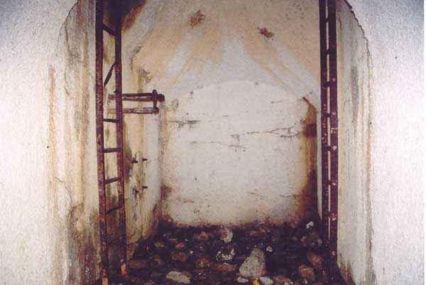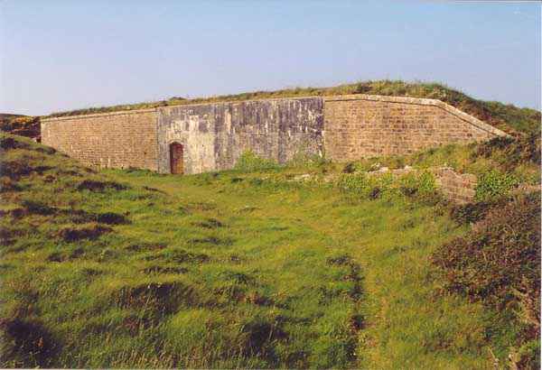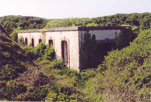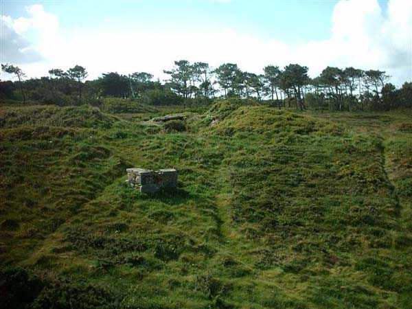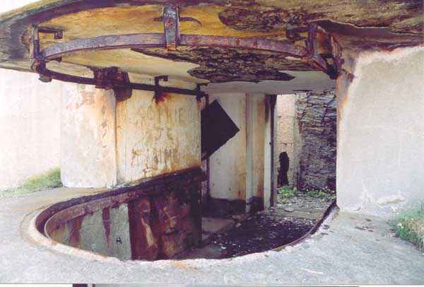 Fortress of Brest, Roscanvel peninsula, 1891. 60 m/alt. Located between the Pointe de Cornouaille to the north and the Capucins position to the south, it aligns four firing emplacements for 24 cm guns separated by hollow traverses, but whose shelters are of small dimensions, which is why some mention niches instead. The 4 M 24 cm guns model 1870-87 on M carriages model 1888 P.C are listed in the armament states of 1900 and 1914. A concrete projectile magazine was poured in 1899. Its storage room measures 8.3 m x 3 m with an airlock of 1.5 x 3 m. North of the battery, an underground magazine, excavated between 1890 and 1895, whose entrance is protected by a defile carved into the rock, is accessible by a staircase of 47 steps. The storage room measures 9.5 m x 4.5 m. Beyond the passage leading to the hoist, a room of 5 m x 3 m, with tables, is visible. It is the only one, along with that of the Capucins, to be equipped with this type of annex on the Roscanvel peninsula. Access to this magazine, which was becoming difficult due to vegetation, was reportedly cleared during 2006. Behind the firing positions, there is a kind of footbath, actually a cistern, about three by two meters and of little depth. We will find a second one at the Kerbonn battery. A high battery dating back to 1695, which could not be precisely located, is reported at 36 m above sea level. While searching for it, we encountered the inevitable complement of the power plant spotted south of the battery. Built against the cliff, from which it is separated only by a narrow path, a searchlight casemate faces the strait. If needed, or simply during the day, the searchlight could be withdrawn into a small room located on the right of the casemate. This searchlight casemate was poured in 1910-1911. It housed a 90 cm searchlight (firing lights). A little further south, and at a higher altitude, is a small concrete observation post that, because of the views it offers of the Capucins islet, must not be missed. This is the former rangefinder post converted into a searchlight command post. A group command post, very ruined, exists at the rear of the battery; the base of the signal mast located in front of it can still be seen. The battery will be disarmed before July 1915. The site, battery, underground magazine and searchlight, is completely freely accessible (12/2006). Let us mention for information that the Coastal Defense Commission planned here a guardhouse no. 3 and 4 guns. We do not know if this guardhouse was built but if so, we have not spotted its remains. In 1867, 2 rifled 30 cm guns and 2 smoothbore 22 cm howitzers were reported here.