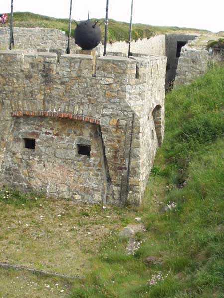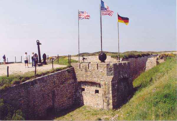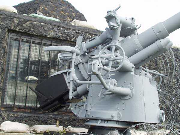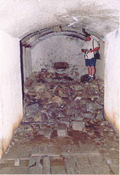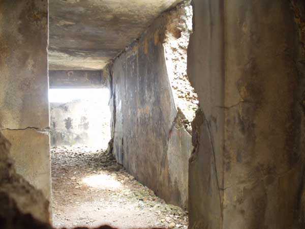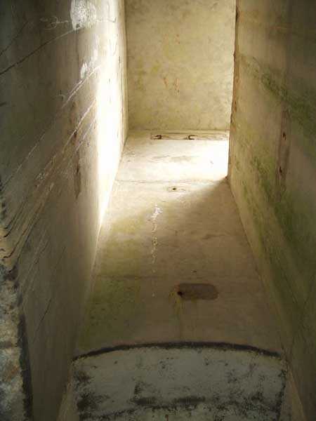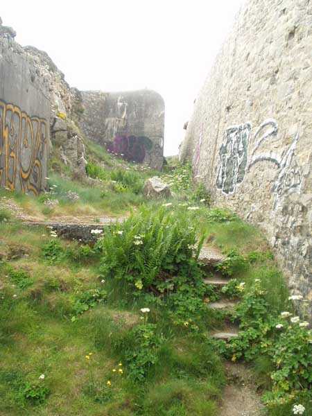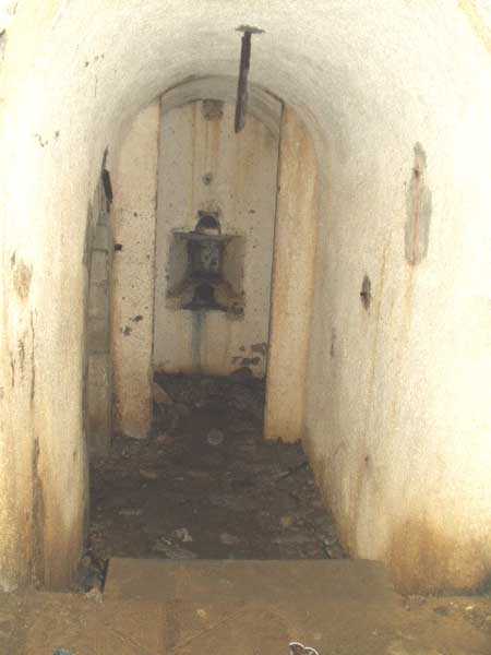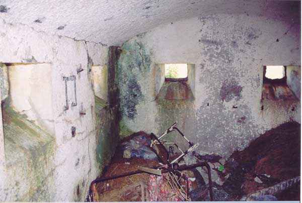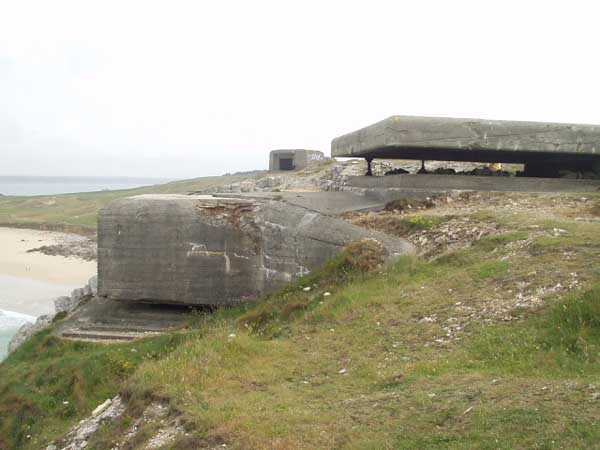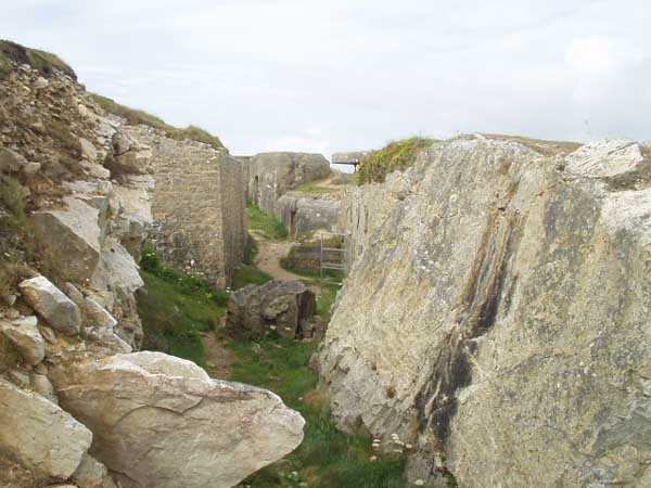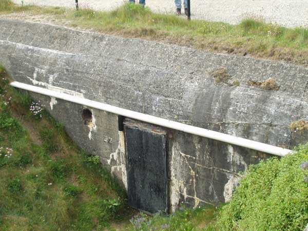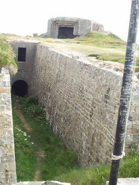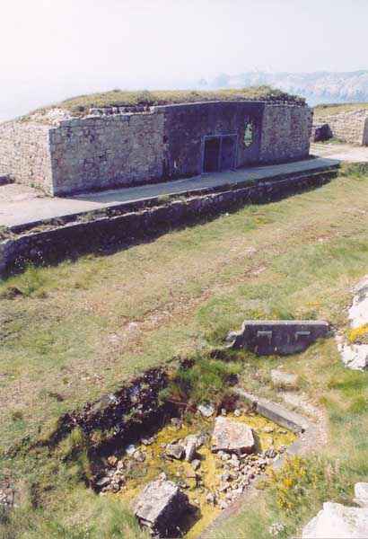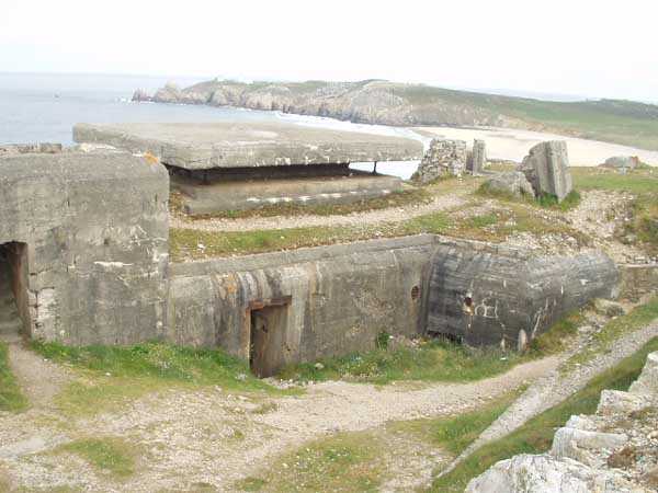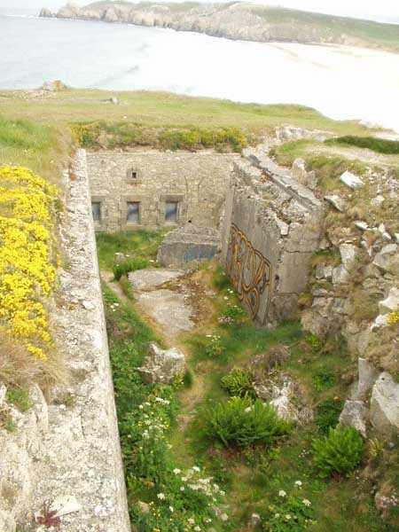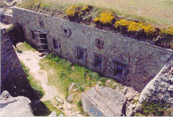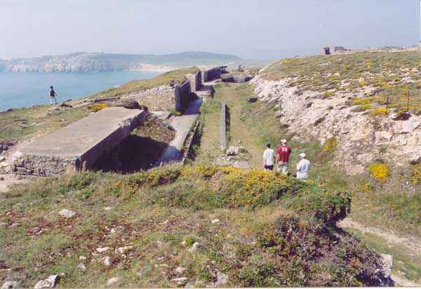 Fortress of Brest, Crozon peninsula, 1890-1891. 50 m/alt. Between the Pointe du Toulinguet to the north and the Pointe de Pen Hir to the south. Its 3 G mortars of 270 mm model 1889 on Vavasseur and Canet carriages are listed in the armament states of 1900 and 1914. An underground magazine, dug between 1890 and 1895, begins with a long tunnel parallel to the firing positions then, turning at a right angle towards the interval of the two northern pieces, leads to a lift shaft after a chicane in the hollow of which is a storage room of 4 x 4 m. The magazine, since its visit requires flashlights, has not suffered too much from the high tourist traffic of the site. Let us note however that the lift shaft would only have been built between 1903 and 1912. A curious construction, intermediate between a tower and a caponier, square, with three defensive faces and attached to the counterscarp, protected access to the underground magazine, itself located in what must have originally been the gorge ditch of the battery. Immediately behind the pieces, there is a pediluvium, actually a cistern, identical to that of the Kerviniou battery. One of the ammunition niches still shows the traces of the projectile bases. Let us also note that, during its sessions of 11/23/1912 and 05/03/1913, the Superior War Council considered the construction of a battery of 4 x 240 mm T.R. with long range in the vicinity of the Kerbonn battery, without follow-up before 1914. It is rare enough to mention, the 3 mortars will still be in place in 1933! The Lagatjar barracks, not far behind the battery, had been erected in 1899-1900. The Germans occupied the site and set up a very important position there. One of their casemates now houses the very interesting merchant navy memorial. The battery is freely accessible, except for the museum whose access fee (3 € - May 2003) is worth paying.