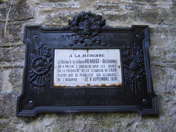 Citadela, zaujímající východní výběžek svědeckého návrší nesoucího opevněné město, jejíž počátky sahají do doby Jindřicha IV., stále hrdě zvedá své hradby. S malou rozlohou má pouze čtyři bastiony plus jeden půlbastion vložený mezi bastiony II a III. Přestavěná za Ludvíka Filipa, bylo jejímu čelnímu frontu proti hrdlu postaveno reversní galerie s boční palbou, k níž se přistupovalo přes kaponiéru překračující příkop a oddělenou od eskarpy pod pohyblivou mostovkou padacího mostu tamburem. Z reversní galerie vycházejí kolmo protiminové tunely, z nichž některé komunikují s podzemními lomy. Vstup byl upraven a jeho portál získal zalomení (jako v pevnosti Belin), aby se zabránilo palbě do boků. Dvě střelecké galerie byly upraveny v tloušťce hradby. První mezi bastiony I a II, seřazuje čtrnáct párů střílen plus další dvě přístupné z galerií starého podzemního lomu. Její palebné pole se omezuje na bezprostřední přístupy, svahy poskytují krytí až na několik metrů od paty hradby. Druhá, menší, zaujímá prostor mezi půlbastionem a bastionem III. Konečně, kasárna byla postavena (1842-1847) podle kritérií tehdejší doby, to znamená se třemi bočními trakty umístěnými kolmo na sedm centrálních, aby se celek zpevnil v případě bombardování. Kasárna tehdy měla tři úrovně; od té doby byla zvýšena o čtvrtou. Během 19. století byl instalován padací most typu Poncelet. Nedokázali jsme určit, zda se tak stalo před nebo po roce 1870. Nicméně zpráva z roku 1871 o událostech, které se staly v Laonu během invaze do departementu Aisne v roce 1870, uvádí, že okupant vše vyplenil, včetně řetězů padacího mostu. Dovolme si předpokládat, že nejvhodnější interpretací by bylo zmínit typické řetězy s články pro tento typ mostu. Od té doby by jeho instalace měla být před rokem 1840, což je více než možné, tento most byl poprvé popsán v roce 1822. Dne 9. září 1870, je dělostřeleckému strážci Dieudonné Henriotovi připisováno, že nechtěl vydat zásobu střelného prachu nepříteli. Generál Thérémin d'Hame obdržel z Paříže povolení se vzdát (musíme říci, že neměl ani lidské ani materiální prostředky k odporu), Prusové vstupující na místo, 26 tun prachárny instalované mezi bastionem II a půlbastionem vyletěly do povětří. Bilance, kromě Henriota, po kterém se nic nenašlo a který si s sebou odnesl pravdu o této události, byla 241 mrtvých a 160 zraněných na francouzské straně proti 30 mrtvým a 65 zraněným u Prusů. Nehoda nebo úmyslná vůle? Nikdy to nebude s jistotou určeno, ale uvažujeme-li druhou možnost, pravděpodobně by měl účty skládat svým spolubojovníkům před branami ráje… Citadela byla po této tragické události obnovena. V roce 1878, v úkrytu jejích hradeb, se ještě počítalo ne méně než 26 děl. Nový prachový sklad byl napůl pohřben ve středu nádvoří. Navenek je tento sklad docela ohromující. Je známo, že je udáván s kapacitou 100 tun, zatímco tři světelné a ventilační šachty lampové komory jsou vzdáleny pouze jedenáct metrů od osvětlení vstupní komory. Ve skutečnosti, uvnitř, skladovací prostor měří 26 x 7 m. Linie tří šachet se ve skutečnosti nachází přibližně v polovině délky, což klame oko, i zkušené, takový případ je nám jinde neznámý. Jeho kapacita může, absolutně, být zvýšena na 100 tun, ale pokud se budeme řídit předpisy, nemělo by tam překročit 80 tun. Všimněme si, že dva hromosvody jsou na místě, s hrotem ze železa a ne z mědi. Prachový sklad, střelecké galerie a kasárna jsou spojeny s galeriemi pro těžbu vápence, ale protože tyto vyúsťují při zemi, ochrana, kterou poskytují, se zdá být celkem relativní. Poterna, následovaná nádhernou klenbou kladenou na konvexních trompách, umožňuje přístup k této síti z šíjové kurtiny. Podle dekretu generála Boulangera budou kasárna citadely pojmenována kasárna Hédouville. Dnes citadela hostí městskou správu a zůstaly pouze dva traversy-úkryty. Její podzemní chodby, včetně prachového skladu a dlouhé střelecké galerie, mohou být navštíveny obrácením se na turistickou kancelář umístěnou vedle nádherné katedrály Notre Dame de Laon (12. století).