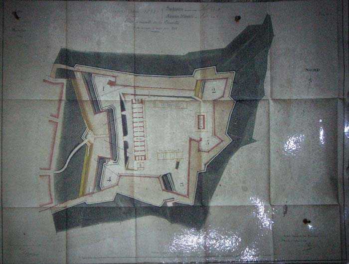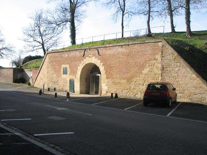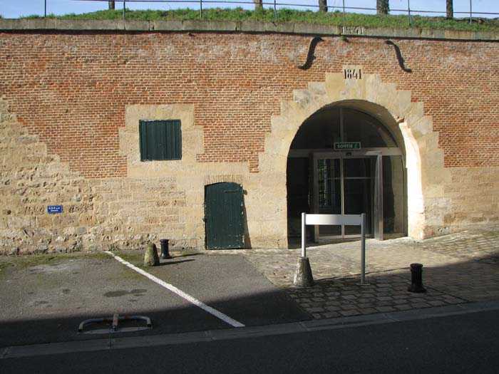 Occupying the eastern promontory of the witness hill supporting the walled town, the citadel, with origins under Henry IV, still proudly raises its ramparts. With little footprint, it has only four bastions plus a demi-bastion inserted between bastions II and III. Remodeled under Louis-Philippe, a reverse fire gallery was opposed to its gorge front, reached by a caponier crossing the ditch and separated from the scarp under the movable deck of the drawbridge by a drum. From the reverse fire gallery depart perpendicular countermine tunnels, some of which communicate with underground quarries. The entrance was modified and its porch featured a break (as at Fort Belin) to avoid enfilade fire. Two firing galleries were arranged within the thickness of the rampart. A first one between bastions I and II aligns fourteen pairs of loopholes plus two others accessible from the galleries of an old underground quarry. Its field of fire is limited to the immediate approaches, the slopes providing cover to within a few meters of the foot of the rampart. A second, smaller one, occupies the space between the demi-bastion and bastion III. Finally, the barracks were raised (1842-1847) according to the criteria of the era, meaning with the three lateral bays placed perpendicular to the seven central ones, to stiffen the whole in case of bombardment. The barracks then had three levels; since then, it has been raised by a fourth. During the 19th century, a Poncelet-type drawbridge was installed. We have not been able to determine if this was before or after 1870. Nevertheless, the 1871 report on the events that took place in Laon during the invasion of the Aisne department in 1870 specifies that the occupier looted everything, including the chains of the drawbridge. Let us assume that the most adequate interpretation would be to mention the typical shot chains of this type of bridge. Therefore, its installation would be prior to 1840, which is more than possible, this bridge having been described for the first time in 1822. On September 9, 1870, artillery guard Dieudonné Henriot is credited with having refused to deliver the powder reserve to the enemy. General Thérémin d'Hame having received authorization from Paris to surrender (it must be said that he had neither the human nor material means to resist), the Prussians entering the place, the 26 tons of the powder magazine installed between bastion II and the demi-bastion blew up. The toll, aside from Henriot of whom nothing was found and who took the truth of this event with him, was 241 dead and 160 wounded on the French side against 30 dead and 65 wounded for the Prussians. Accident or deliberate will? It will never be determined with certainty, but considering the second option, he probably would have had accounts to render to his comrades-in-arms before the gates of paradise… The citadel was restored after this tragic event. In 1878, sheltered by its ramparts, there were still no less than 26 cannons. A new powder magazine was half-buried in the center of the courtyard. Externally, this magazine is quite astounding. It is known to have a reported capacity of 100 tons, while the three light and ventilation shafts of the lamp room are only eleven meters distant from that of the entrance airlock lighting. In fact, inside, the storage room measures 26 x 7 m. The line of the three shafts is actually located approximately at mid-length which deceives the eye, even trained, so much is this case unknown to us elsewhere. Its capacity can, absolutely, be increased to 100 tons, but if one follows regulations, it should not exceed 80 tons. Note that the two lightning conductors are in place, with their point in iron and not copper. Powder magazine, firing galleries and barracks are connected to limestone exploitation galleries, but as the latter are flush with the ground, the protection they offer seems quite relative. A postern, followed by a superb half-vault appareled on convex trompes, allows access to this network from the gorge curtain. According to the decree of General Boulanger, the barracks of the citadel will be named Hédouville barracks. Today, the citadel houses the city administration and only two traverse-shelters remain. Its underground passages, including the powder magazine and the long firing gallery, can be visited by contacting the tourist office located next to the superb Notre Dame de Laon cathedral (12th century).