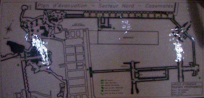 Die auf dem östlichen Vorsprung der Zeugenberg-Anhöhe gelegenen Zitadelle, die ihre Ursprünge unter Heinrich IV. hat, erhebt noch heute stolz ihre Wälle. Mit geringer Grundfläche verfügt sie nur über vier Bastionen plus einer Halbbastion, die zwischen den Bastionen II und III eingefügt ist. Unter Louis-Philippe umgestaltet, wurde ihrer Kehlfront eine Reversgallerie entgegengesetzt, die man über eine den Graben querende Kaponiere erreichte und die von der Eskarpe unter dem beweglichen Fahrbahn des Zugbrücke durch einen Tambour getrennt war. Von der Reversgallerie gehen senkrecht Minenstollen ab, von denen einige mit unterirdischen Steinbrüchen verbunden sind. Der Eingang wurde modifiziert und seine Vorhalle erhielt eine Knickung (wie im Fort Belin), um Enfiladefeuer zu vermeiden. Zwei Schießgallerien wurden in der Dicke des Walls eingerichtet. Eine erste zwischen den Bastionen I und II reiht vierzehn Paare von Schießscharten plus zwei weitere auf, die von den Gallerien eines alten unterirdischen Steinbruchs zugänglich sind. Ihr Schussfeld beschränkt sich auf die unmittelbaren Annäherungen, da die Hänge Deckung bis auf wenige Meter vom Fuß der Mauer bieten. Eine zweite, kleinere, besetzt den Raum zwischen der Halbbastion und der Bastion III. Schließlich wurde die Kaserne (1842-1847) nach den Kriterien der Zeit erbaut, das heißt mit den drei seitlichen Jochen senkrecht zu den sieben zentralen, um das Ganze im Falle eines Bombardements zu versteifen. Die Kaserne hatte damals drei Stockwerke; seitdem wurde sie um ein viertes aufgestockt. Im Laufe des 19. Jahrhunderts wurde eine Zugbrücke nach Poncelet-System installiert. Wir konnten nicht feststellen, ob dies vor oder nach 1870 geschah. Dennoch präzisiert der Bericht von 1871 über die Ereignisse in Laon während der Invasion des Departements Aisne im Jahr 1870, dass die Besatzer alles geplündert haben, einschließlich der Ketten der Zugbrücke. Nehmen wir an, dass die angemessenste Interpretation darin bestünde, die für diese Art von Brücke typischen Kettenglieder-Ketten zu erwähnen. Daher wäre ihre Installation vor 1840 erfolgt, was mehr als möglich ist, da diese Brücke erstmals 1822 beschrieben wurde. Am 9. September 1870 wird dem Artilleriewächter Dieudonné Henriot nachgesagt, die Pulverreserve nicht dem Feind übergeben zu wollen. Da General Thérémin d'Hame aus Paris die Erlaubnis zur Kapitulation erhalten hatte (man muss sagen, dass er weder die menschlichen noch die materiellen Mittel zum Widerstand hatte), und die Preußen in die Festung eindrangen, explodierten die 26 Tonnen der zwischen Bastion II und der Halbbastion installierten Pulverkammer. Die Bilanz, abgesehen von Henriot, von dem nichts gefunden wurde und der die Wahrheit über dieses Ereignis mit sich nahm, betrug 241 Tote und 160 Verwundete auf französischer Seite gegenüber 30 Toten und 65 Verwundeten bei den Preußen. Unfall oder absichtliche Handlung? Man wird es nie mit Sicherheit bestimmen, aber wenn man die zweite Option in Betracht zieht, hätte er wahrscheinlich vor den Toren des Paradieses seinen Waffengefährten Rechenschaft ablegen müssen… Die Zitadelle wurde nach diesem tragischen Ereignis restauriert. 1878 zählte man im Schutz ihrer Wälle noch nicht weniger als 26 Kanonen. Ein neues Pulvermagazin wurde halb im Hofzentrum vergraben. Äußerlich ist dieses Magazin ziemlich verblüffend. Es ist mit einer Kapazität von 100 Tonnen angegeben, während die drei Licht- und Belüftungsschächte der Lampenkammer nur elf Meter von dem des Eingangsschleusenbeleuchtung entfernt sind. Tatsächlich misst der Lagerraum innen 26 x 7 m. Die Linie der drei Schächte befindet sich tatsächlich ungefähr auf halber Länge, was das Auge täuscht, selbst das geübte, da dieser Fall uns anderswo unbekannt ist. Seine Kapazität kann absolut auf 100 Tonnen erhöht werden, aber wenn man den Vorschriften folgt, sollte sie 80 Tonnen nicht überschreiten. Beachten Sie, dass die beiden Blitzableiter vorhanden sind, mit ihrer Spitze aus Eisen und nicht aus Kupfer. Pulvermagazin, Schießgallerien und Kaserne sind mit Kalkstein-Abbaugallerien verbunden, aber da letztere den Boden berühren, scheint der Schutz, den sie bieten, relativ gering. Eine Poterne, gefolgt von einem superb gearbeiteten Halbgewölbe auf konvexen Trompen, ermöglicht den Zugang zu diesem Netz von der Kehlkurtine aus. Gemäß dem Dekret von General Boulanger wird die Kaserne der Zitadelle den Namen Kaserne Hédouville tragen. Heute beherbergt die Zitadelle die Stadtverwaltung und es bleiben nur zwei Traversen-Schutzräume. Ihre unterirdischen Gänge, einschließlich des Pulvermagazins und der langen Schießgallerie, können besichtigt werden, indem man sich an das Tourismusbüro wendet, das neben der superben Kathedrale Notre Dame de Laon (12. Jahrhundert) angesiedelt ist.