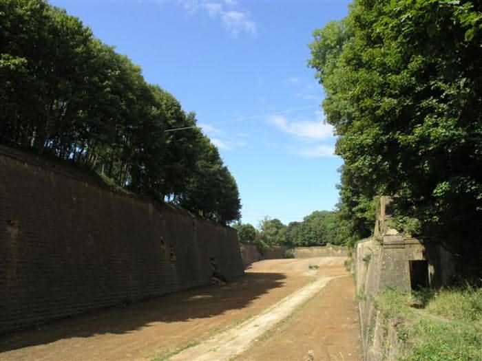 North of department 54 (Meurthe-et-Moselle), fortress of Longwy. The curtain II–III, linking the Bastions Notre-Dame and Saint-Martin, formed a strategic section of Vauban’s bastioned enceinte. It ensured defensive continuity by allowing crossfire between the two bastions and by covering the ditch with flanking fire. Like all curtains, its role was both to connect and to protect, creating a homogeneous line that was difficult to breach. After 1871, the development of artillery and the construction of the detached forts of the Séré de Rivières system shifted the line of active defense, yet this curtain retained tactical and historical value, illustrating the robustness and geometric logic of Longwy’s bastioned design.