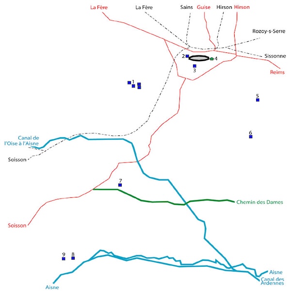 Cité dans : Zitiert in : Geciteerd in: Cited in: Citováno v: Soissons (place de), Festieux (fort de), Laon (citadelle de), Laniscourt (fort de), Montbérault (fort de), La Fère (place de), La Fère - Laon - Soissons (position défensive de), Saint-Erme (fort de), Amiens (place d'), Mont-de-Joie (fort du), Bruyères (batterie de), Condé-sur-Aisne (fort de), Malmaison (fort de la)