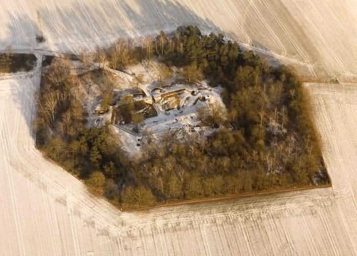 Verdun fortified camp, south-southeast of the city, 1906. ± 230 m alt. 1 75 turret, 1 machine gun turret and 3 armored observation posts. Small modern structure, in concrete, for the ditches of which the famous triangular profile was adopted. The whole takes the form of an irregular hexagon. The entrance is clad with two imposing monoliths with a chicane entrance and defending the main access. The structure itself is quite small. A capital entrance opens onto a circulation corridor serving two large barracks, two others for officers and non-commissioned officers, as well as the necessary premises and stores. To the right, the corridor ends with the particularly deep shaft of the machine gun turret and, to the left, access is provided to the substructures of turret 75. A small diverticulum, 57 cm wide and about fifteen meters long, leads to the command observatory, an observatory close to the center of the I-II front. The machine gun turret has a splendid panorama of firing painted under the voussoirs. Two staircases lead to an infantry exit on the top of the barracks. Two shafts provide access to the basements. In one, there are riveted cisterns, installed during construction and, in the other, one can see a curious device supplying (hot?) air to the ventilation ducts. Finally, to the right of the entrance, one can still see an observation sentry box. Privately owned, the structure is in fairly good condition, as are its armor (05/2006). Found spelled "La Falouze".