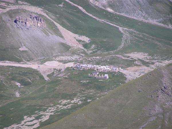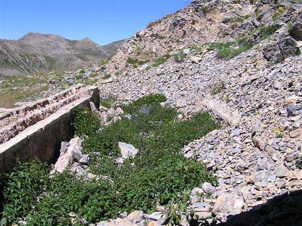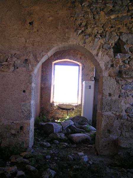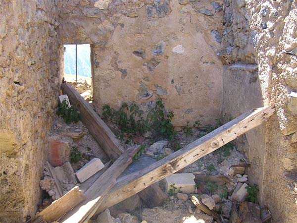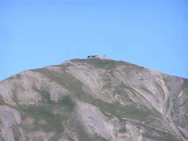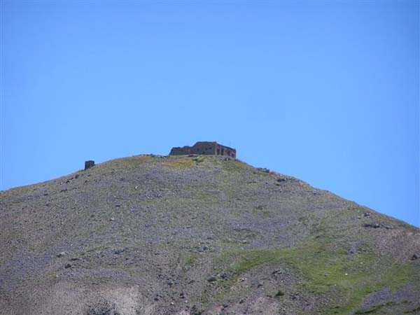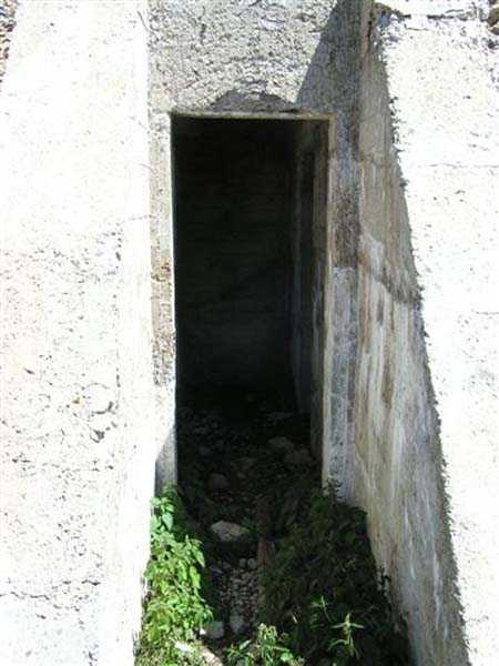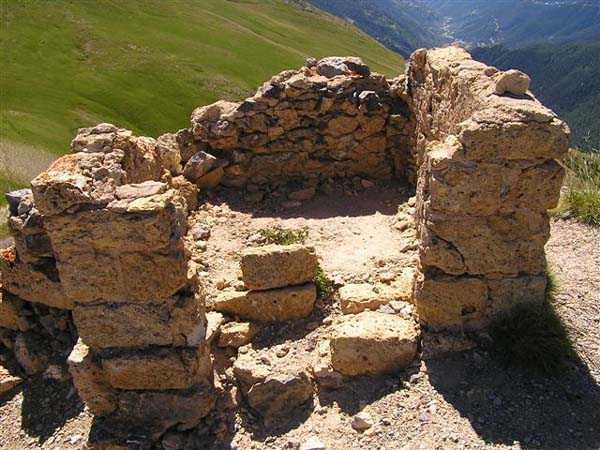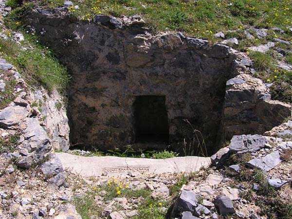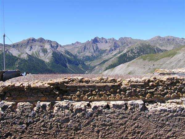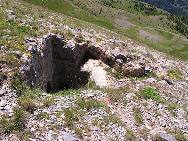 South-east of the fortress of Tournoux, 1902-1903. 2384 m/alt. Established at the summit of Mont Vinaigre, hence its other name "battery of Tête de Vinaigre" –although no gun emplacement is detectable in situ, nor moreover does the building seem to include an artillery magazine - it monitored the sources of the Tinée. It is a monoblock structure, with approximate dimensions of 12 x 8 m, comprising two chambers, a kitchen and a magazine, all for 25 men. The north wall is crenellated. It occupies such a position that optical communications were possible towards the neighboring works which are the blockhouse of Mont des Fourches and the small fort of Pelousette. The side exposed to north-east is protected by a massif of rocky debris. The roof was an arranged terrace from where the views were remarkable. In his monumental work "La barrière de fer" (see bibliography), Lieutenant-Colonel Truttmann mentions there the presence of a remnant of a Choumara stove. Today (07/2007), nothing more is visible of it therefore, either it was destroyed during the recent establishment of a radio relay, or, more probably, it lies under a heap of rubble in the rear corridor. We will note the presence, aside, of latrines having the particularity of being placed on the expected side of attack…; as well as the outline of an alpine shelter called "abri Adrian" dating from 1939 and located on the reverse slope 100 m below the blockhouse on the south slope. The windows and doors of the blockhouse are now provided with bars. It deteriorates little by little through the winters.