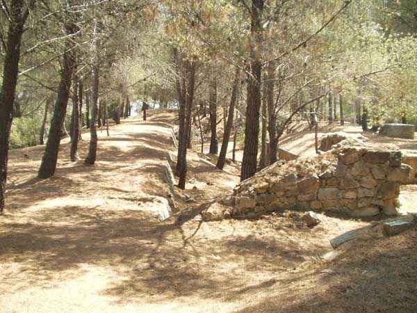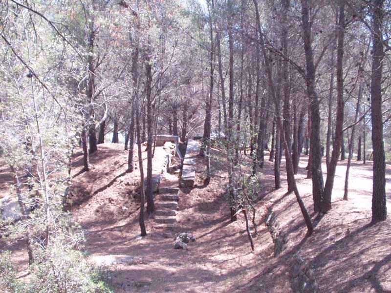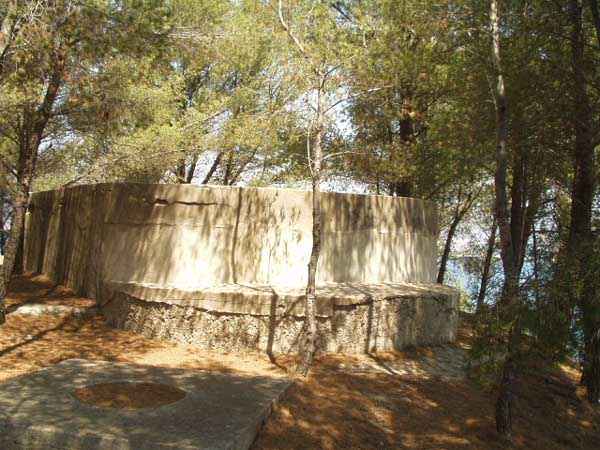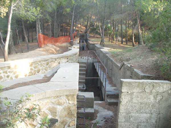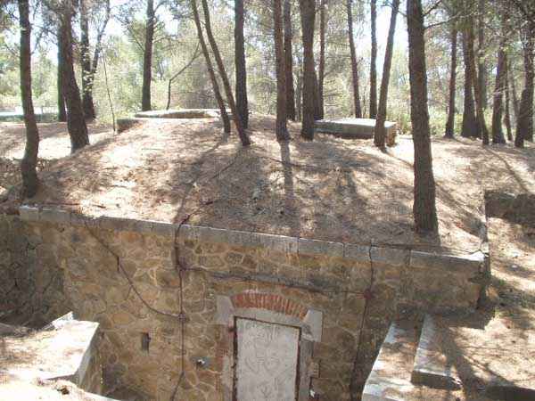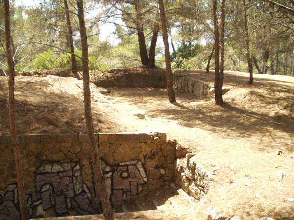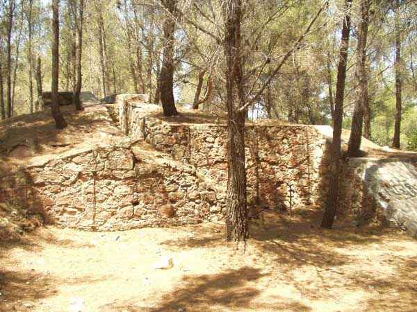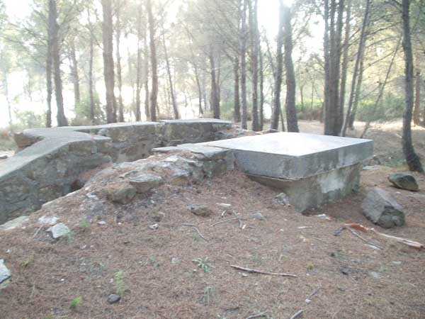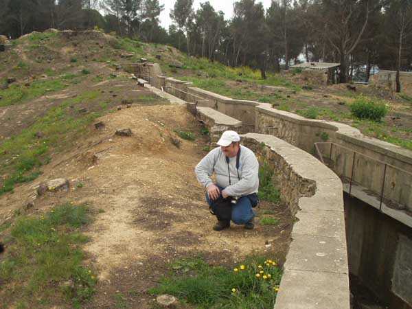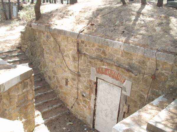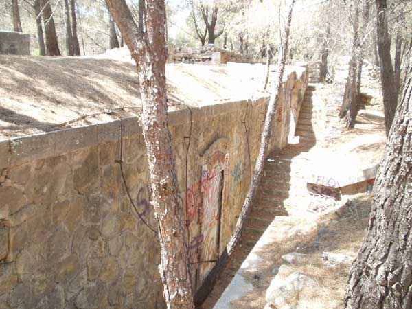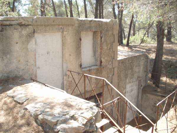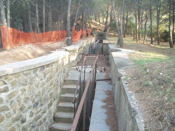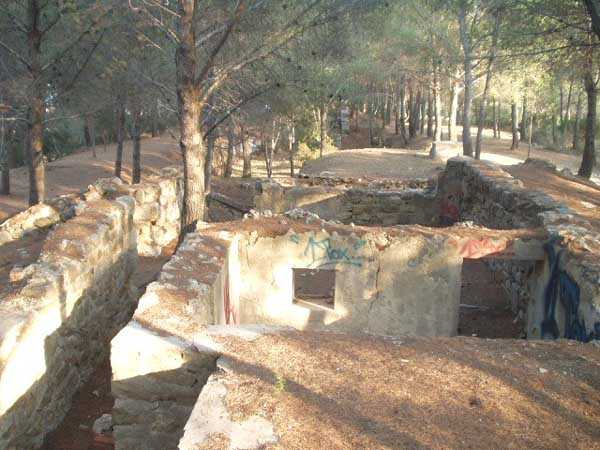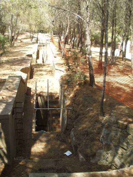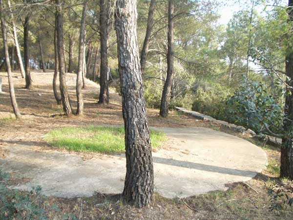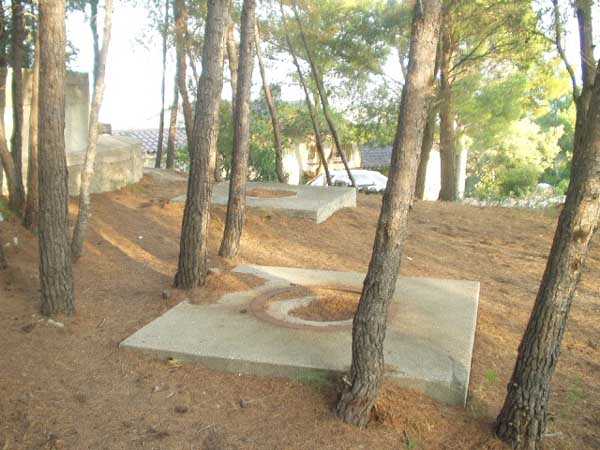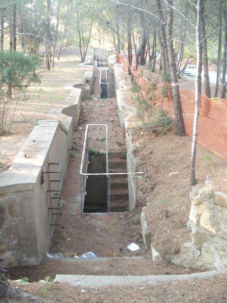 Fortress of Toulon, south of the city. 106 m/alt. Peninsula of Saint-Mandrier, west of the Creux Saint-Georges. The position was occupied from 1861 and armed in 1869. Reorganized in 1880-1882, it then appeared as two batteries with dual capability, firing at will either to the open sea or to the roadstead. A source mentions there 4 guns 24 c and 4 others 19 c. The guns, on P.C. carriage, are separated by hollow traverses connected to the north by a long concreted and buried magazine. The two batteries, seen from the sky, are arranged along a northwest-southeast axis and are slightly offset. Between the two batteries, a small barracks with three bays was built, opening onto a courtyard which has access to each of the batteries. Opposite the barracks is a powder magazine, probably of the Mle 1879. In 1901-1902, between the barracks and the southeast battery, a battery for 4 guns of 95 mm was set up, also with dual capability. Let us note that there is no defensive perimeter here. The two outer batteries will receive in the Interwar period guns of 164.7 mm. The northwest battery would suffer from the bombardments of 1944. In August 2005, a fire came to lick the roof of the (inhabited) barracks, which miraculously escaped the worst. This fire spared the pine forests of the two outer batteries, but completely cleared the vegetation from the 95 mm battery. The whole is sometimes cited under the generic term "batteries of the Lazaret". Very interesting ensemble and, except for the barracks and the powder magazine, freely accessible (04/2006). The geographical coordinates above indicate the location of the northwest battery.