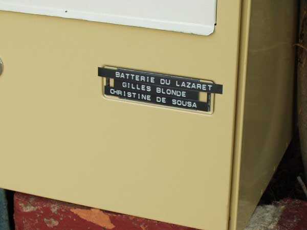 Festung von Toulon, Süden der Stadt. 106 M/ü M. Halbinsel von Saint-Mandrier, westlich des Creux Saint-Georges. Die Position wurde ab 1861 besetzt und 1869 bewaffnet. Reorganisiert 1880-1882, erschien sie fortan als zwei Batterien mit doppelter Bestreichung, die nach Belieben entweder die offene See oder die Reede bestreichen konnten. Eine Quelle erwähnt dort 4 Kanonen 24 c und 4 andere 19 c. Die Kanonen, auf P.C. Lafette, sind durch Hohltraversen getrennt, die im Norden durch ein langes betoniertes und eingegrabenes Magazin verbunden sind. Die zwei Batterien, aus der Luft gesehen, sind entlang einer Nordwest-Südost-Achse angeordnet und sind leicht versetzt. Zwischen den zwei Batterien wurde eine kleine Kaserne mit drei Jochen gebaut, die auf einen Hof hinausgeht, welcher einen Zugang zu jeder der Batterien besitzt. Gegenüber der Kaserne befindet sich ein Pulvermagazin, wahrscheinlich vom Mle 1879. 1901-1902, zwischen der Kaserne und der Südost-Batterie, wurde eine Batterie für 4 Kanonen 95 mm eingerichtet, ebenfalls mit doppelter Bestreichung. Wir bemerken, dass es hier keinen defensiven Umfang gibt. Die zwei äußeren Batterien werden in der Zwischenkriegszeit Kanonen 164,7 mm erhalten. Die Nordwest-Batterie wird unter den Bombardements von 1944 zu leiden haben. Im August 2005 kam ein Feuer, das das Dach der (bewohnten) Kaserne streifte, die wie durch ein Wunder dem Schlimmsten entging. Dieses Feuer verschonte die Pinienwälder der zwei äußeren Batterien, räumte aber die Batterie 95 mm vollständig von der Vegetation frei. Das Ganze wird manchmal unter dem generischen Begriff "Batterien des Lazaret" zitiert. Sehr interessantes Ensemble und, außer der Kaserne und dem Pulvermagazin, frei zugänglich (04/2006). Die oben angegebenen geografischen Koordinaten geben den Standort der Nordwest-Batterie an.