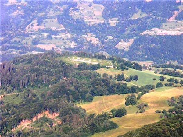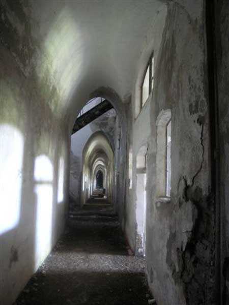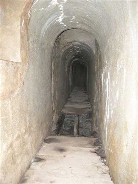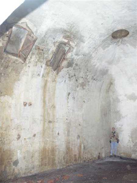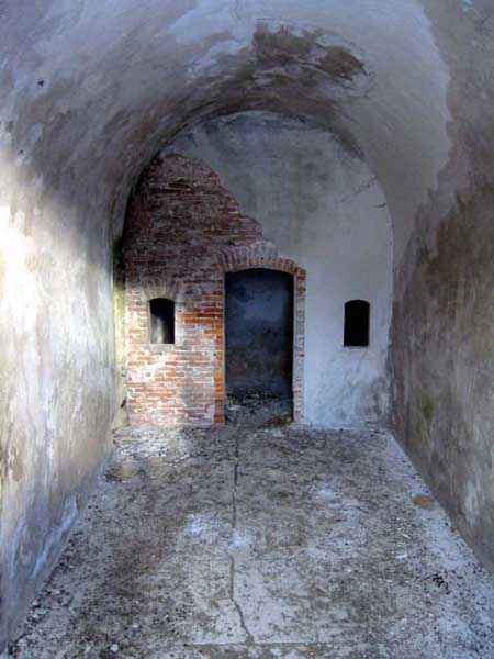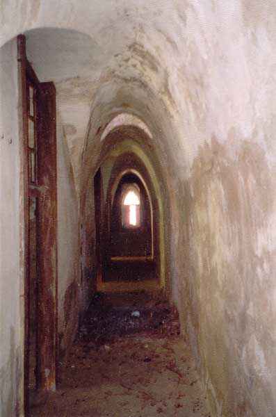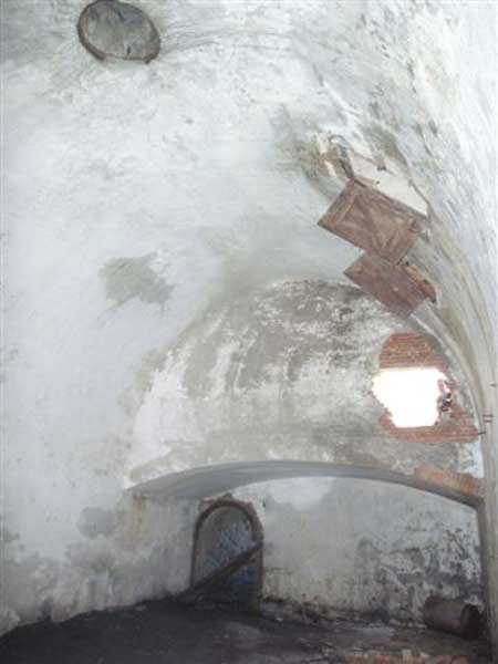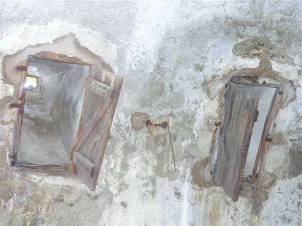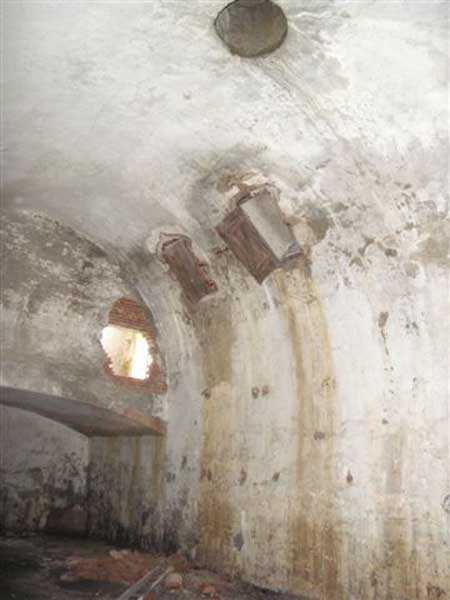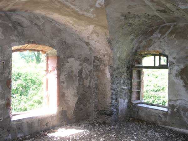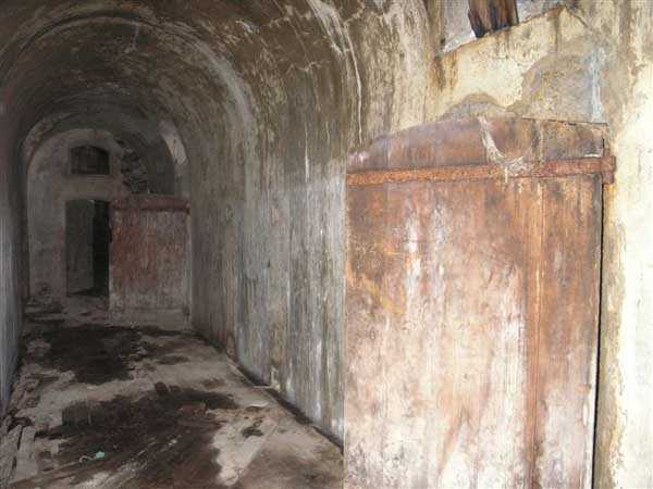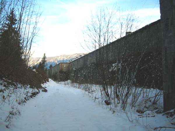 Fortress of Albertville, north of the city, 1875-1881. 790 m/alt. 603 men, 40 guns including 6 mortars and 8 flanking guns. Named Fort Épernon. Barrier fort, with cavalier, dominating the town of Ugine, itself located at the confluence of the Arly and the Chaise. Two of the five fronts possess a curtain wall, including the head front defended by two small coffers whose access shaft opens into the circulation corridor behind the quarters. The counterscarp of this sole head front is in relieving arches, arches whose hollows are more pronounced at the level of the curtain wall. The perimeter is defended by a double caponier, two flanking walls and two scarp galleries. All these defensive organs have two storeys of fire except for the coffers of the curtain wall of front III-IV. The entrance possessed a drawbridge with bascule underneath and assisted movement. A first barracks is located in the hollow of the gorge curtain wall, but slightly set back so as to leave two small courtyards on its fronts. Once past the entrance porch, on the left is a room, a powder magazine or rather a loading workshop whose vault is situated very high and fitted with two shutters which must have been quite complicated to operate given their high position. A traverse shelter surmounts this room and a lamp embrasure was fitted in the flank of this traverse to illuminate, very weakly, the immense room. The large central courtyard has a steep slope and it must not have been convenient to hold exercises or even simple gatherings there. As in the other forts of the place, the walls are built in rubble masonry, but the outlines of the doors and windows are in baked clay bricks. This association makes this fort quite pretty and the numerous remains of fittings with markings are an additional attraction. Two powder magazines are joined along their length, but the one on the right, although in every way identical to its neighbor, was annotated: magazine for fabricated ammunition. They both possess three lamp embrasures, the central one being situated higher than its neighbors. A capacity of 70 tons of powder was required for this fort. Very curiously, a room (± 8 x 3 m) whose function escapes us is accessible only through the lamp room, which room has retained its wooden floor. Three of the traverse shelters of the artillery cavalier were connected to the rear of the barracks and the artillery magazines by stairs and, for the central traverse, by a hoist stripped to the last bolt. Another peculiarity, the traverse shelter of the south front has a trapdoor in the floor of its abutment. This trapdoor gives access to a lamp embrasure which illuminates a small magazine located under the said traverse. Finally, the officers' latrines should delight enthusiasts of the genre with their seats, but especially with their singular pump flush system of which interesting vestiges remain. For the photographer, this fort offers beautiful possibilities for shots with very interesting light effects (to visit in fine weather in the afternoon). Sometimes spelled "l'Estal" and even "Lestale". General good condition. Private property, but abandoned (06/2006).