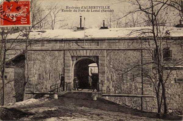 Place d'Albertville, nord de la ville, 1875-1881. 790 m/alt. 603 hommes, 40 pièces dont 6 mortiers et 8 de flanquement. Dénommé fort Épernon. Fort d'interdiction, à cavalier, dominant la ville d'Ugine, elle-même située au confluent de l'Arly et de la Chaise. Deux des cinq fronts possèdent une courtine, dont celui de tête défendu par deux petits coffres dont la gaine d’accès s’ouvre dans le couloir de circulation à l’arrière des chambrées. La contrescarpe de ce seul front de tête est en arceaux en décharge, arceaux dont les creux sont plus prononcés à hauteur de la courtine. Le périmètre est défendu par une caponnière double, deux ailerons et deux coffres d’escarpe. Tous ces organes de défense possèdent deux étages de feux à l’exception des coffres de la courtine du front III-IV. L’entrée possédait un pont-levis à bascule en dessous à mouvement assisté. Un premier casernement se situe au creux de la courtine de la gorge, mais légèrement en retrait de façon à ménager deux petites cours sur ses devants. Une fois passé le porche d’entrée, sur la gauche se trouve un local, poudrière ou plutôt atelier de chargement dont la voûte est située très haut et pourvue de deux volets qu’il devait être bien compliqué de manœuvrer vu leur situation en hauteur. Une traverse-abri surmonte ce local et un créneau à lampe était ménagé dans le flanc de cette traverse pour éclairer, très faiblement, l’immense local. La grande cour centrale accuse une forte pente et il ne devait pas être commode d’y faire des exercices ou même de simples rassemblements. Comme dans les autres forts de la place, les murs sont élevés en maçonneries de moellons, mais les contours des portes et fenêtres sont en briques de terre cuite. Cette association rend ce fort assez joli et les nombreux restes de huisseries avec marquages sont un attrait supplémentaire. Deux magasins à poudre sont accolés sur leur longueur, mais celui de droite, bien qu’en tous points identique à son voisin était annoté : magasin aux munitions confectionnées. Ils possèdent tous deux trois créneaux à lampe dont celui du centre est situé plus haut que ses voisins. Une capacité de 70 tonnes de poudre était requise pour ce fort. Très curieusement, un local (± 8 x 3 m) dont la fonction nous échappe n’est accessible que par la chambre aux lampes, laquelle chambre a conservé son plancher de bois. Trois des traverses-abris du cavalier d’artillerie étaient reliées à l’arrière du casernement et des magasins de l’artillerie par des escaliers et, pour la traverse centrale, par un monte-charge ferraillé jusqu’au moindre boulon. Autre particularité, la traverse-abri du front sud possède une trappe au sol de sa culée. Cette trappe donne accès à un créneau à lampe qui éclaire un petit magasin situé sous la dite traverse. Enfin, les latrines des officiers devraient faire le bonheur des amateurs du genre avec leurs sièges, mais surtout avec leur singulier système de chasse à pompe dont il subsiste d’intéressants vestiges. Pour le photographe, ce fort offre de belles possibilités de prises de vues avec des effets de lumière très intéressants (à visiter par beau temps l’après-midi). Parfois orthographié "l'Estal" et même "Lestale". Bon état général. Propriété privée, mais à l’abandon (06/2006).